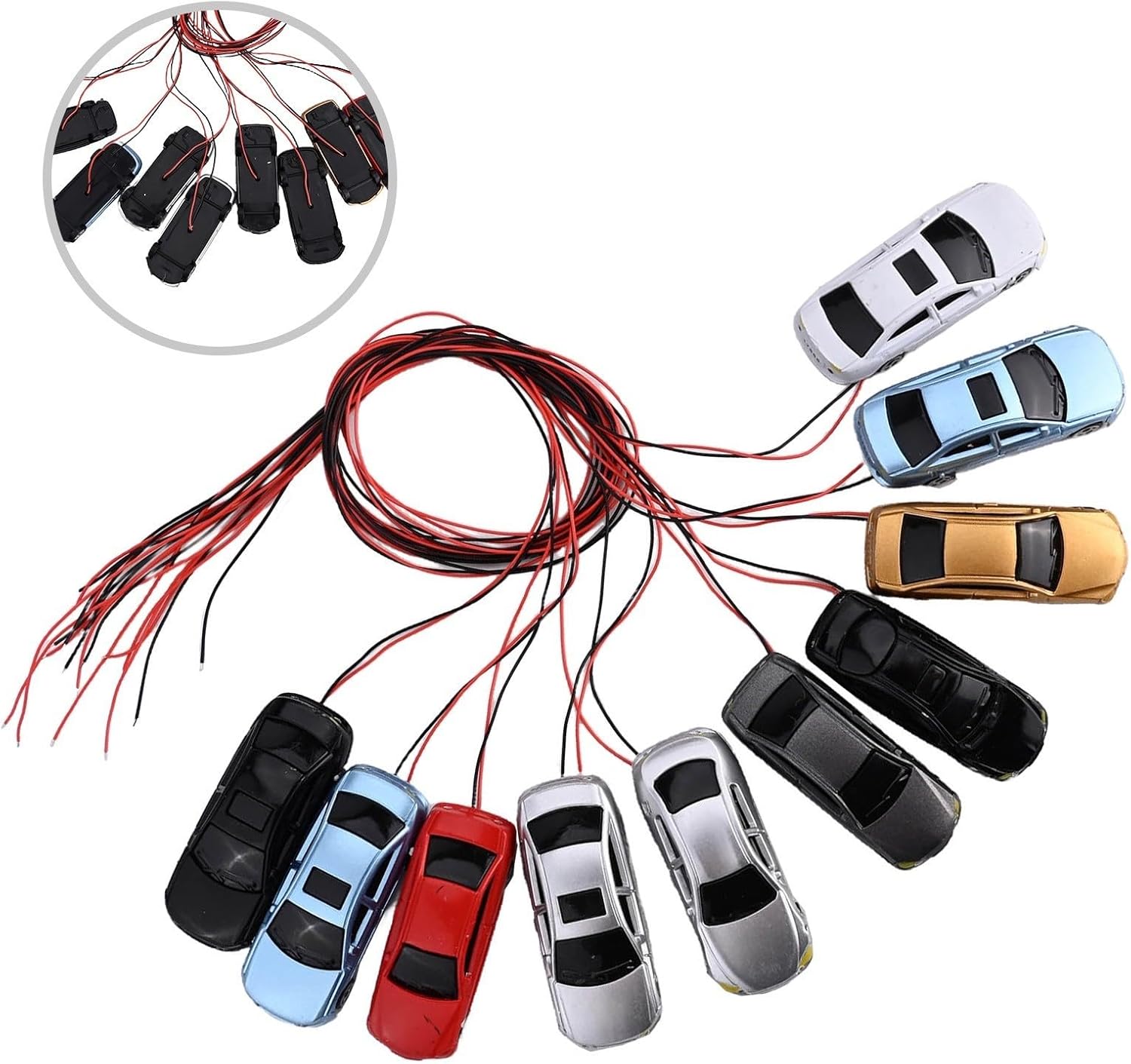 Completo di cavi e lampadine, 6 V: questi modellini di auto sono dotati di tutti i cavi e le lampadine necessari, installazione senza problemi. Con una tensione di 6 V, forniscono un'illuminazione luminosa e affidabile. Dimensioni: circa 45 mm (lunghezza) x 16 mm (larghezza) x 11 mm (altezza). Misurano circa 45 mm di lunghezza, 16 mm di larghezza e 11 mm di altezza, questi modelli di treni per auto sono di dimensioni compatte, rendendoli adatti a vari layout di treni in miniatura. Quantità: offerta per 10 pezzi: questo elenco offre un set di 10 modellini di treni per auto, fornendo una grande quantità per costruire ed espandere la tua collezione di treni in miniatura per creare un display realistico e impressionante. 【Scala: 1:87~1:100, adatto per H0/】Questi modelli di treni per auto sono progettati per scalare, da 1:87 a 1: sono compatibili con layout H0 e scala, consentendo una perfetta integrazione nelle scene esistenti del treno. Colore: colore casuale, stile: stile casuale: riceverai modellini di auto in una varietà di colori e stili casuali, aggiungendo diversità e unicità alla tua collezione di treni in miniatura. Ogni pezzo porterà un tocco di autenticità al tuo layout. Contenuto della confezione: 10 modellini di treni: questo pacchetto include un totale di 10 modellini di treni per auto, che hai abbastanza pezzi per migliorare l'aspetto visivo del tuo modello di treno.