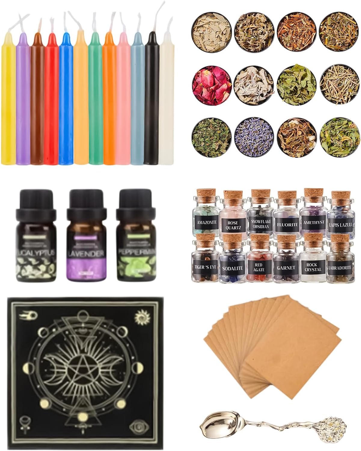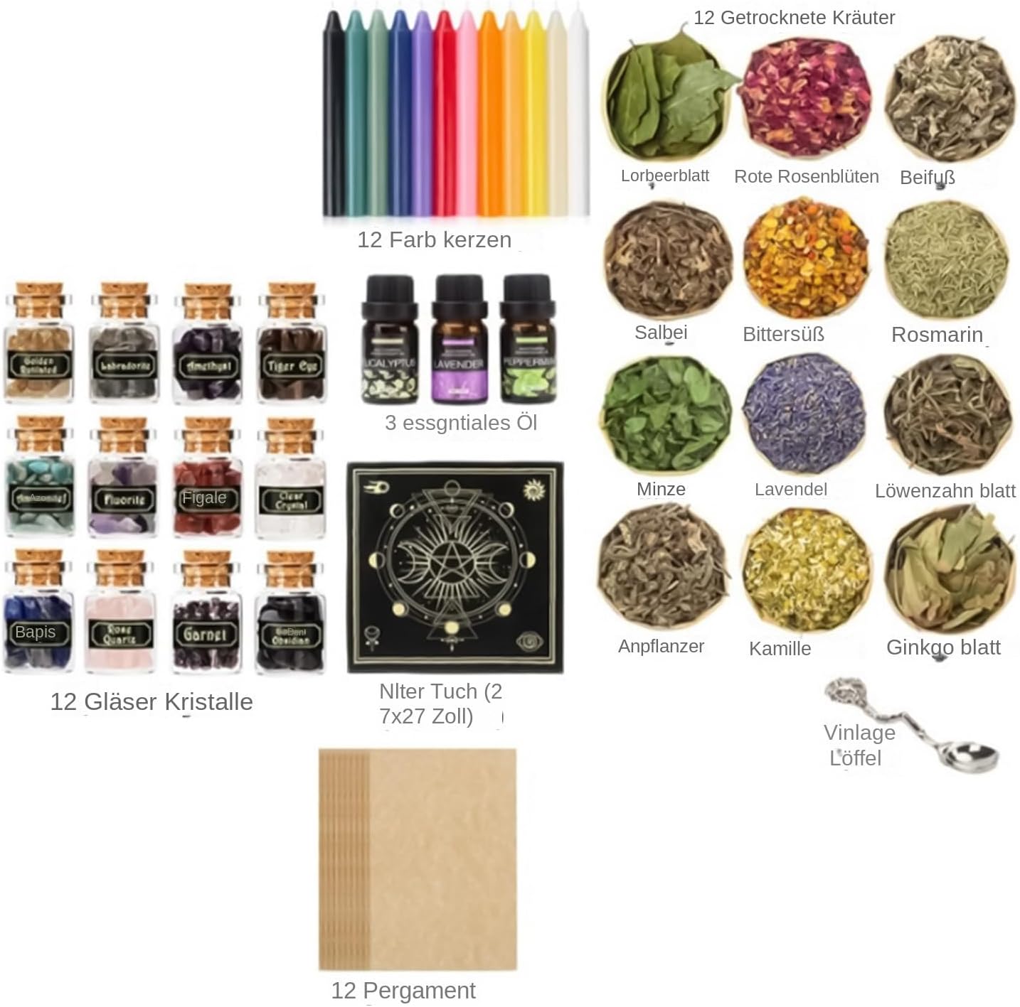 Rafforza il tuo mestiere: progettato sia per principianti che per professionisti esperti, questo set di accessori per streghe offre un set completo di strumenti per rafforzare la tua pratica. Con una serie di articoli inclusi, questo set offre una soluzione completa per migliorare i tuoi rituali e rafforzare la tua connessione con il mondo spirituale Miglioramenti Charmal: il nostro set di accessori strega è stato accuratamente selezionato per i suoi componenti di alta qualità e contiene fiori secchi, pietre e candele colorate con proprietà ed efficacia uniche. Raccogli il tuo mestiere con i materiali per incantesimi e rituali ottimali Intraprendi il tuo viaggio spirituale: il nostro set di accessori per streghe è adatto per principianti e include strumenti e istruzioni facili da usare per aiutarti a creare un'esperienza senza interruzioni e illuminante. Intraprendi il tuo viaggio spirituale con fiducia Regalo eccellente: goditi i tuoi cari, principianti e esperti, con questo set di accessori per streghe per famiglie, amici e colleghi. Perfetto per uso personale o professionale e un ottimo regalo per ogni occasione Ampia gamma di utilizzi: espandi il tuo spazio sacro con il nostro set di accessori per streghe. Versatile e decorativo, ideale per abbellire qualsiasi altare o spazio spirituale. Rendi il tuo spazio spirituale visivamente accattivante con il nostro set versatile e decorativo
