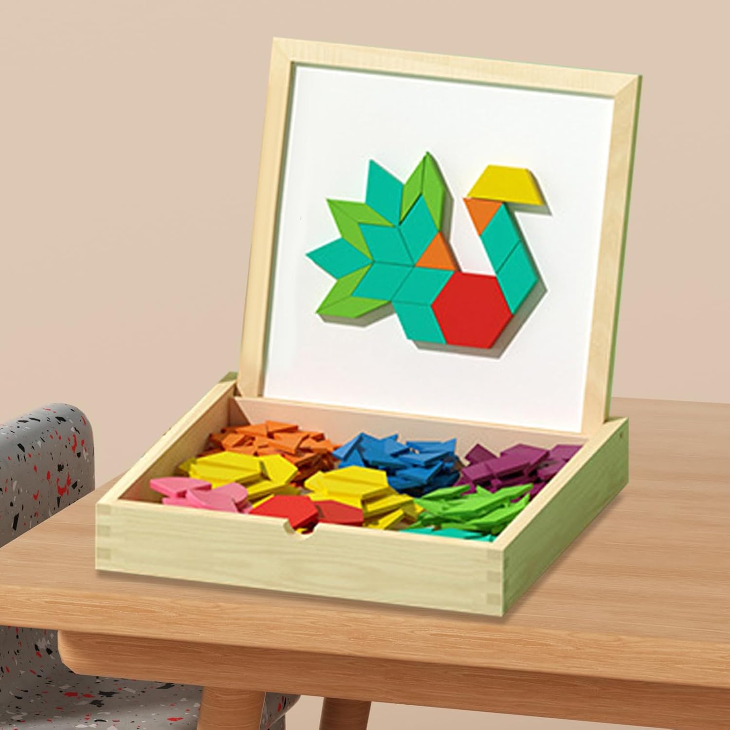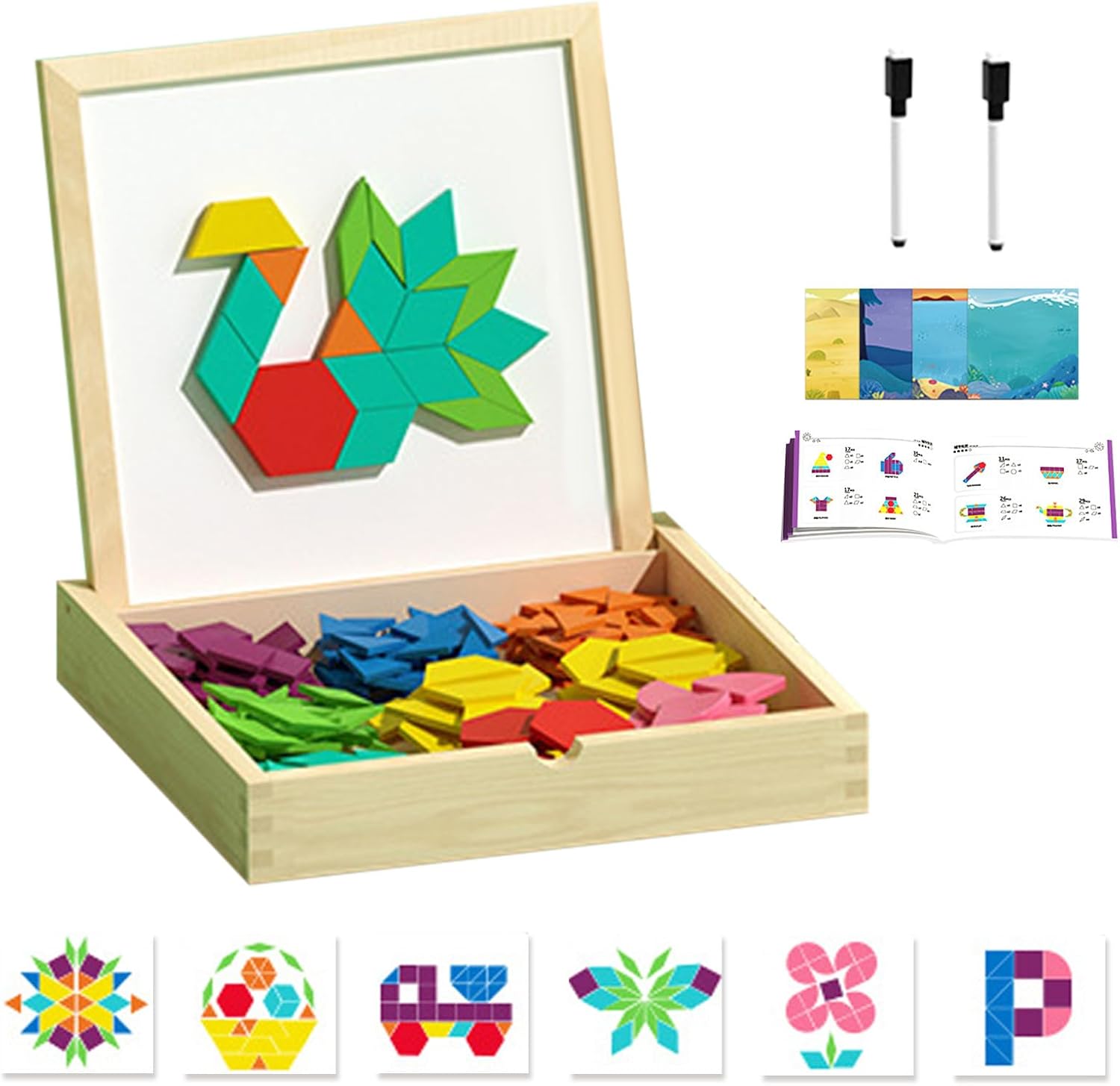 Sviluppo del Pensiero Logico: Questo set di magnetici in legno è progettato come strumento di apprendimento pratico che migliora il pensiero logico e si allinea con gli obiettivi educativi della prima infanzia, permettendo ai bambini di sviluppare capacità di pensiero critico componendo i in varie creazioni creative durante il gioco in modo coinvolgente e istruttivo per lo sviluppo mentale Stabilità e design portatile: Grazie all'adesione magnetica ferma, questi pattern blocks assicurano stabilità durante assemblaggio e smontaggio ripetuti. Il design compatto è per esplorazione creativa a casa o in viaggio, garantendo un'esperienza di gioco sempre e piacevole. Gioco educativo coinvolgente: Questo set di magnetici in legno con carte modello multitema permette ai bambini di ricreare disegni diversificati, migliorando il pensiero spaziale e incoraggiando l'espressione creativa durante il gioco a casa o in contesti educativi. Design a progressione di abilità: Caratterizzato da livelli di difficoltà graduali, il puzzle magnetico supporta un miglioramento progressivo delle competenze, creando opportunità di divertimento collaborativo e stimolo intellettuale durante le attività guidate da un adulto con l'uso dei modelli reversibili sulle schede Risorsa per lo Sviluppo: I pattern magnetici supportano la crescita intellettiva attraverso il riconoscimento delle forme e la creazione di composizioni, aiutando lo sviluppo della consapevolezza spaziale e del ragionamento logico. Progettati per essere inclusivi, sono un'opzione regalo premurosa per celebrazioni o traguardi, perfezionando le abilità motorie e cognitive.