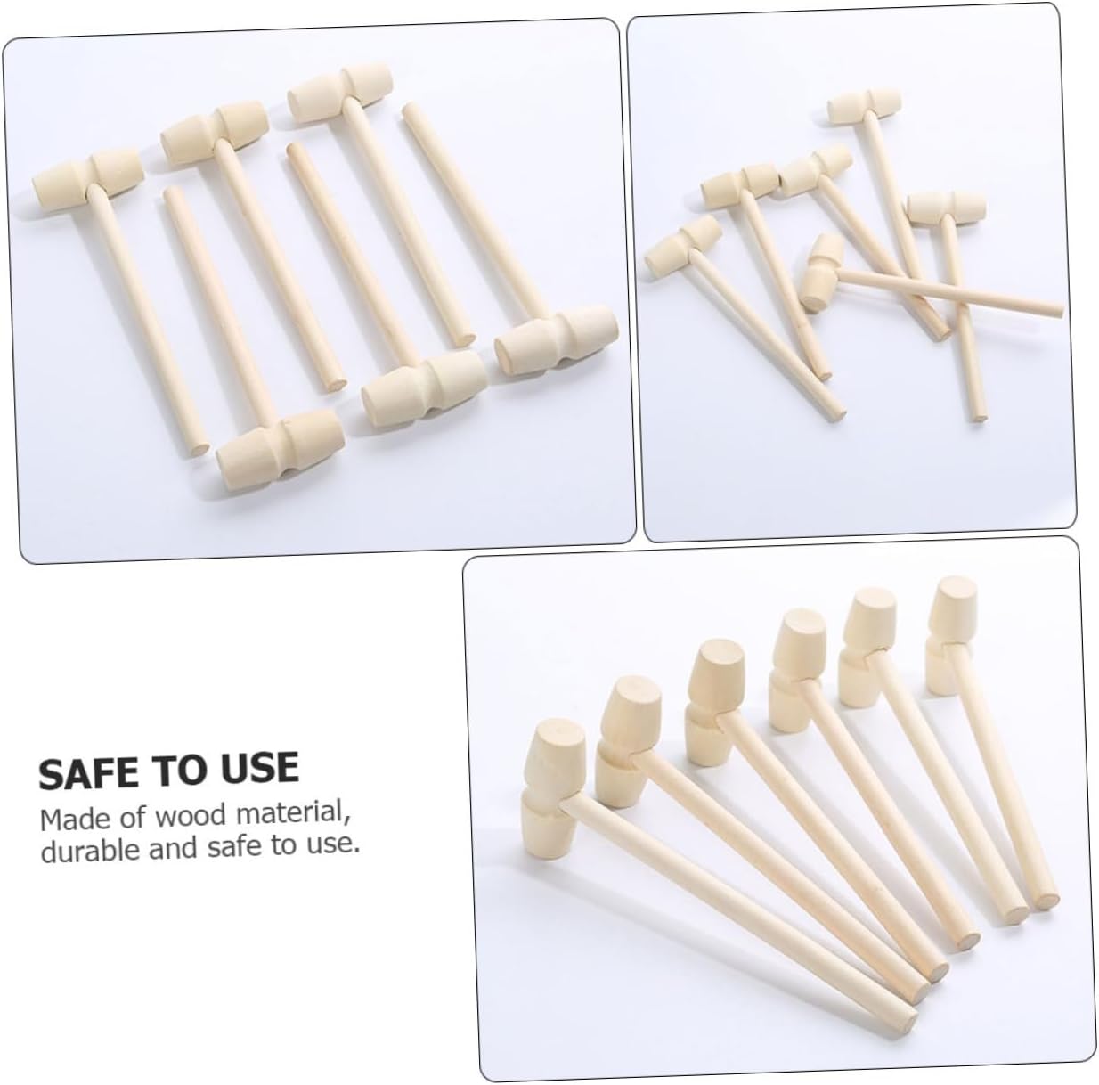 Giocattolo martello di legno: strumenti utili di cui hai bisogno per distruggere le tue conchiglie preferite. Gli strumenti sono realizzati con materiali robusti e di alta qualità e durano a lungo. Giocattolo martello di legno Martello per frutti di mare - ottimo per frutti di mare, aragoste, crostacei, ostriche, gusci di granchio, ma funziona altrettanto bene come strumento per spaccare le noci, Giocattolo martello di legno - versatile, per rompere conchiglie aperte, perfetto per aragoste, granchi e altri crostacei, adatto anche per l'artigianato in pelle e gioielli, martello di legno Giocattolo martello di legno - il martello può migliorare la coordinazione occhio-mano e la manipolazione dei bambini Migliorare e promuovere la destrezza e il movimento del braccio. Martello giocattolo martello di legno: sono anche un pratico aiuto in cucina per le casalinghe. Possono aiutare le casalinghe ad aprire i gusci duri dei granchi o delle aragoste per preparare una cena deliziosa. maglio