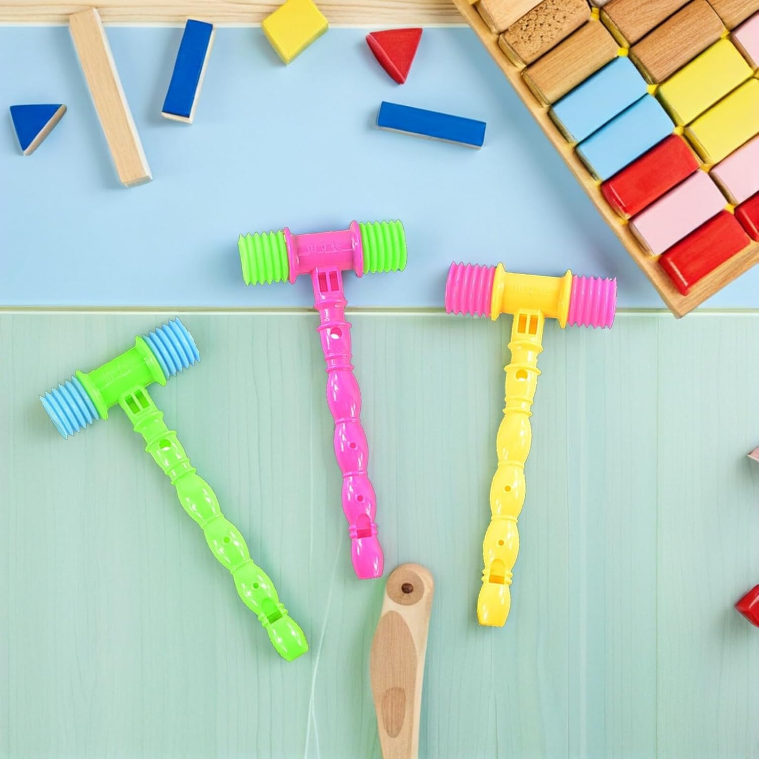 Martelli di plastica per - il prodotto è molto divertente, quindi non dovrai più essere solo e a lungo con un giocattolo sonoro Martello per bambini - con design confortevole dell'impugnatura, facile da impastare, suono nitido, martello che stride Giocattolo martello musicale - può essere meraviglioso per attirare l'attenzione dei bambini, martelli giocattolo per il suono del martello - meravigliose esperienze sonore possono attirare l'attenzione del tuo bambino, promuovere lo sviluppo e godersi il divertimento, martelli per bambini Martello giocattolo Montessori - il giocattolo martello musicale è realizzato in plastica di alta qualità, affidabile, sicuro, inodore, adatto alla prima educazione