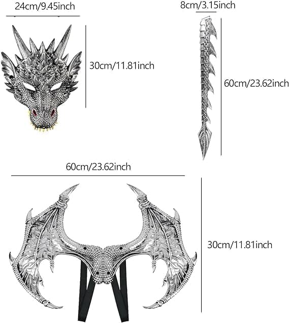Set di maschere per Halloween con ali di drago, aquilone, maschera con aquilone, costume per bambini, adulti, dinosauro, per maschera, Halloween, feste, carnevale