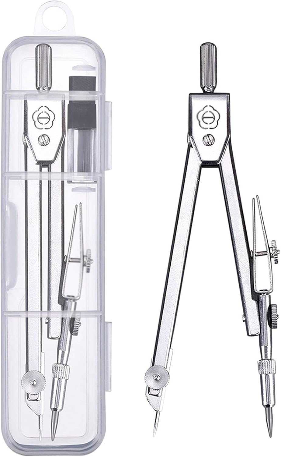 Compasso matematico di precisione - Realizzato per la geometria matematica e il disegno artistico. Design unico per evitare scivolamenti durante il disegno. Materiale interamente in metallo: realizzato con parti di alta qualità e struttura solida, abbastanza resistente per durare a lungo. Dimensioni: 40 x 22 x 12 mm. Regolazione precisa: la manopola di regolazione consente agli studenti di produrre costruzioni geometriche precise. puoi bloccare la bussola in posizione e farla rimanere durante la scrittura. Bussola da disegno in metallo con ricarica di piombo Strumenti di geometria matematica per cerchi Materiale scolastico Simpatico set di cancelleria Eccellente per l'uso a scuola, nella lavorazione del legno o a casa. Il miglior strumento per disegnare cerchi per studenti, artisti, matematici, falegnami.
