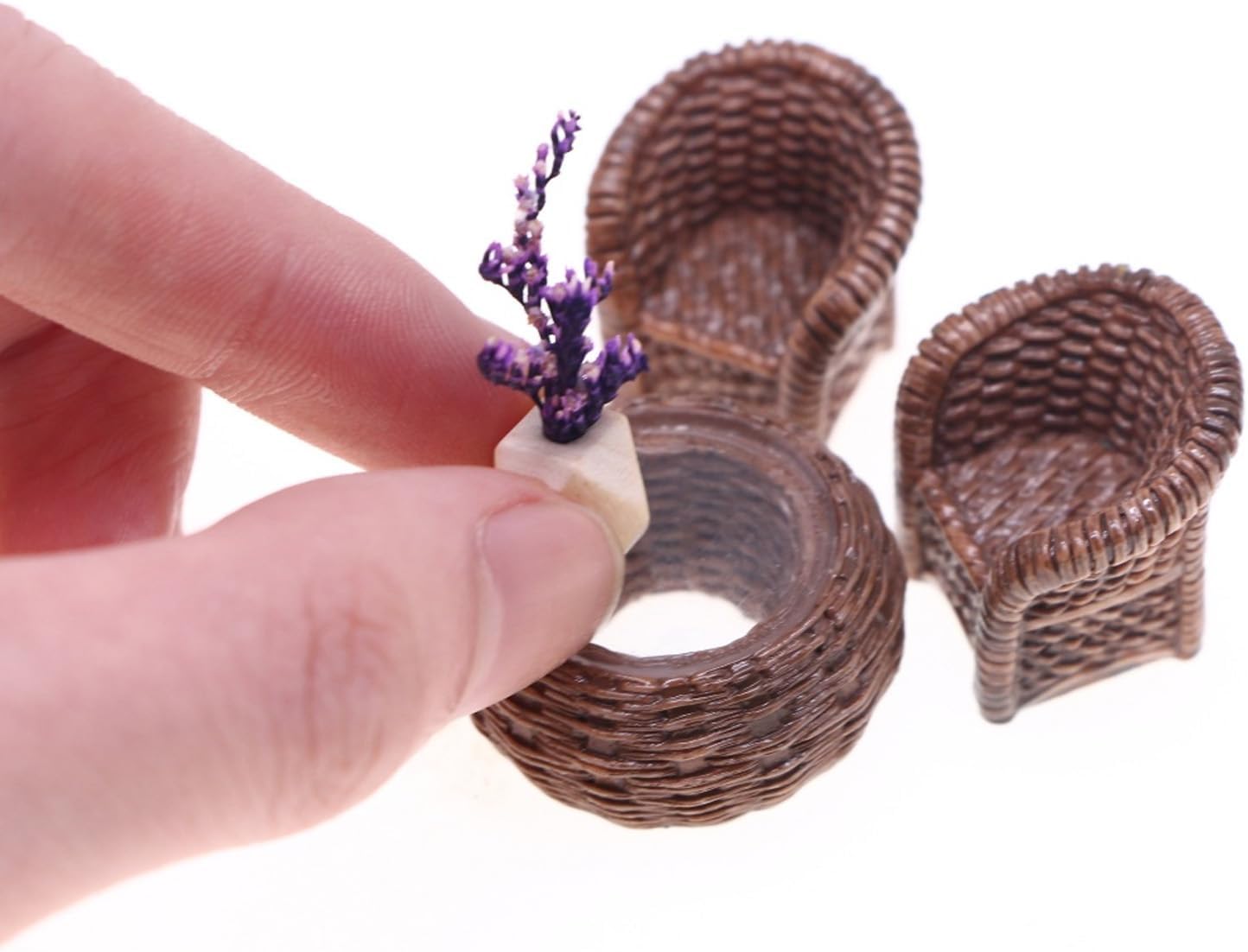 Adatto per giochi di finzione e anche per decorazioni per case delle bambole Con una buona stimolazione e formazione educativa per i bambini, stabilire la loro capacità cognitiva dei mobili delle case delle bambole e promuovere la coordinazione occhio-mano del bambino Un set da gioco decorativo, non un vero tavolo Modello di tavolino e sedia, realistico e adatto per decorazioni di case delle bambole Struttura in resina, resistenza all'usura, sicura per i bambini