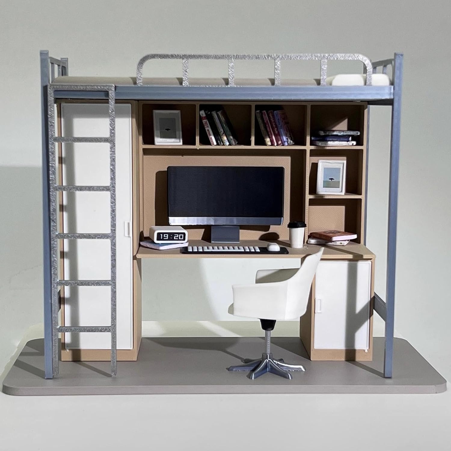 Dormitorio dettagliato in scala 1:12: realistica scena universitaria in miniatura include sedia, letto e molteplici accessori per una visualizzazione autentica. Struttura in polipropilene: realizzata in polipropilene che resiste alla deformazione, garantendo un uso duraturo nella tua collezione di case delle bambole. Set completo per dormitorio: dotato di mini lettino, computer, sedia da scrivania, due foto, sveglia e affascinante tazza da tè al latte per una narrazione dettagliata. Ideale per gli appassionati di miniatura: migliora il realismo della casa delle bambole con autentici arredi universitari in scala 1:12 precisa per esposizioni coerenti. Set completo pronto da esporre: include una scena da dormitorio completamente assemblata che misura 16,5 x 16,5 x 9,5 cm per un miglioramento immediato della casa delle bambole.