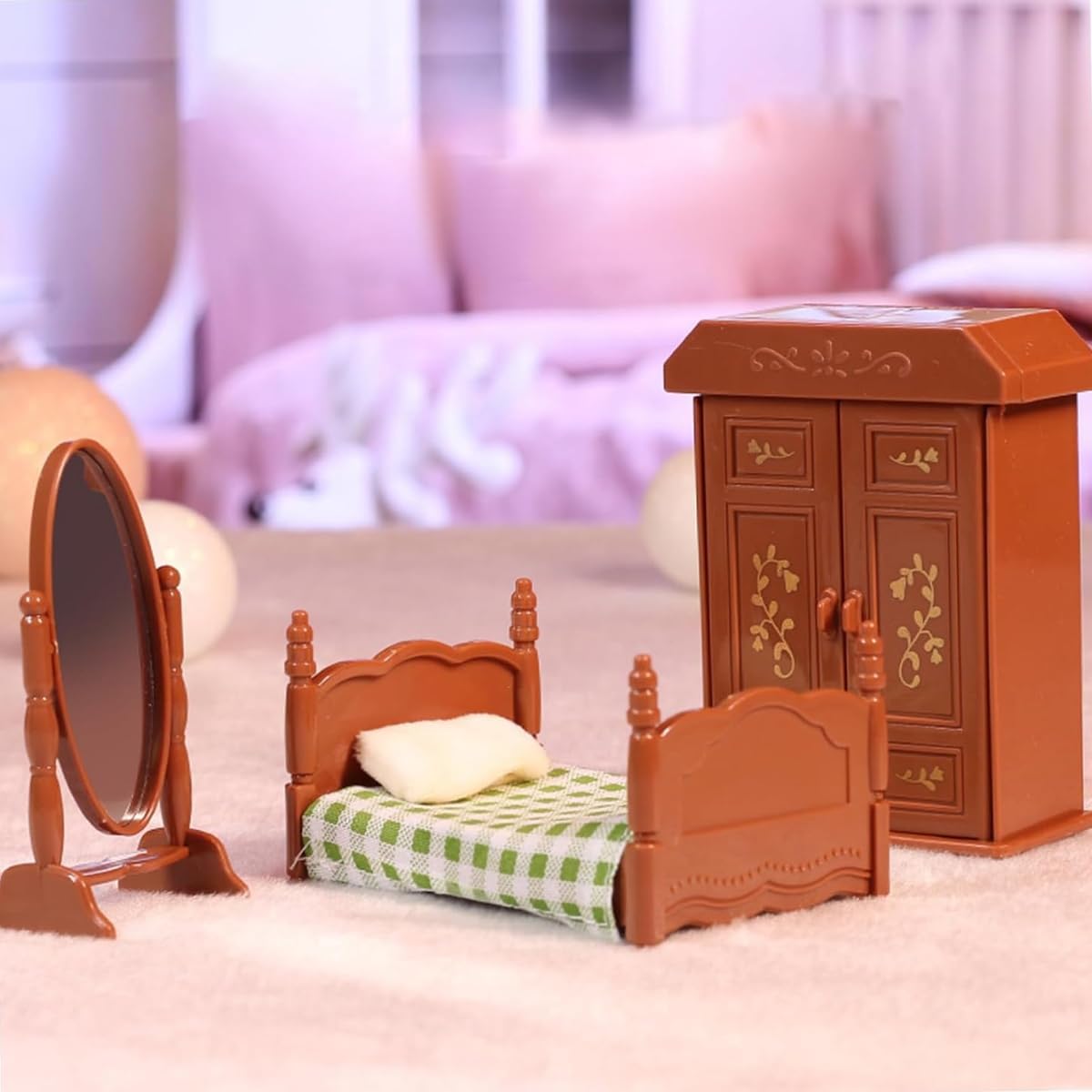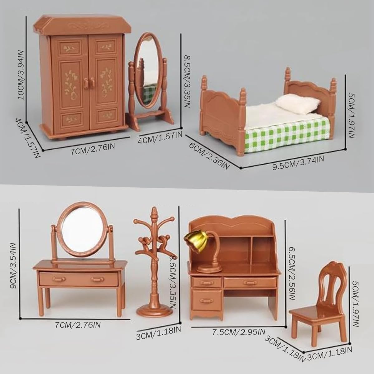 Questo set è pensato come un kit fai da te, per rivelare il piacere di costruire. Aiuta a sviluppare destrezza, concentrazione e pazienza durante tutto il processo creativo di creazione della casa delle bambole. Il set comprende: un letto matrimoniale, un armadio con appendiabiti, una toletta, una scrivania, uno specchio dal pavimento al soffitto e altri elementi essenziali per la camera da letto. Questo set offre un ambiente realistico e dettagliato che favorisce il gioco fantasioso. Si prega di notare che le bambole mostrate nelle foto sono solo dimostrative e non sono incluse nel cofanetto. Il focus è su mobili e accessori per incoraggiare la narrazione e la creatività. Questo set di mobili per casa delle bambole ispira giochi di ruolo e narrazioni fantasiose, aiutando a comprendere le dinamiche familiari e le interazioni sociali. Sviluppa anche le capacità motorie attraverso la manipolazione e la disposizione di oggetti in miniatura. Ideale come regalo per compleanno, festa, campo estivo, Pasqua, Ringraziamento, Natale o qualsiasi altra occasione speciale. Questo libro fornisce una fonte inesauribile di intrattenimento e apprendimento per le giovani menti.