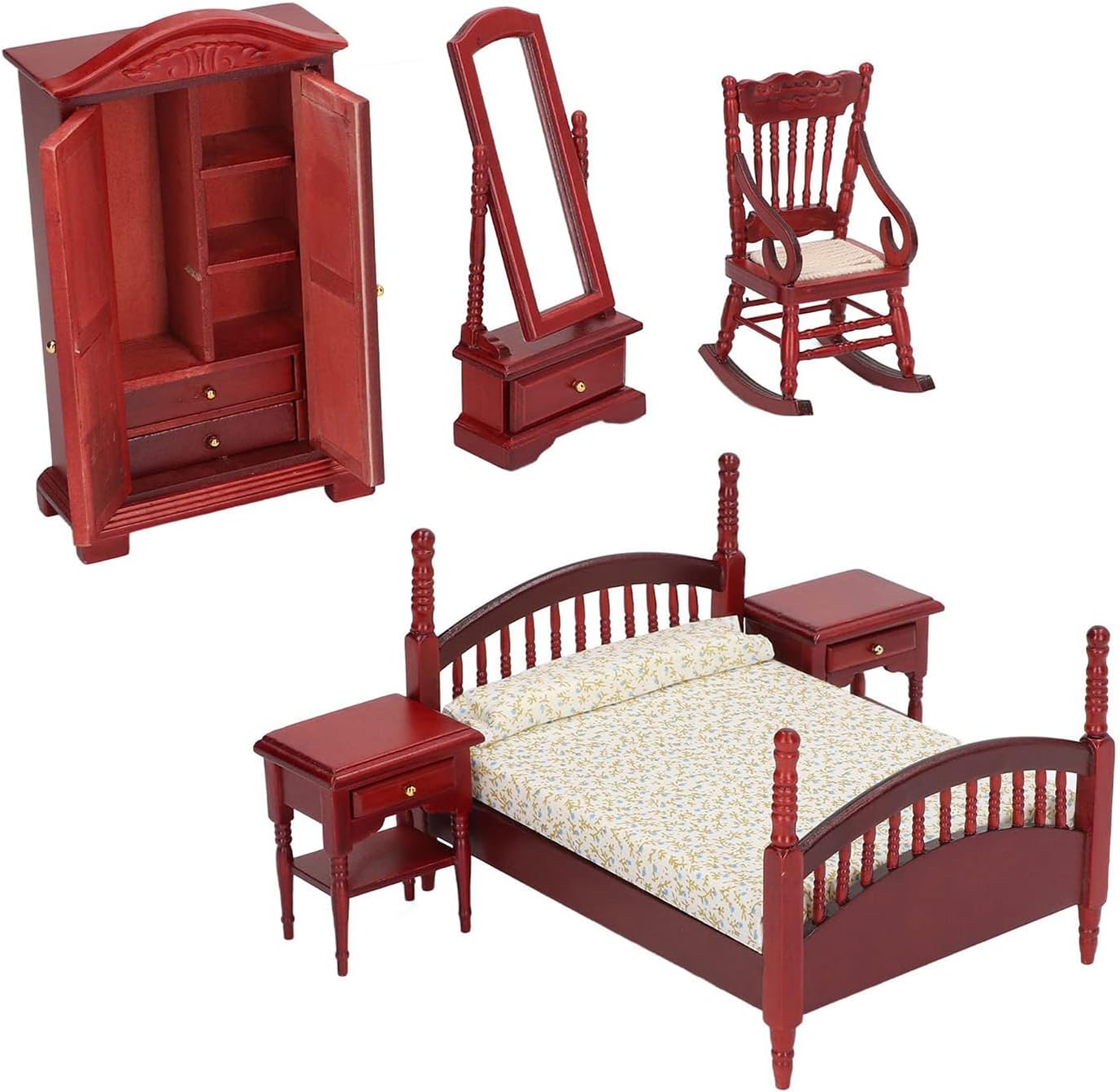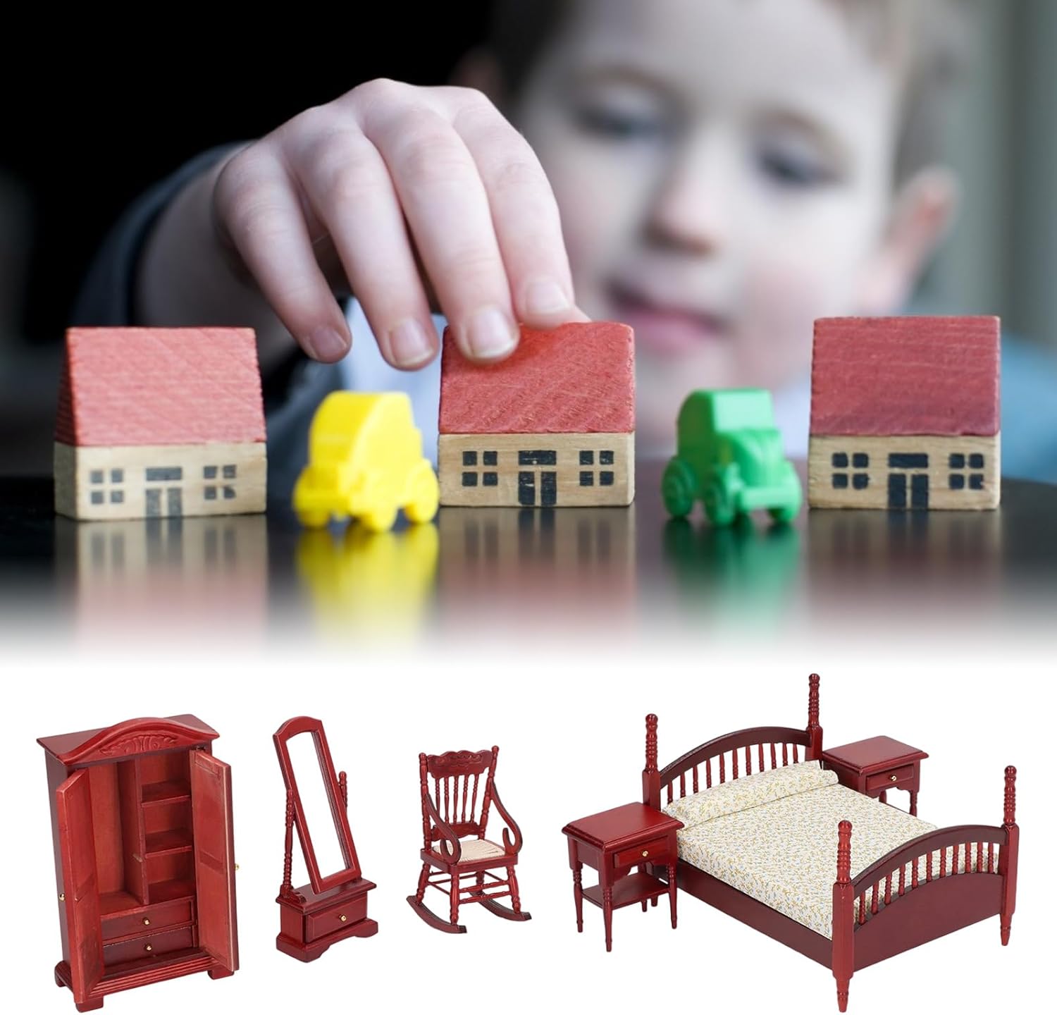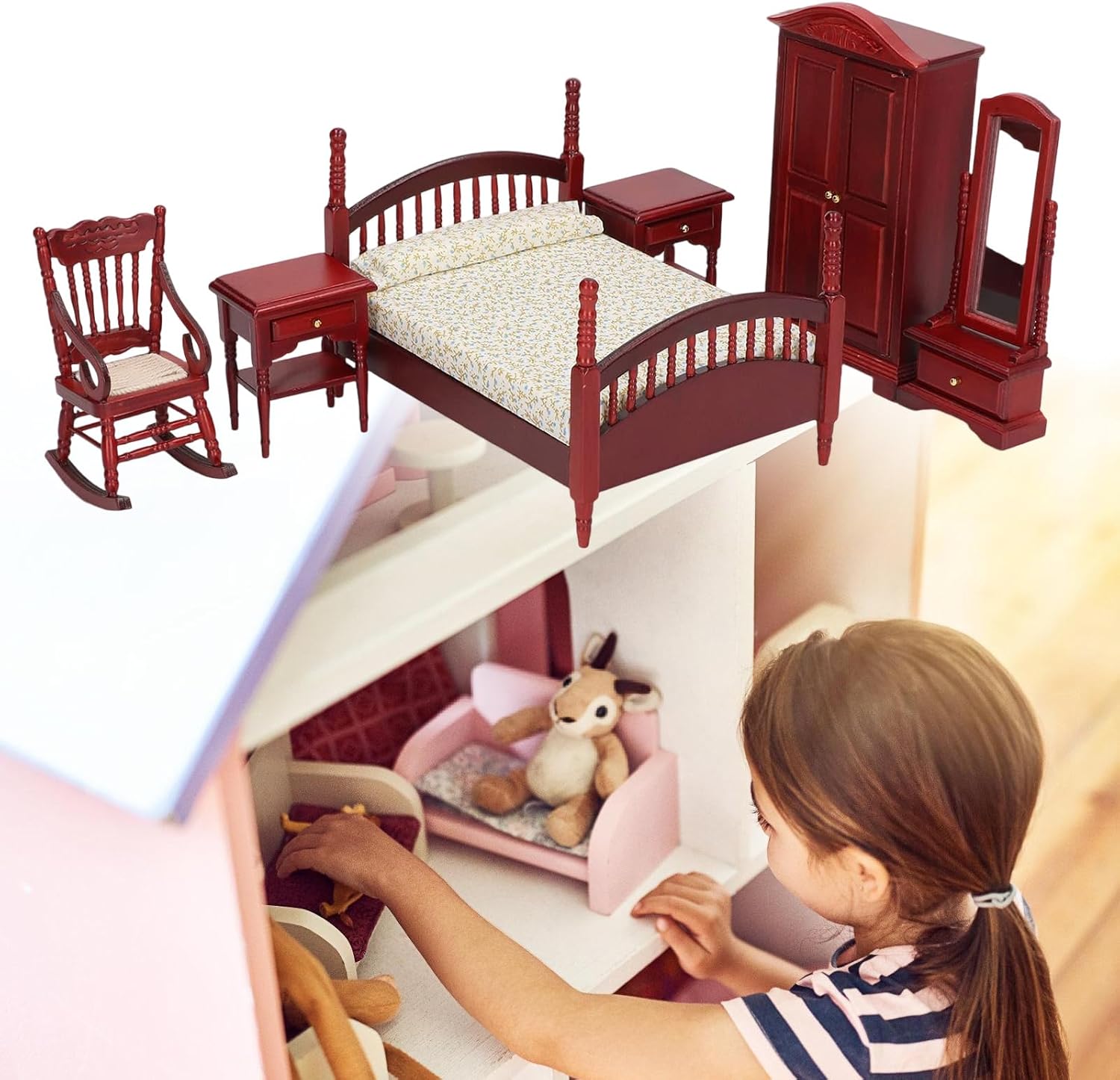 Il nostro set di mobili per case delle bambole è adatto per case delle bambole in scala 1:12. Gli accessori per case delle bambole in miniatura dall'aspetto realistico, aggiungono facilmente più fascino e divertimento alle tue case delle bambole. Include un letto, 2 comodini, un armadio, una medicazione, una sedia a dondolo. Realizzato con materiali in legno, questo set è visivamente accattivante. L'eccellente modello di aspetto è molto vicino alla realtà. Ottimi oggetti di scena fotografici.