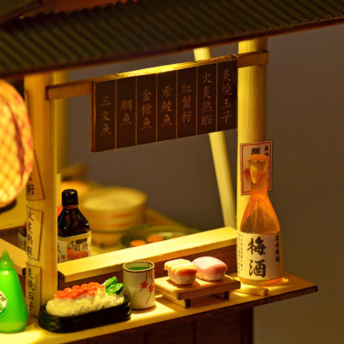 Autenticità street style: fedele riproduzione di un carrello giapponese per sushi con lanterne, striscioni in tessuto e design tradizionale del tetto. Pratico progetto fai da te: metti insieme parti in legno, carta e plastica per costruire un supporto per sushi realistico e migliorare le tue abilità artigianali. Dettagli squisiti: sushi in miniatura, sashimi, frutta, bottiglie e stoviglie garantiscono un vivace realismo. Istruzioni di montaggio digitali: include istruzioni elettroniche e video tutorial per un montaggio semplice e graduale. Realizzato in diversi materiali: combina legno, carta e plastica per una ricca consistenza e profondità visiva, perfetto per esporre o regalare.