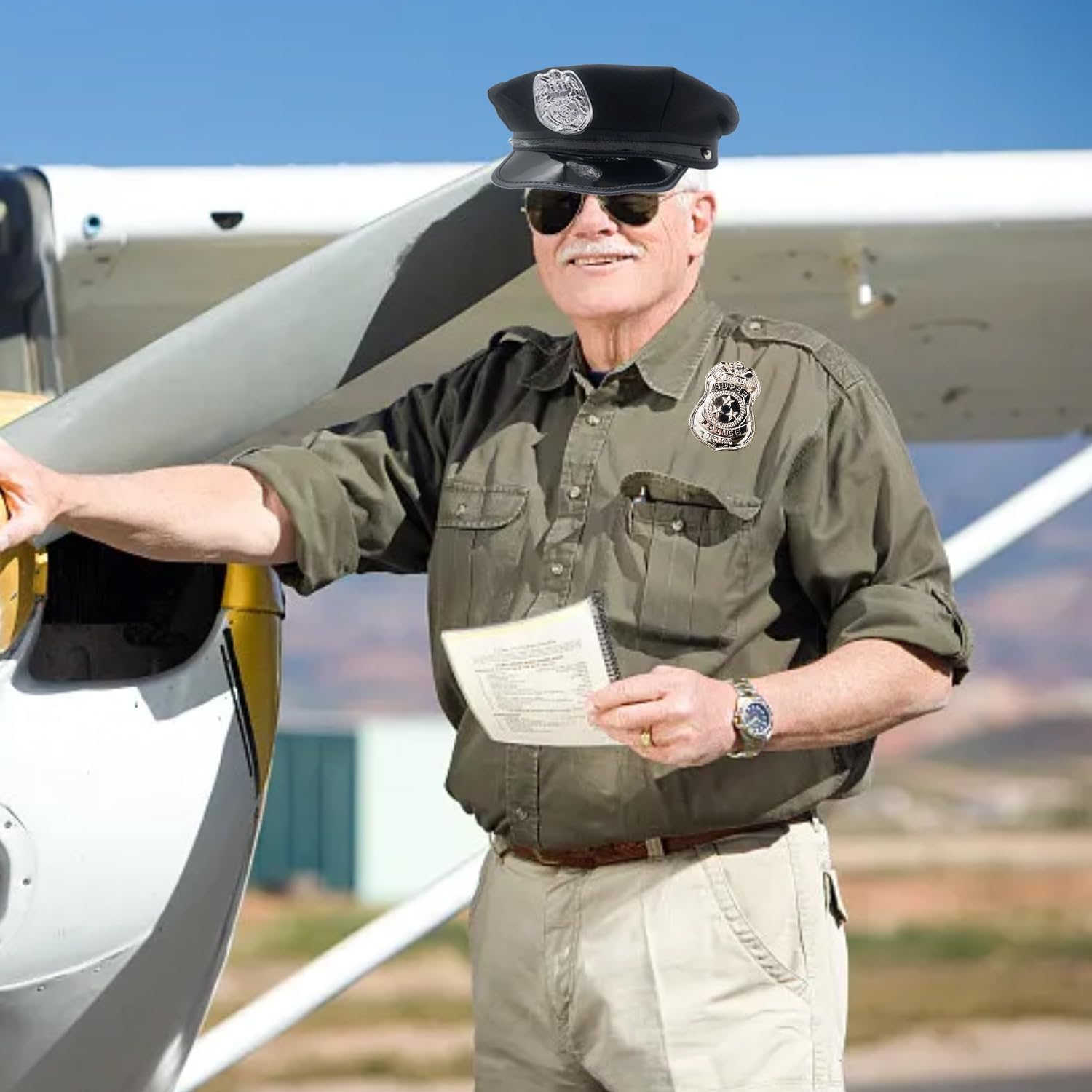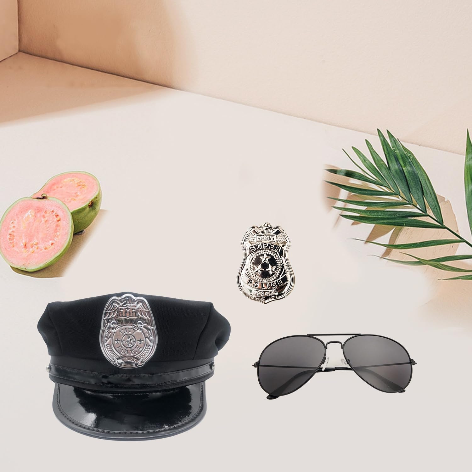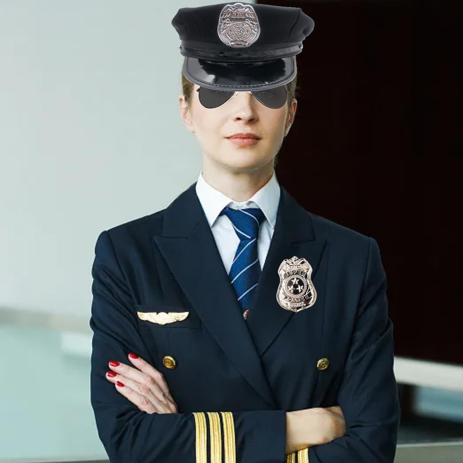 Set di oggetti di scena della polizia da 3 pezzi con cappello della polizia, distintivo della polizia, occhiali da sole, costume di Halloween per giochi di ruolo e cosplay per adulti