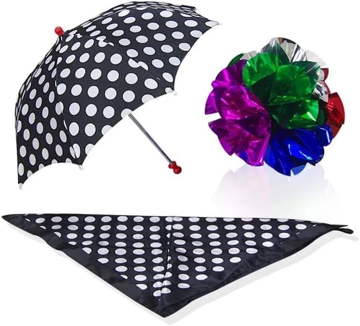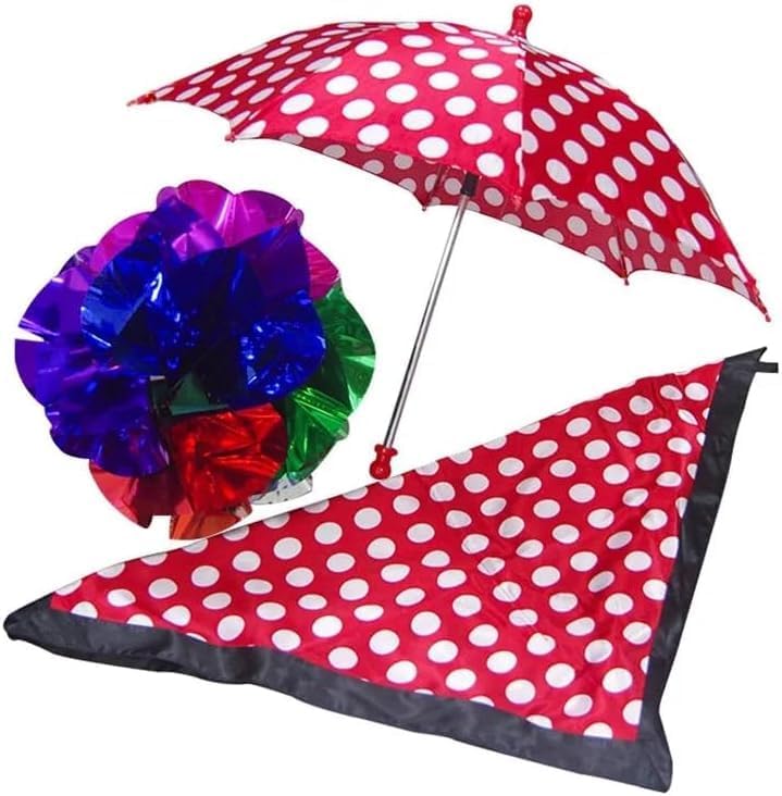 Uno degli oggetti magici più sorprendenti, realizzato con i materiali più qualificati e con prestazioni molto semplici. C'è seta nera sulla mano del mago. Toccando la seta con la mano, il colore della seta cambia in nero con punti bianchi. Mette la mano sotto la seta e automaticamente appare un ombrello nero con punti bianchi. Tocca di nuovo la seta con la mano e all'improvviso la seta diventa rossa con punti neri. Ripete ancora e produce un ombrello rosso con punti neri. Finalmente sotto la seta gli appare un fiore primaverile colorato e bellissimo. Forse al posto dei fiori primaverili può apparire una colomba. Il pacchetto include: seta colorata + palla di fiori + 2 ombrelli a pois Contattaci se hai domande o hai bisogno di istruzioni sui nostri trucchi magici.