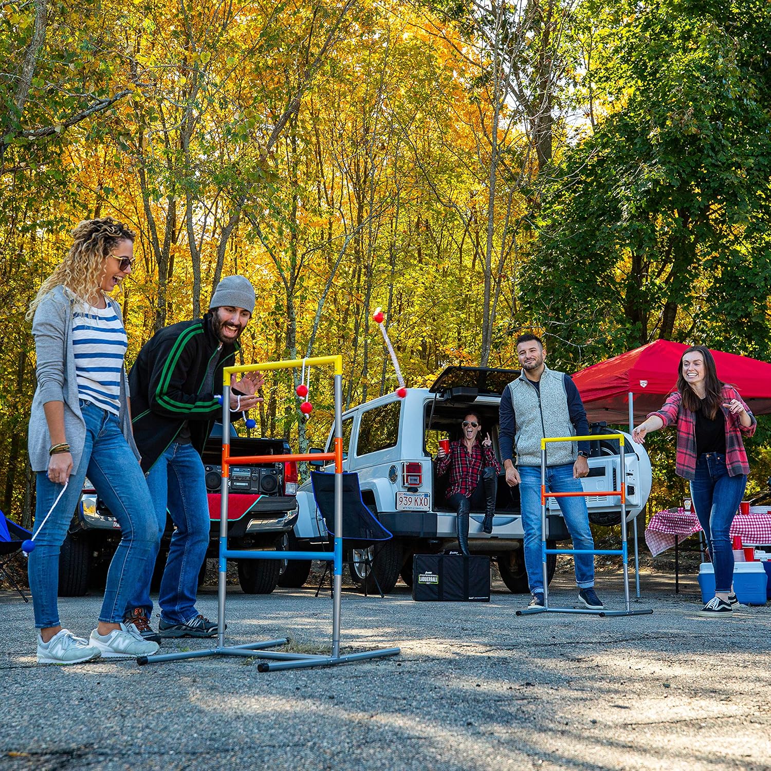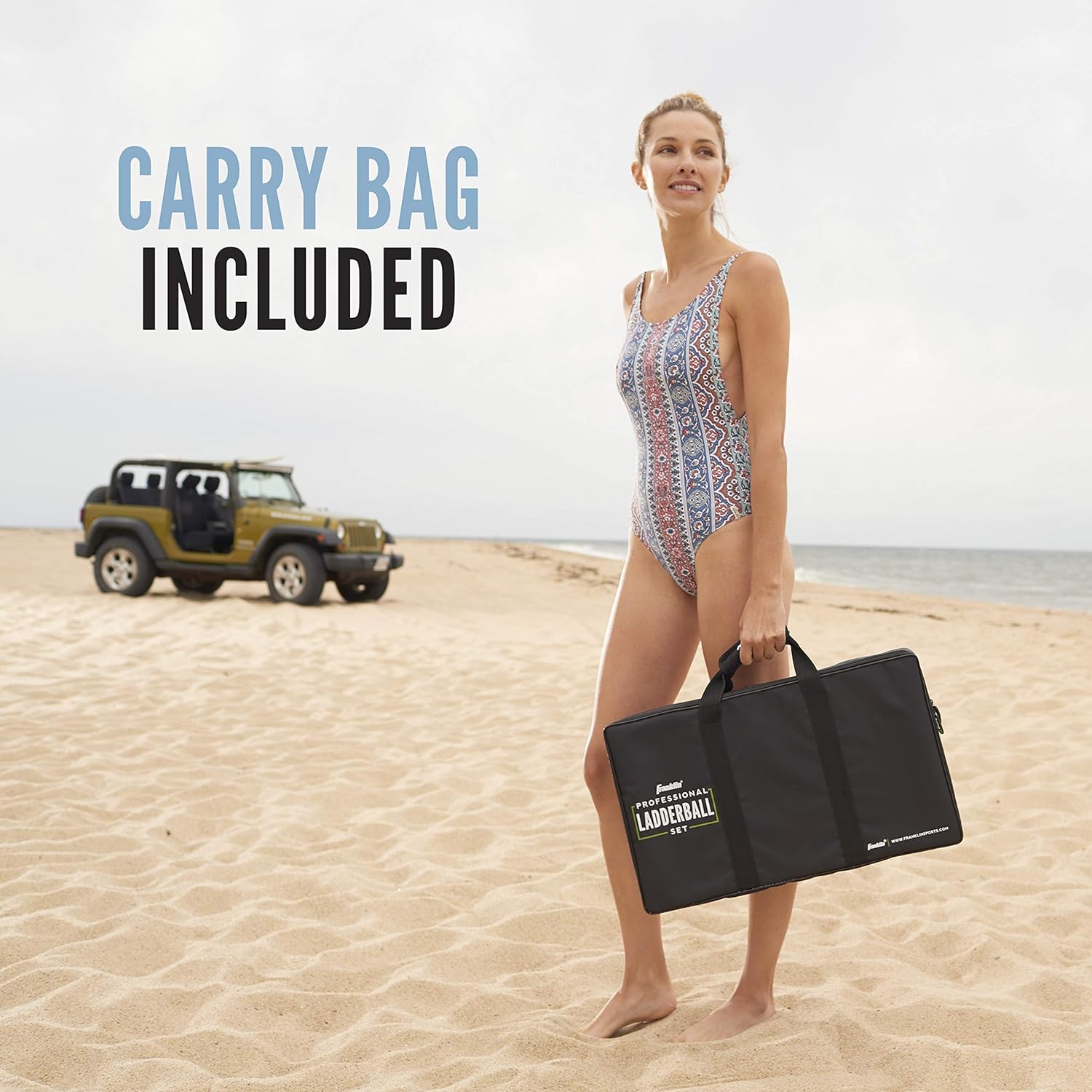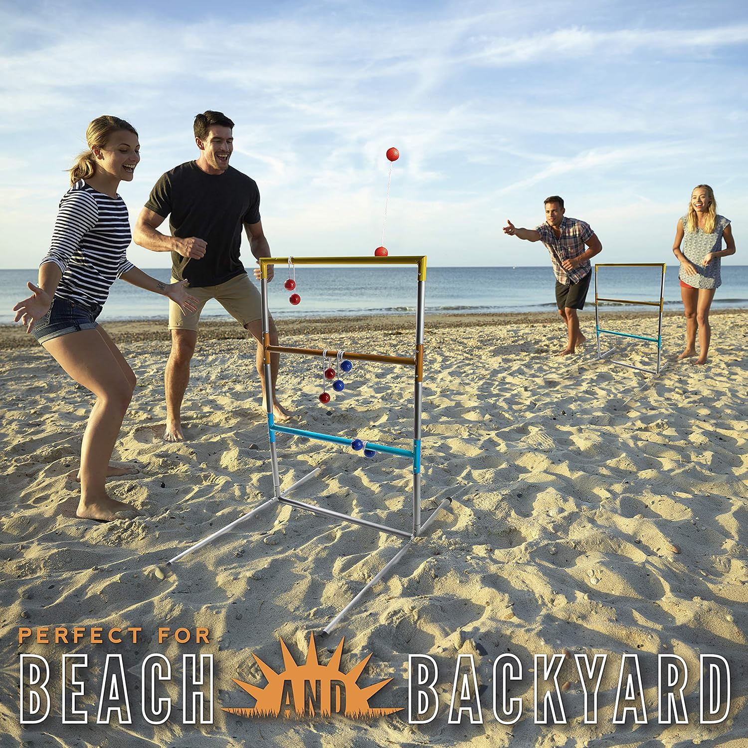 Robusta struttura in acciaio: la struttura in acciaio al 100% e senza attrezzi rendono questo gioco con palline a scala facile da installare e smontare pur rimanendo stabile sulla spiaggia, prato, giardino e altro ancora. Stile da torneo ufficiale: due bersagli ufficiali con palline a scala sono inclusi con questo gioco di golf con palline a scala che misurano 36" x 24" di dimensioni. Include anche bolas in stile torneo e 6 lanci da golf: 3 rossi e 3 blu. Divertente gioco sul prato e sulla spiaggia: questo set di palline a scala è perfetto per i giochi sul prato, una giornata in spiaggia, un picnic in famiglia o un barbecue. Più resistente di un tipico gioco con scaletta in legno, il set di palline Franklin Sports è fatto per durare., CLASSICO DIVERTIMENTO PER LA FAMIGLIA: Ladder golf è un classico gioco da giardino facile da imparare e divertente per tutte le età. Crea ricordi che dureranno tutta la vita con questo popolare gioco da spiaggia, ideale per tutta la famiglia! borsa da trasporto ludes deluxe TUTTO INCLUSO: questo set completo di palline a scala include tutto ciò di cui hai bisogno per giocare a palla a scala, incluso lancio da golf, costruzione di palline a scala in acciaio e una borsa per il trasporto per mantenere tutto organizzato Tipo di materiale: miscela Componenti inclusi: bersagli; Bolo