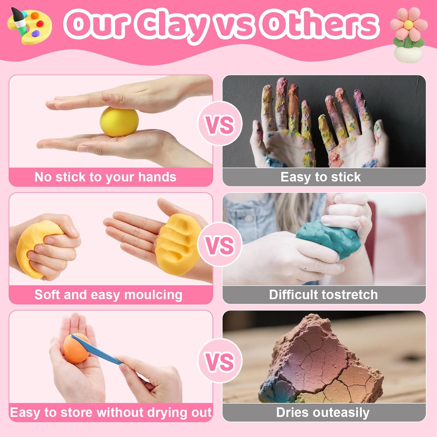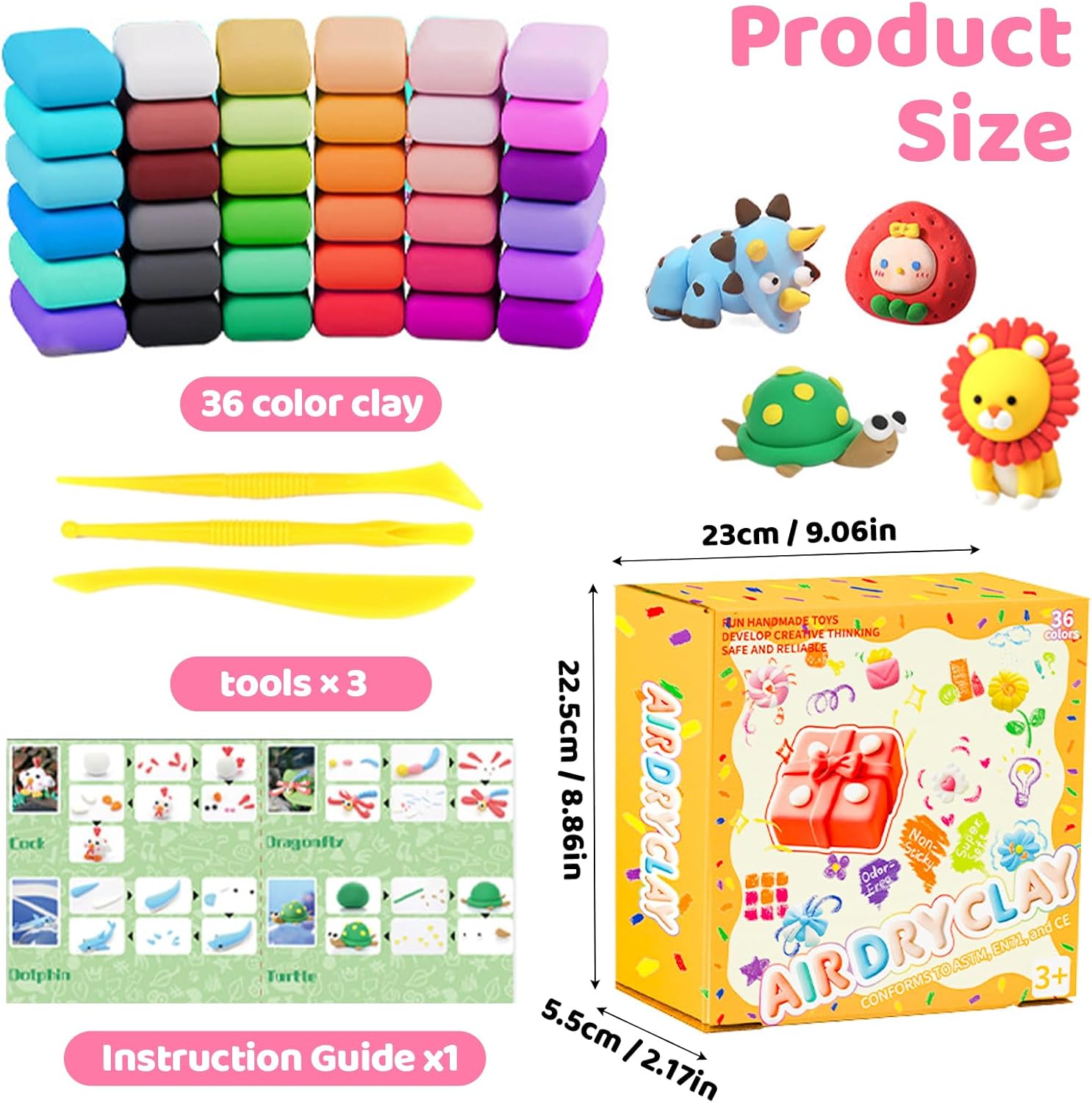 Argilla da modellare per bambini: questo set di pasta modellabile contiene 36 diversi colori e offre innumerevoli possibilità. Set di plastilina combinate i colori per ottenere esattamente il colore desiderato. Stimola la creatività e l'immaginazione: la plastilina autoindurente è ideale per creare animali, cibo, fiori e molto altro ancora, migliorando la coordinazione occhio-mano dei bambini. 【Non richiede cottura】 Questa plastilina autoindurente si indurisce completamente entro 24 ore. La plastilina viene conservata in sacchetti richiudibili per evitare che si secchi. Si prega di chiudere ermeticamente dopo l'uso. Eccellenti caratteristiche: l'argilla Air Dry per bambini è morbida, elastica e non appiccicosa. Il set di argilla è facile da modellare, allungare e piegare, in modo che diversi colori possano essere facilmente miscelati. Regalo perfetto: questa plastilina indurente è un regalo meraviglioso per bambini dai 3 ai 12 anni. L'argilla modellabile ad asciugatura all'aria offre ore di divertimento ed è ideale per giocare, per feste di compleanno o per l'interazione genitore-figlio.
