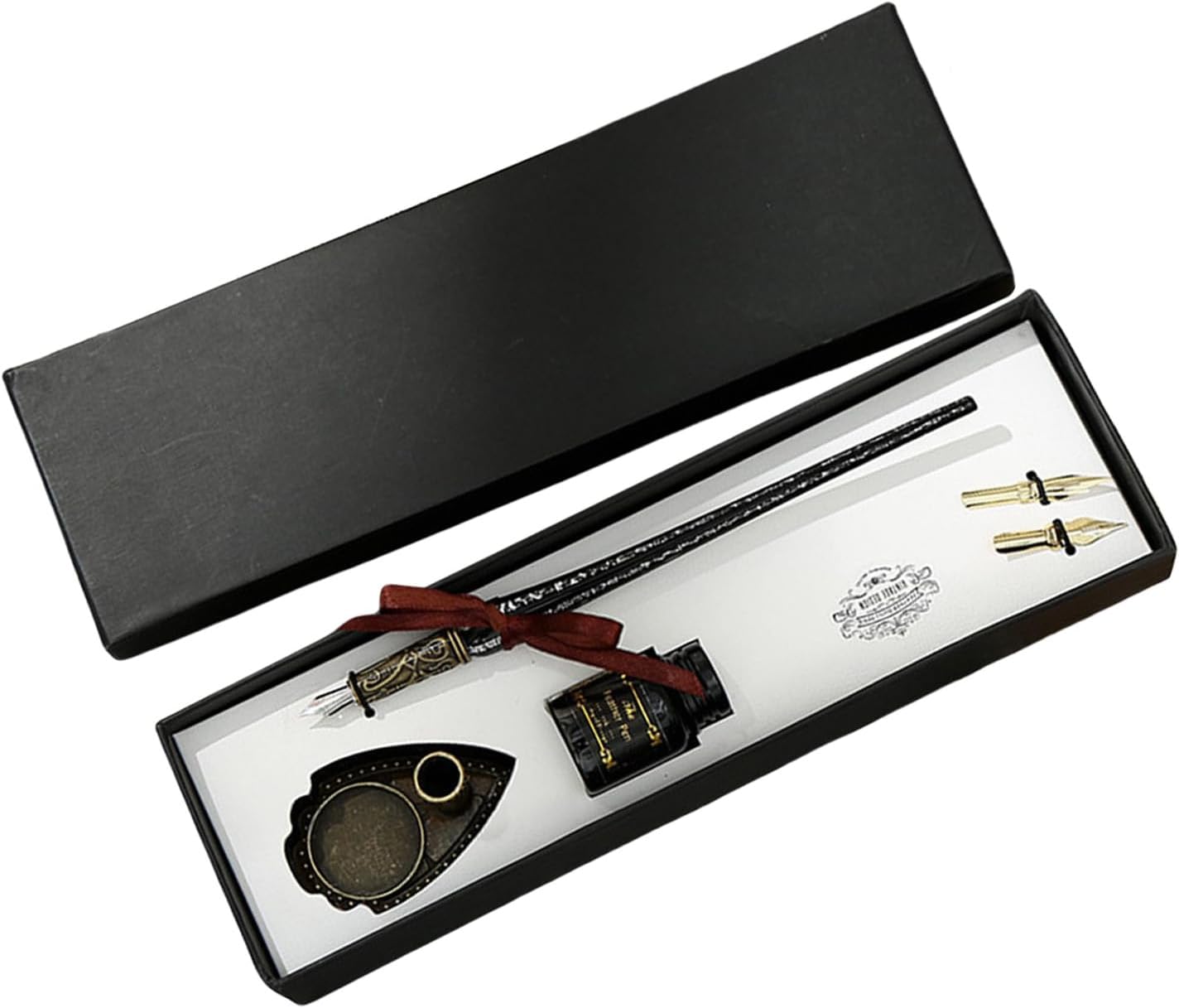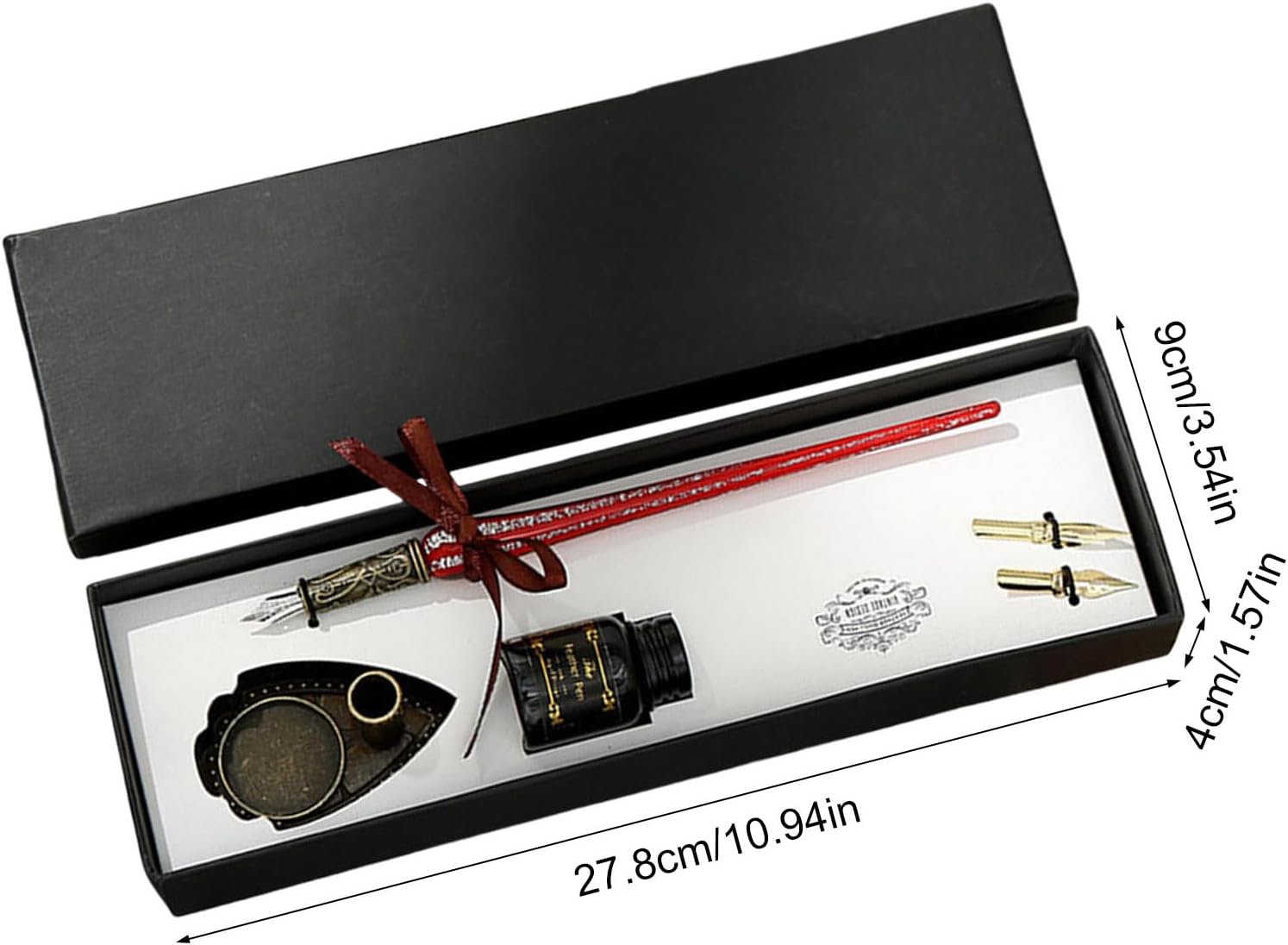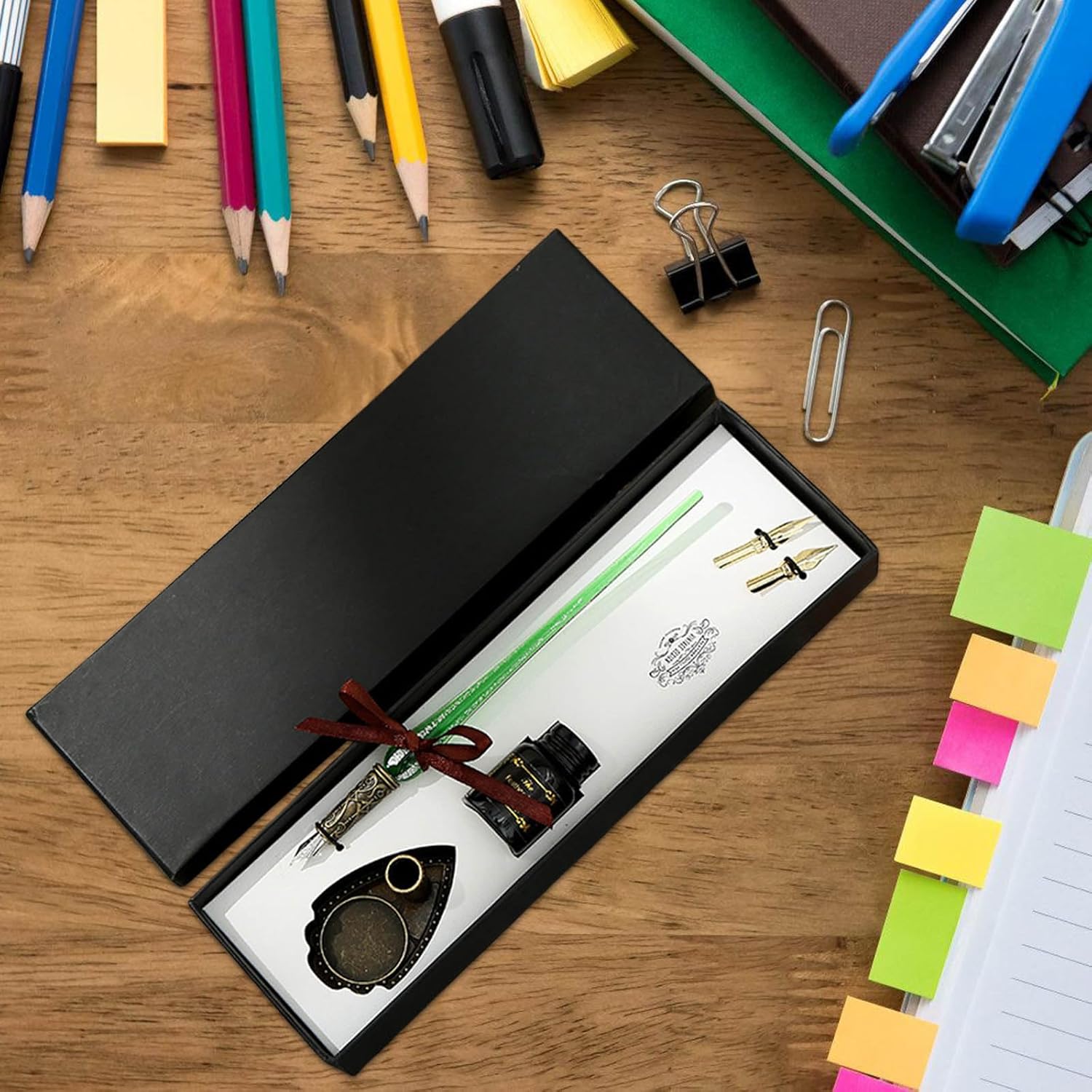 Scopri l'eleganza del set vintage in vetro, con una penna in vetro splendidamente realizzata con inchiostro fluido, molto adatta per migliorare la tua scrittura artistica. Con la sua squisita fattura e attenzione ai dettagli, il set di penne in vetro si distingue come uno strumento di scrittura artistica unico nel campo degli strumenti di scrittura pregiati. Ideale per artisti, studenti, insegnanti, principianti, professionisti e chiunque sia appassionato dell'arte della scrittura a mano. Questo set di penne è adatto a diversi utenti. Regalo di festa per amici e parenti a Natale, San Valentino, Ringraziamento, Laurea. Realizzata in vetro e metallo, questa penna a inchiostro in vetro presenta design a prova di perdite, impugnatura comoda ed è facile da lavare, garantendo durata e scrittura fluida. Ampiamente usato per attività quotidiane di scrittura, creazioni artistiche, disegni artistici, scrapbooking, diari, cerimonie di firma o come regalo di Natale. Questo set di penne in vetro aggiungerà un tocco di eleganza e classe ad ogni occasione