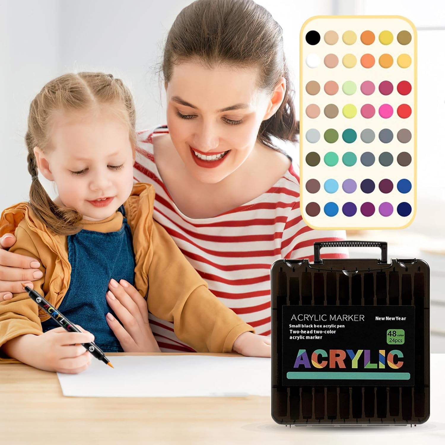 Kit di pennarelli professionali: pennarelli acrilici con ricche opzioni di colore e un design a doppia punta consentono di disegnare, colorare grandi aree e scenari artistici senza sforzo Impermeabile e resistente alle sbavature: questi pennarelli vantano proprietà impermeabili e una forte adesione, offrendo finiture a prova di sbavature su più superfici utilizzando una formula ad asciugatura rapida per comodità Scopi versatili: fornire una copertura eccellente e un rendering fine adatto per tecniche miste, potenziando gli artisti in tutti gli scenari creativi e ampliando le possibilità per forme d'arte speciali Facile da riporre: progettata per migliorare la gestione degli utensili, questa configurazione fornisce un rapido accesso ai pennarelli acrilici garantendo al contempo che le punte rimangano protette durante la conservazione Ampio campo di applicazione: la consistenza antiscivolo garantisce una maneggevolezza fluida e un'ampia adattabilità, rendendo piacevoli i progetti artigianali promuovendo il legame familiare attraverso un design inclusivo