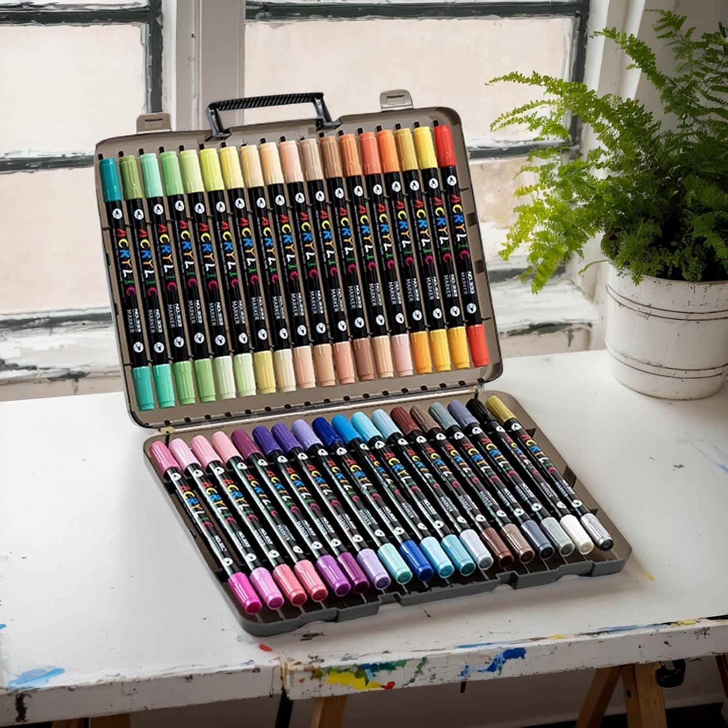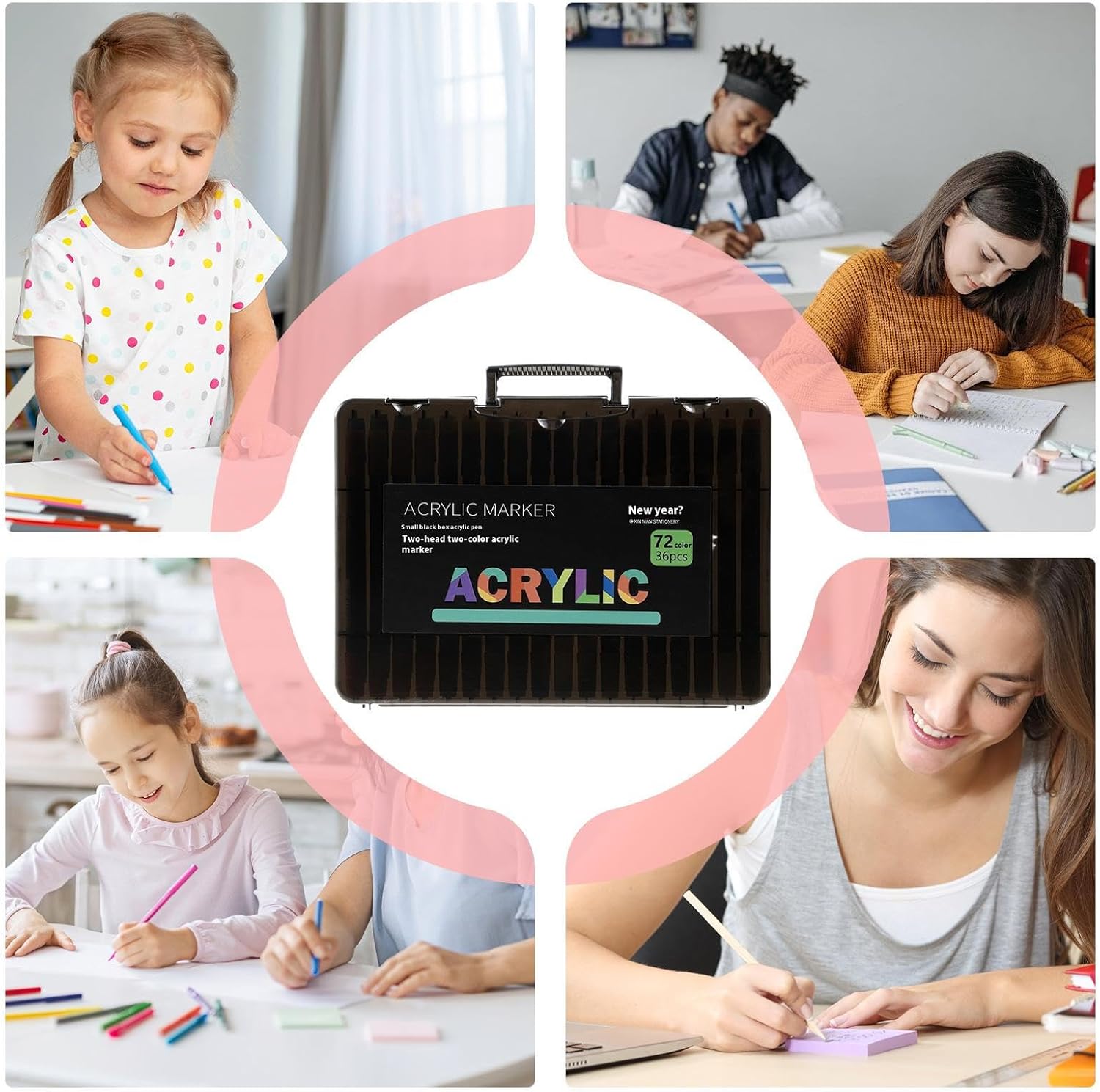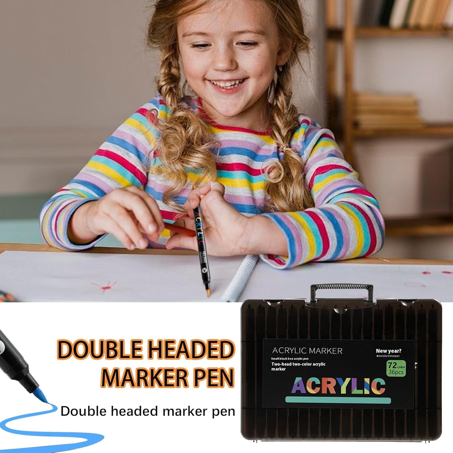 Fornito con un kit: caratterizzati da un design a doppia punta, questi pennarelli acrilici consentono sia il disegno che la colorazione di grandi aree, perfetti per diversi scenari artistici con colori vivaci Impermeabile e resistente alle sbavature: questi pennarelli vantano proprietà impermeabili e una forte adesione, offrendo finiture a prova di sbavature su più superfici utilizzando una formula ad asciugatura rapida per comodità Multiuso: migliora le forme d'arte attraverso un'eccellente copertura e una resa fine, progettata per usi misti e adattabile a innumerevoli scenari creativi con precisione affidabile Comodo stoccaggio: il design della struttura a strati assicura che i pennarelli acrilici siano conservati convenientemente, proteggendo le punte per un accesso rapido e un'organizzazione efficiente Ampio campo di applicazione: la consistenza antiscivolo garantisce una maneggevolezza fluida e un'ampia adattabilità, rendendo piacevoli i progetti artigianali promuovendo il legame familiare attraverso un design inclusivo