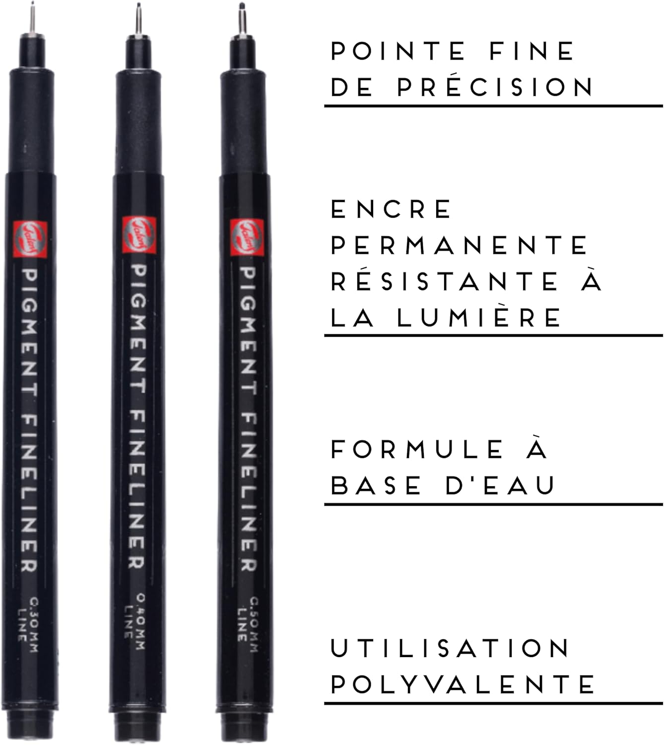 Questo set contiene tre penne con punta media da 0,30 mm, 0,40 mm e 0,50 mm, perfette per disegni dettagliati e per la scrittura quotidiana. L'inchiostro nero è resistente alla luce e permanente, garantendo che la tua opera d'arte rimanga vibrante senza sbiadire, anche alla luce. Utilizzando inchiostro a base d'acqua, queste penne offrono linee morbide e uniformi senza sbavature, rendendole perfette per artisti, scrittori e designer. Adatto per disegno, disegni tecnici e scrittura a mano, rendendo questo set versatile per un uso creativo e professionale. Talens è noto per la sua alta qualità e questi pennarelli offrono un'esperienza di scrittura e disegno confortevole per principianti e utenti avanzati dai 14 anni in su.