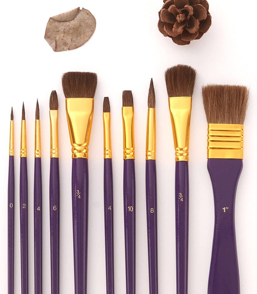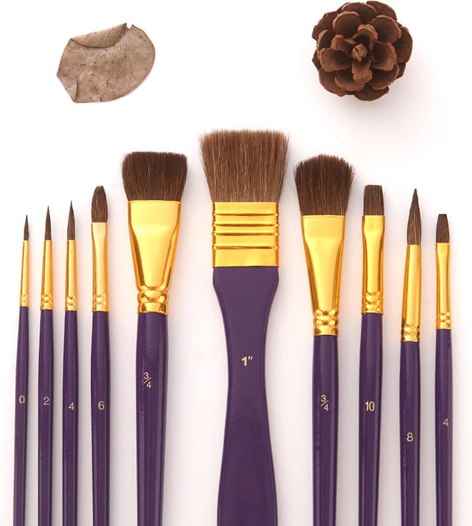 Punta morbida e a pennello, disponibile per dipingere su tutti i tipi di superficie. Tela allungata, legno, tessuto, carta, corpo umano, chiodi, può essere utilizzata per bambini, principianti, artisti o qualsiasi amante dell'arte Manici in legno dal design ergonomico, appositamente ispessiti per una migliore presa e maneggevolezza Ideale per fauna selvatica, ritrattistica, per bambole, illustrazioni, miniature, modellini di navi e aeroplani, arti e mestieri, roccia, pelle, gesso e ceramica, o pittura per corpo, unghie e viso Un set di pennelli con 10 pennelli, per soddisfare le esigenze di uso quotidiano Le setole dal design professionale tengono saldamente la vernice. Previene la perdita di capelli e la perdita di capelli