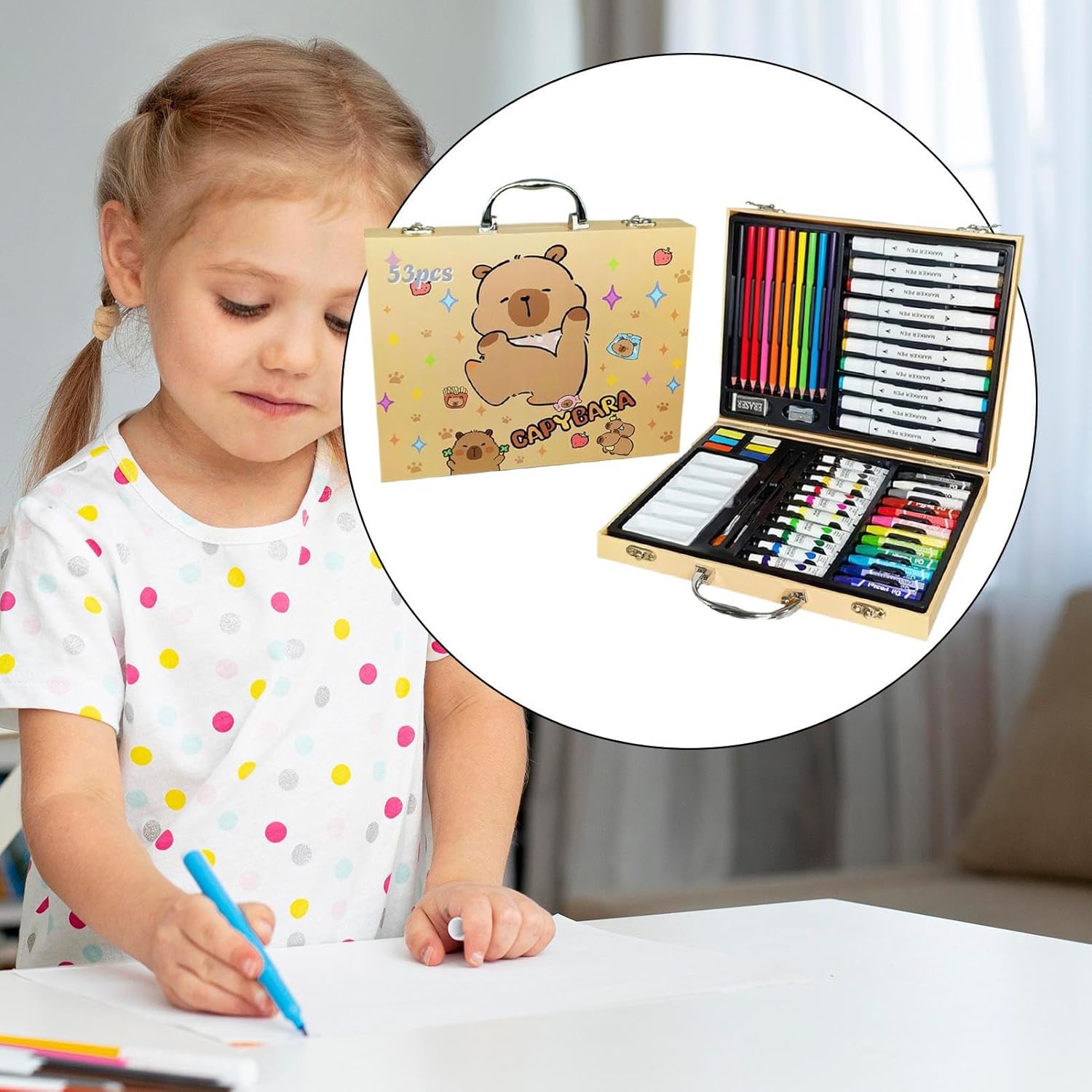 Design Multifunzione: Set completo con pennarelli ad e strumenti innovativi che stimolano la creatività, ideale per sperimentare tecniche miste e adattarsi a diversi stili artistici in modo intuitivo Sicurezza garantita: Tessitura liscia e materiali selezionati per un set da pittura senza odori che protegge le mani durante l'uso, ideale per esperienze artistiche piacevoli e di rischi per tutte le età - composizione studiata per garantire massimo comfort e utilizzo prolungato senza irritazioni Portabilità ottimale: Struttura organizzata razionalmente con scomparti dedicati, custodito in pratica valigetta leggera che mantiene intatti colori e accessori, soluzione perfetta per artisti in movimento Dinamismo cromatico versatile: Stratificazioni pigmentate e saturazione bilanciata donano lucentezza professionale, ideali per tecniche miste e sperimentazioni artistiche progressive Sviluppatore di abilità visive: Percorso graduale per migliorare la sensibilità ai colori e la precisione manuale attraverso esercizi proporzionati all'età. Metodo efficace per coltivare l'immaginazione e la consapevolezza estetica nelle fasi cruciali della crescita.