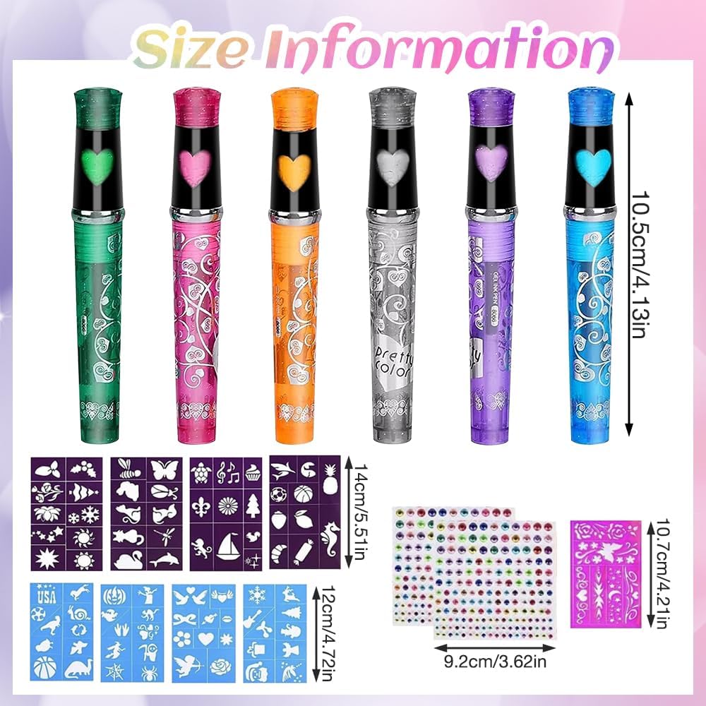 Set Di Penne Per Tatuaggi A 6 Colori Per Bambini Con 8 Stencil 80 Modelli E Penne Per Tatuaggi In Gel Con Gemme Per Il Viso Per La Festa Di Compleanno Di Halloween Bellezza Tatuaggio Temporaneo