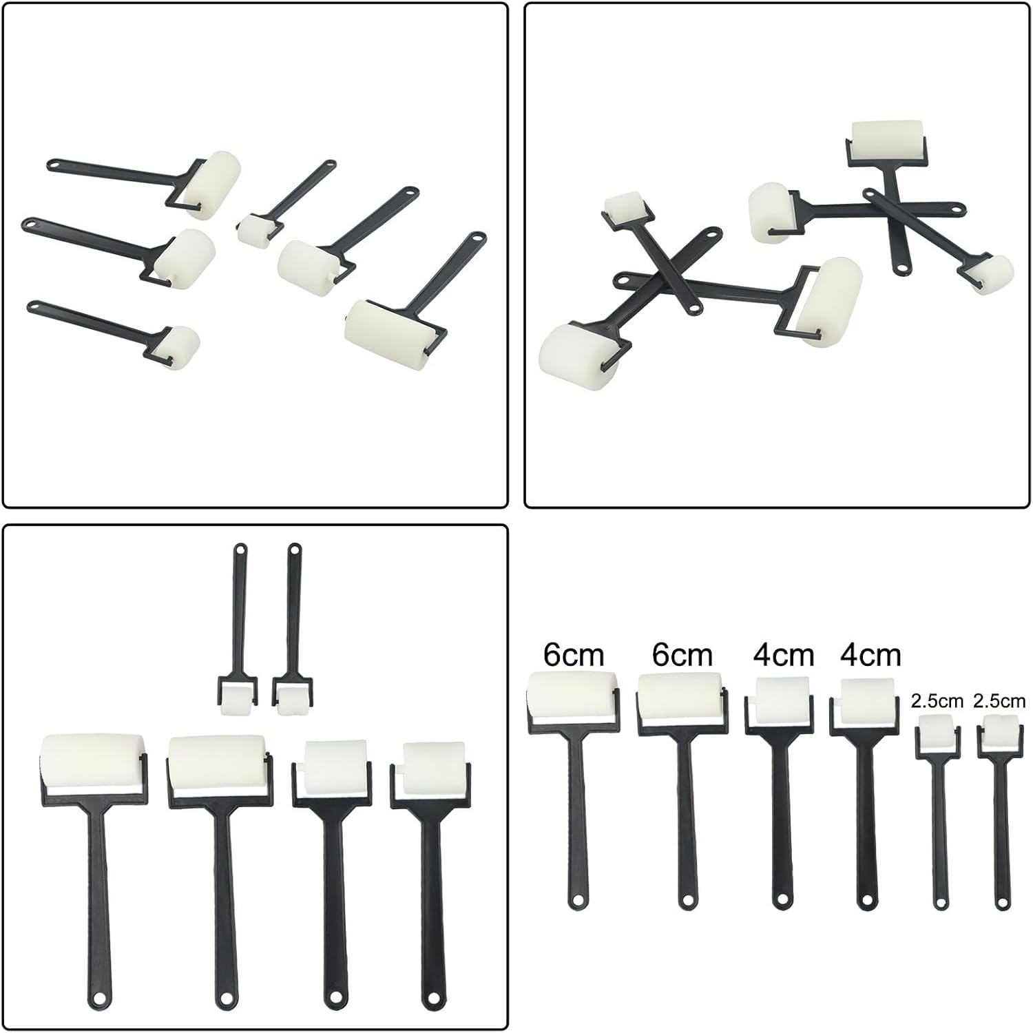 Pennelli in schiuma per bambini: questi pennelli in schiuma sono strumenti perfetti per l'artigianato, gli hobby e i progetti decorativi, rendendoli adatti sia ai bambini che agli adulti. 【Dimensioni leggere e adatte】 Progettate per essere leggere e facili da maneggiare, queste spazzole sono della dimensione perfetta per un utilizzo confortevole da parte di bambini e adulti. 【Misure multiple】 Il set comprende 6 spazzole a rullo in spugna, con 2 spazzole di ciascuna dimensione: S (5 cm x 15 cm), M (4 cm x 18 cm) e L (6 cm x 18,5 cm). Materiale: realizzate in spugna e plastica, queste spazzole a rullo possono essere utilizzate per molteplici progetti. Utilizzo: questi pennelli sono adatti a vari progetti, come artigianato, hobby, decorazione della casa e altro ancora. Con la loro versatilità, costituiscono un'ottima aggiunta a qualsiasi collezione di materiali artistici.