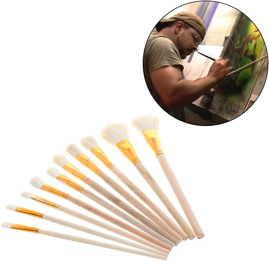 I manici in legno opaco offrono un maggiore controllo del pennello durante la pittura Le ghiere sono a doppia crimpatura e fissate al manico in modo che non ci siano oscillazioni Le setole della spazzola rimangono morbide e flessibili dopo la pulizia. Le setole non cadono dopo la pulizia Per pulire i pennelli, basta scorrere sotto l'acqua calda per lavare la vernice e utilizzare le dita per rimodellare delicatamente le setole del pennello Setole di lana + legno