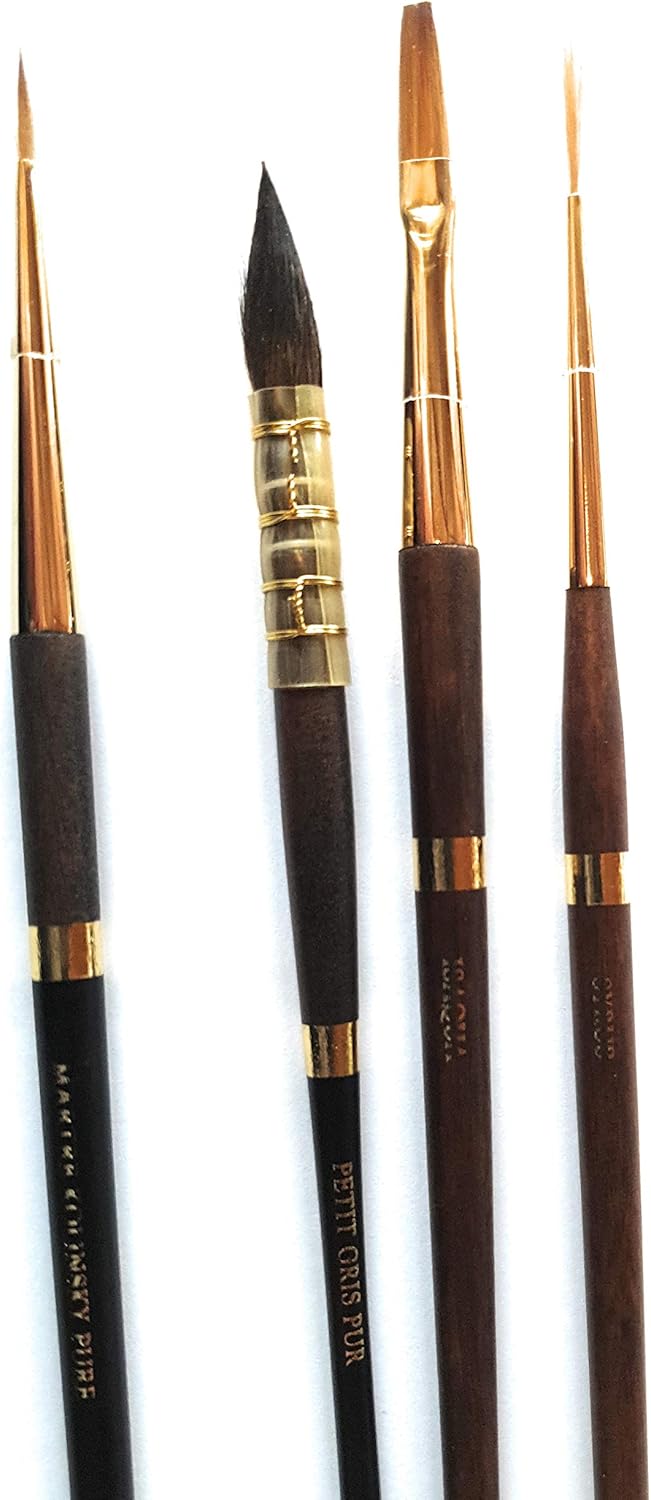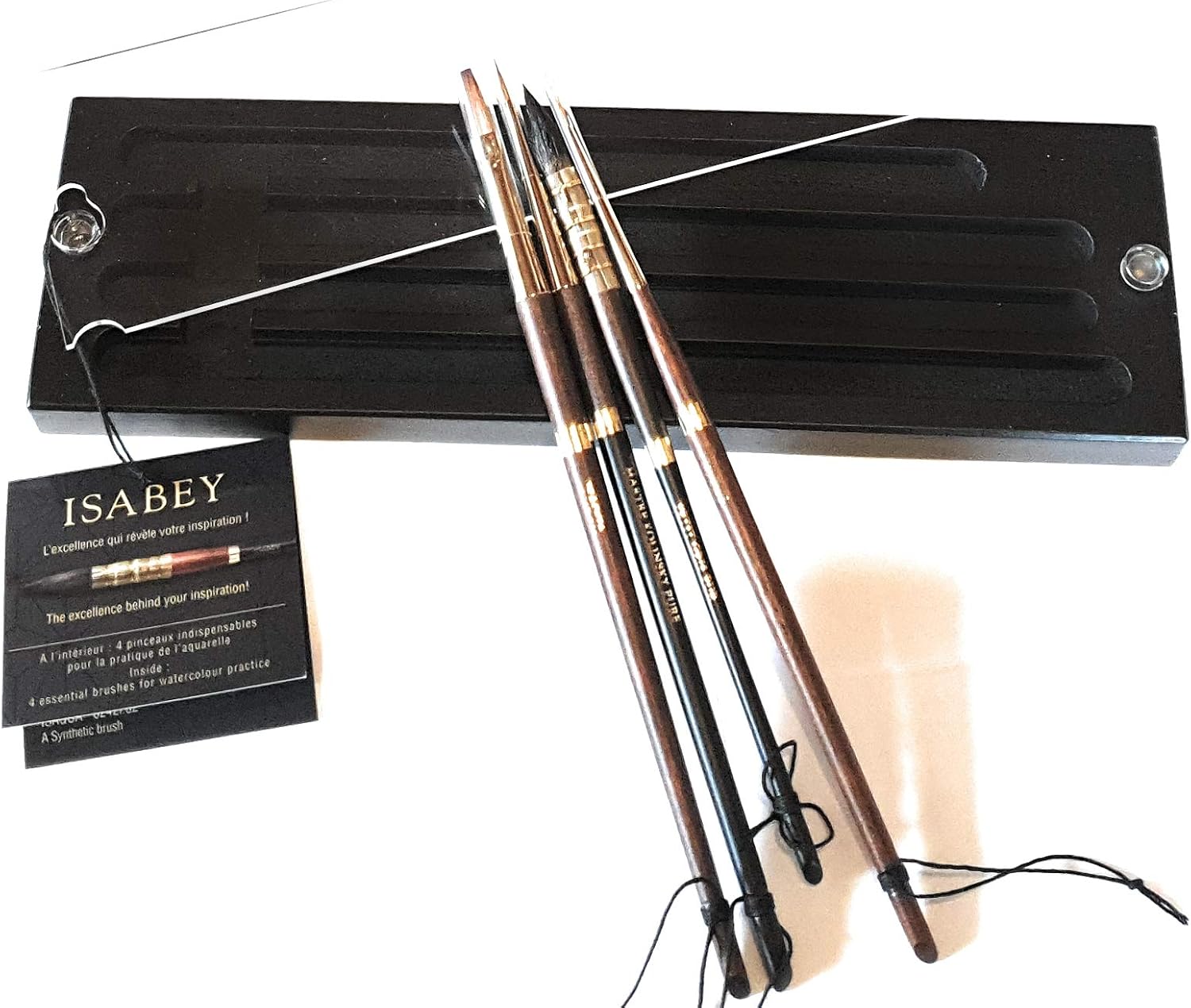 Produzione artigianale": "Questi pennelli per acquerello sono realizzati a mano con cura e passione in Bretagna, Francia, seguendo metodi tradizionali. Selezione delle setole": "Isabey seleziona personalmente le setole più pregiate al mondo per garantire una qualità superiore. Tempi di produzione": "Ogni pennello impiega 7 anni per imparare a realizzare i pennelli della linea Isabey. Rigoroso controllo di qualità": "Isabey impone un rigoroso controllo di qualità in ogni fase della produzione per garantire la perfezione. Set completo": "Contiene 4 pennelli di diverse dimensioni e tipologie per soddisfare tutte le vostre esigenze. esigenze dell'acquerello