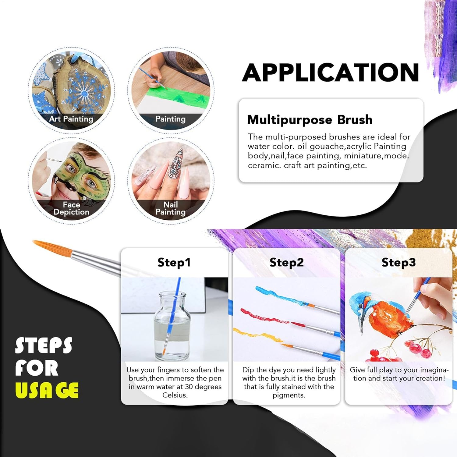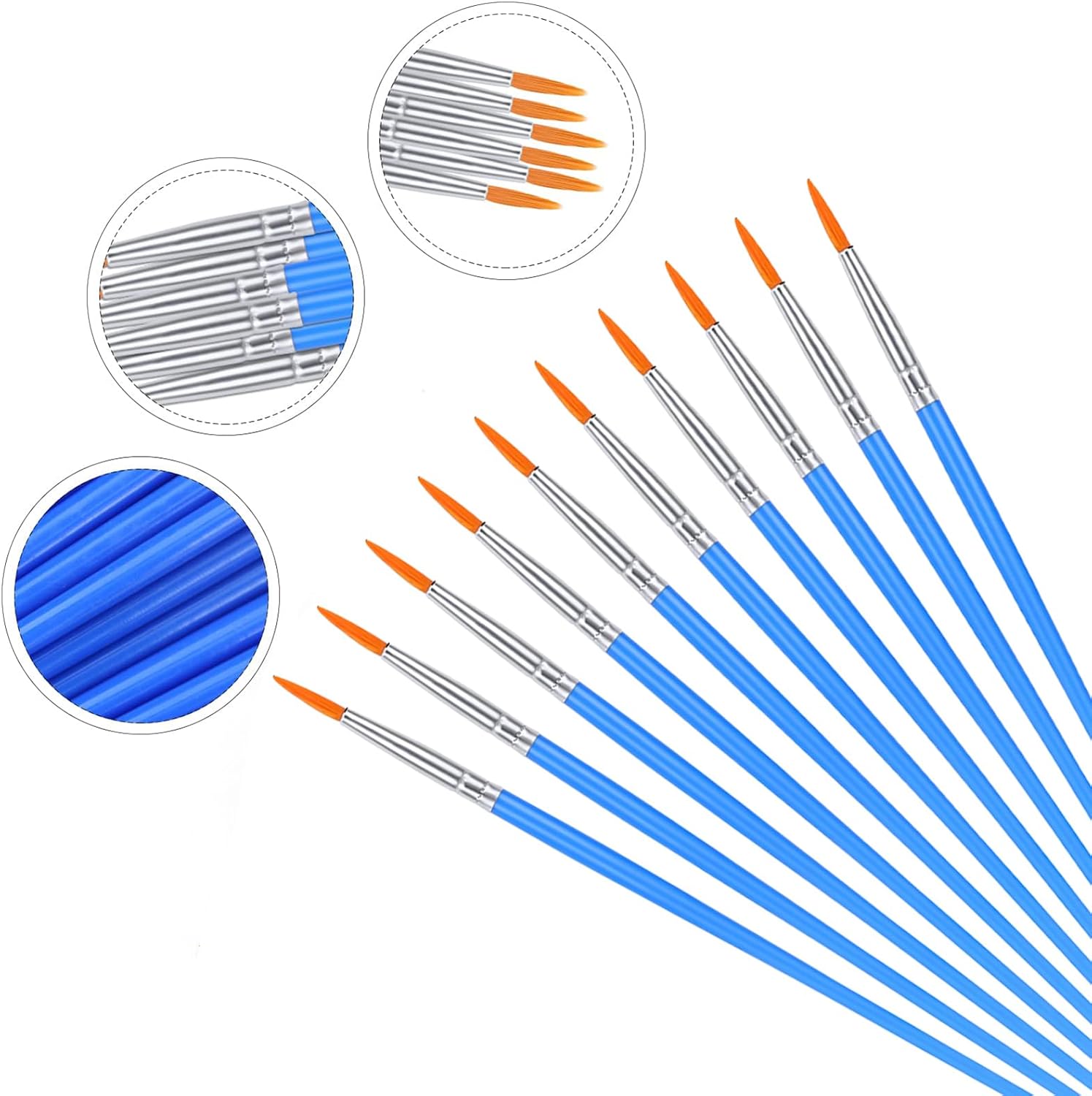 Facile per gli utenti: con una lunghezza del manico di 170 mm/6,7 pollici, i pennelli per acquerello offrono un facile controllo per artisti di qualsiasi livello. Perfetto per e studenti. Materiale riutilizzabile: con setole in nylon sintetico che non si staccano durante l'uso, i pennelli per acquerello garantiscono un flusso di vernice regolare e opere d'arte di lunga durata. Nessun spargimento o spargimento. Ampia varietà di applicazioni: dalla pittura del corpo e del viso ai dettagli intricati su ceramica e rocce, questi pennelli sono perfetti per l'artigianato con le scarpe e la pittura artistica ad acquerello, olio, tempera e acrilico. Godetevi la facilità offerta dal loro utilizzo versatile. Manutenzione facile: mantieni i tuoi pennelli da acquerello in ottime condizioni pulendoli senza sforzo con acqua calda e sapone e rimodellando le setole. Quindi conservare la spazzola verticalmente, con la testa rivolta verso l'alto, per una manutenzione senza problemi dopo ogni utilizzo. Bel regalo: promuovi la crescita artistica in occasioni festive come Pasqua e Natale con questo set di pennelli per acquerello: un ottimo regalo per bambini, adolescenti e principianti che amano dipingere. Un bel regalo per mostrare la tua attenzione.