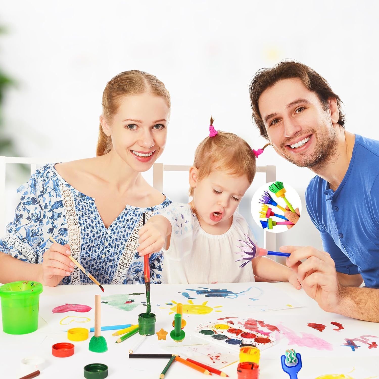 Contenuto della confezione: riceverai 24 pennelli in spugna, il ricco e vario set di strumenti di pittura per bambini soddisfa le diverse esigenze di pittura dei bambini, aiuta a motivare l'immaginazione e la creatività dei bambini. Materiale di alta qualità: pennelli per pittura in spugna Realizzati in schiuma EVA atossica di alta qualità, manico in plastica e testina in spugna, facili da padroneggiare e controllare per i bambini. Padre e madre possono giocare con i propri figli per aumentare le emozioni. Facile da pulire: diverse forme e dimensioni per il tuo comfort possono aiutare a rafforzare i muscoli delle mani e delle dita e sviluppare le capacità motorie. Tutti gli strumenti di verniciatura sono lavabili e possono essere facilmente asciugati e puliti dopo il riutilizzo. OTTIMA IDEA REGALO: perfetto per compleanni, vacanze o qualsiasi occasione speciale, questo kit sarà sicuramente un successo sia per i bambini che per i genitori. Multiuso: i bambini possono utilizzare questi strumenti per dipingere, disegnare, progetti di artigianato fai-da-te e così via, aiuteranno a motivare l'immaginazione e la creatività dei bambini e a migliorare la loro cognizione del colore.