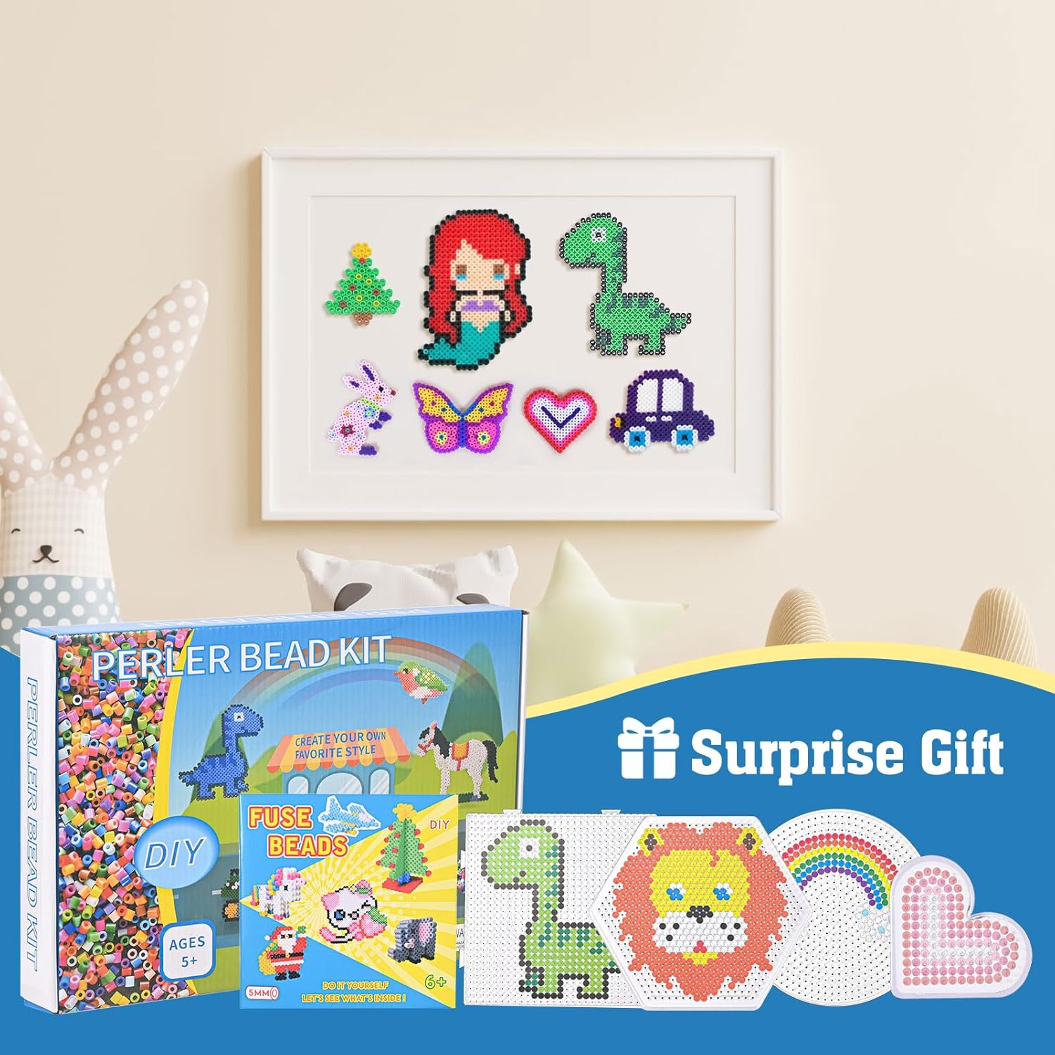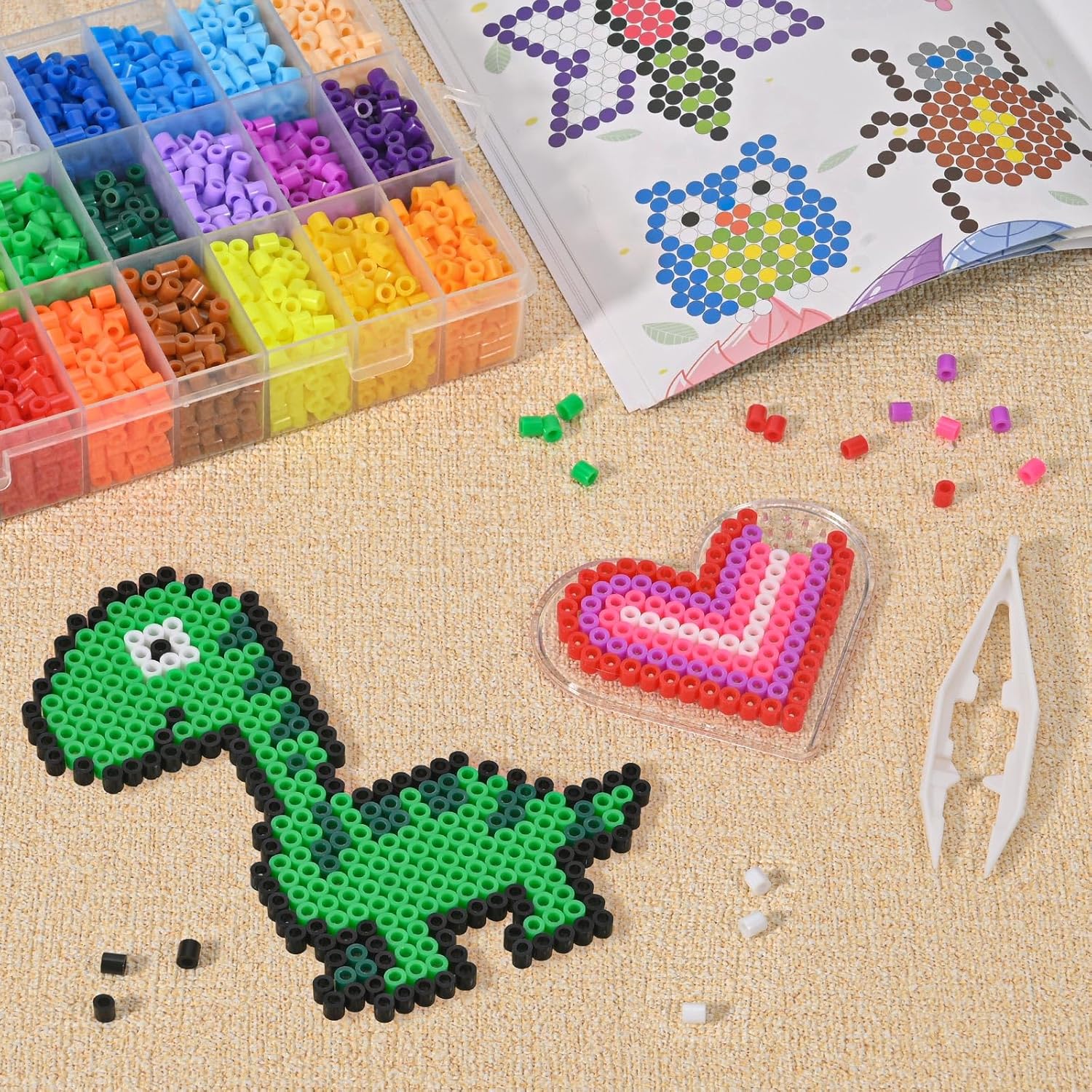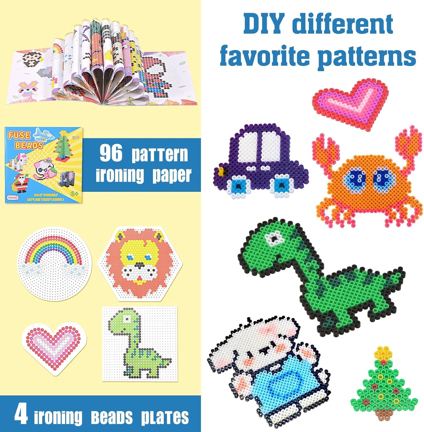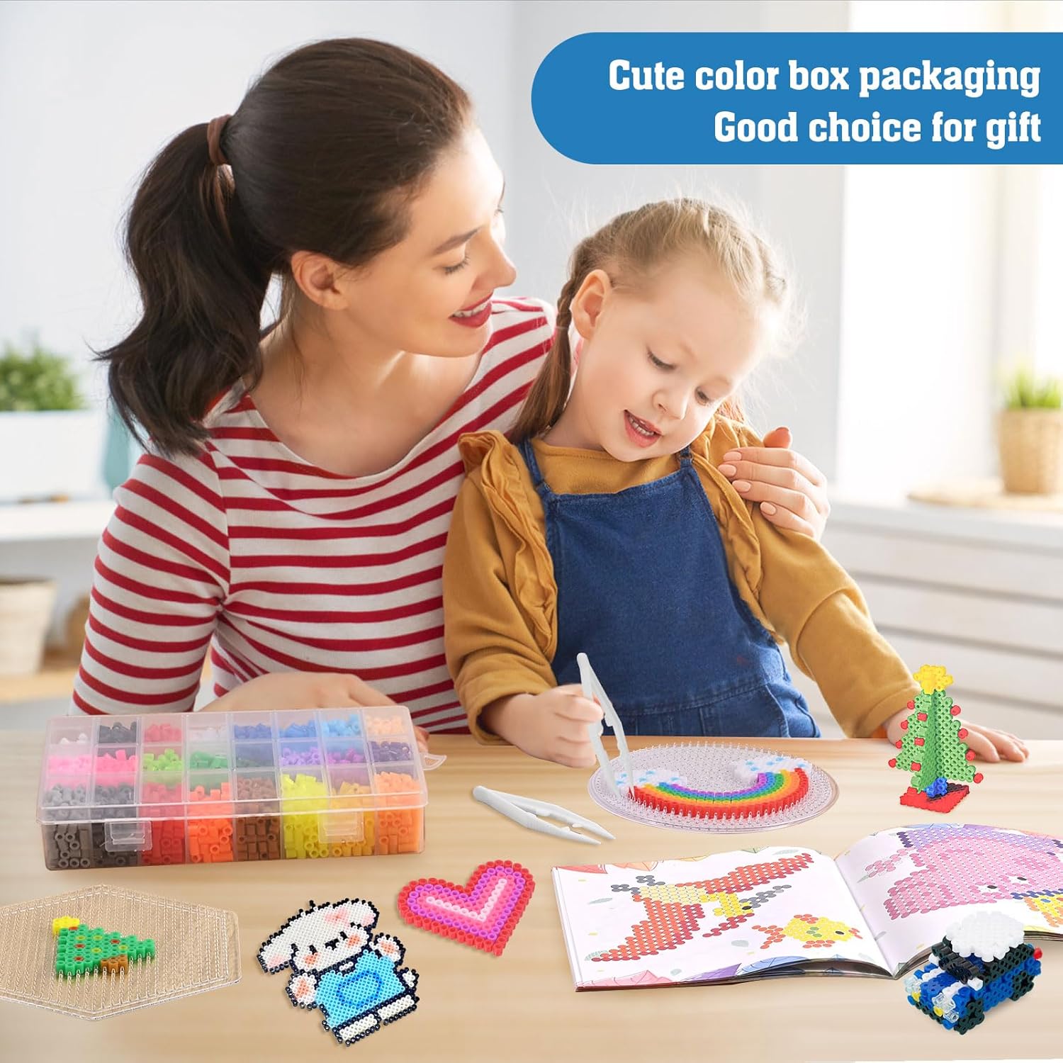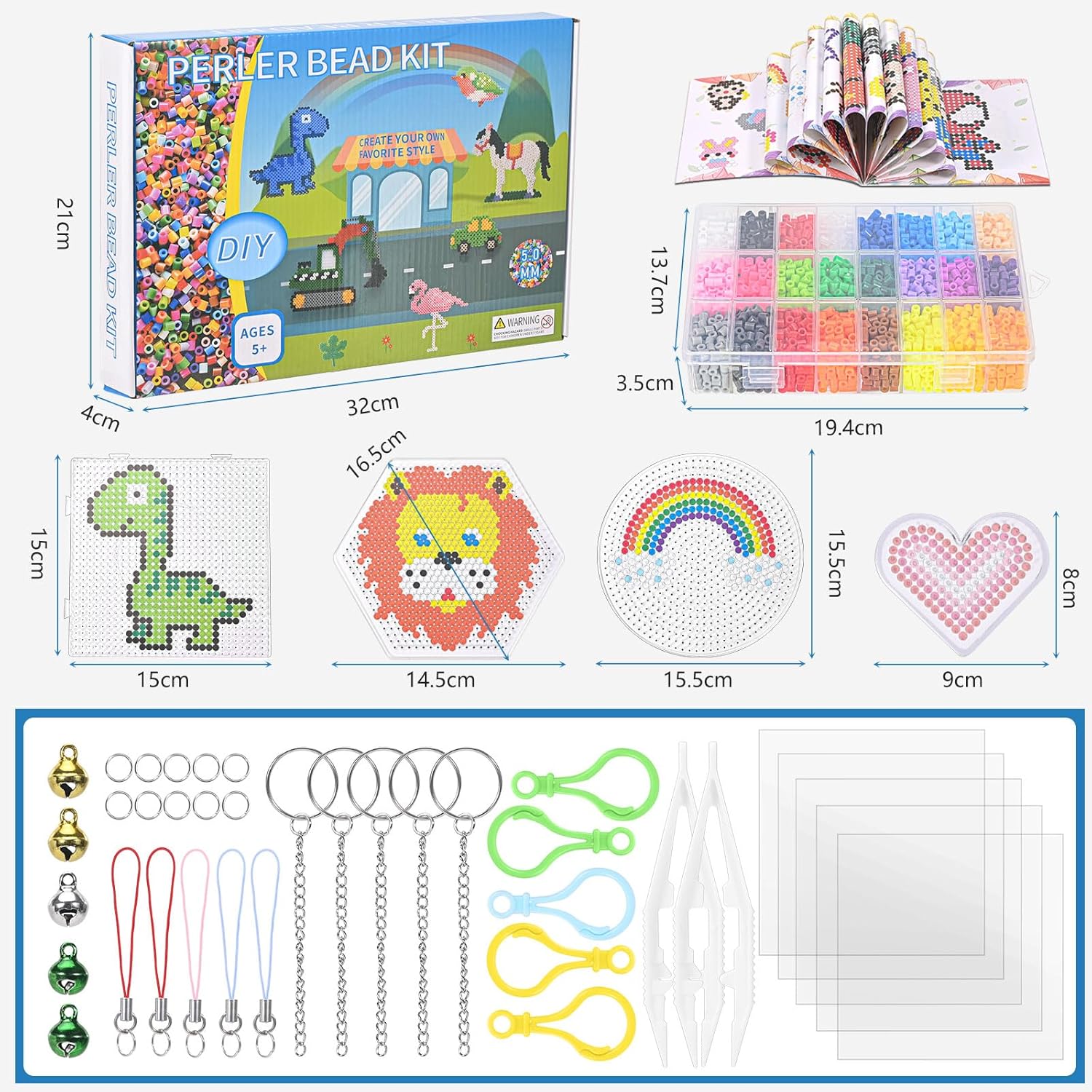 Contenuto ricco: Il set di perline da stirare comprende un contenuto estremamente ricco: 7000 perline di 24 colori, 4 piastre di perline da stirare trasparenti, 4 disegni, 84 motivi, 2 pinzette, 5 portachiavi metallici colorati, 5 portachiavi metallici a forma di aragosta, 9 anelli metallici, 10 cordini colorati e 1 scatola di immagazzinaggio, permettendo ai bambini di dare libero sfogo alla propria creatività Facile da usare: Per usare le perline da stirare basta posizionare le perline sulla piastra di perline da stirare appropriata secondo il motivo o le proprie esigenze, quindi coprire le perline posizionate con un foglio da stiro e stirare delicatamente fino a quando le perline si sciolgono. Poi stirare l'altro lato e attendere che si raffreddi e un'opera d'arte squisita è completata Dimensioni del prodotto: Le perline da stirare hanno una dimensione di 5 millimetri (più grandi dei comuni 2,6 millimetri), assicurando che i bambini possano impilarle facilmente. Sono realizzate in materiale EVA sicuro, tutti i bordi sono lisci, rendendo il gioco dei bambini ancora più sicuro Materiale sicuro: Il set di perline da stirare e i suoi accessori sono realizzati in materiale EVA ecologico. Le perline da stirare scintillanti hanno colori vivaci, sono sicure e inodore, molto adatte per i bambini. Il materiale delle perline da stirare è resistente e durevole, difficile da usurarsi e non si scioglie o si piega facilmente durante la stiratura Momenti in famiglia: L'uso del set di perline da stirare per i lavori manuali è un'attività versatile adatta a ragazzi e ragazze di tutte le età. Le perline artigianali sono un'attività creativa per le feste di compleanno dei bambini e un'ottima idea artigianale per creare insieme ai bambini. È un regalo per i bambini di età superiore a 5 anni che amano l'arte e i lavori artigianali
