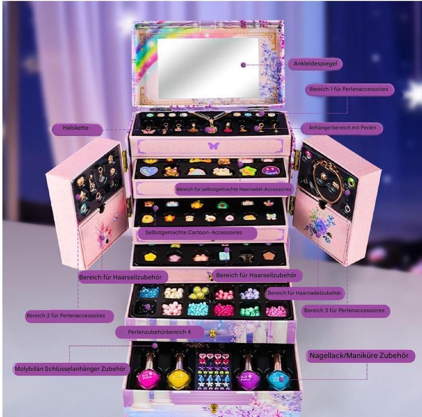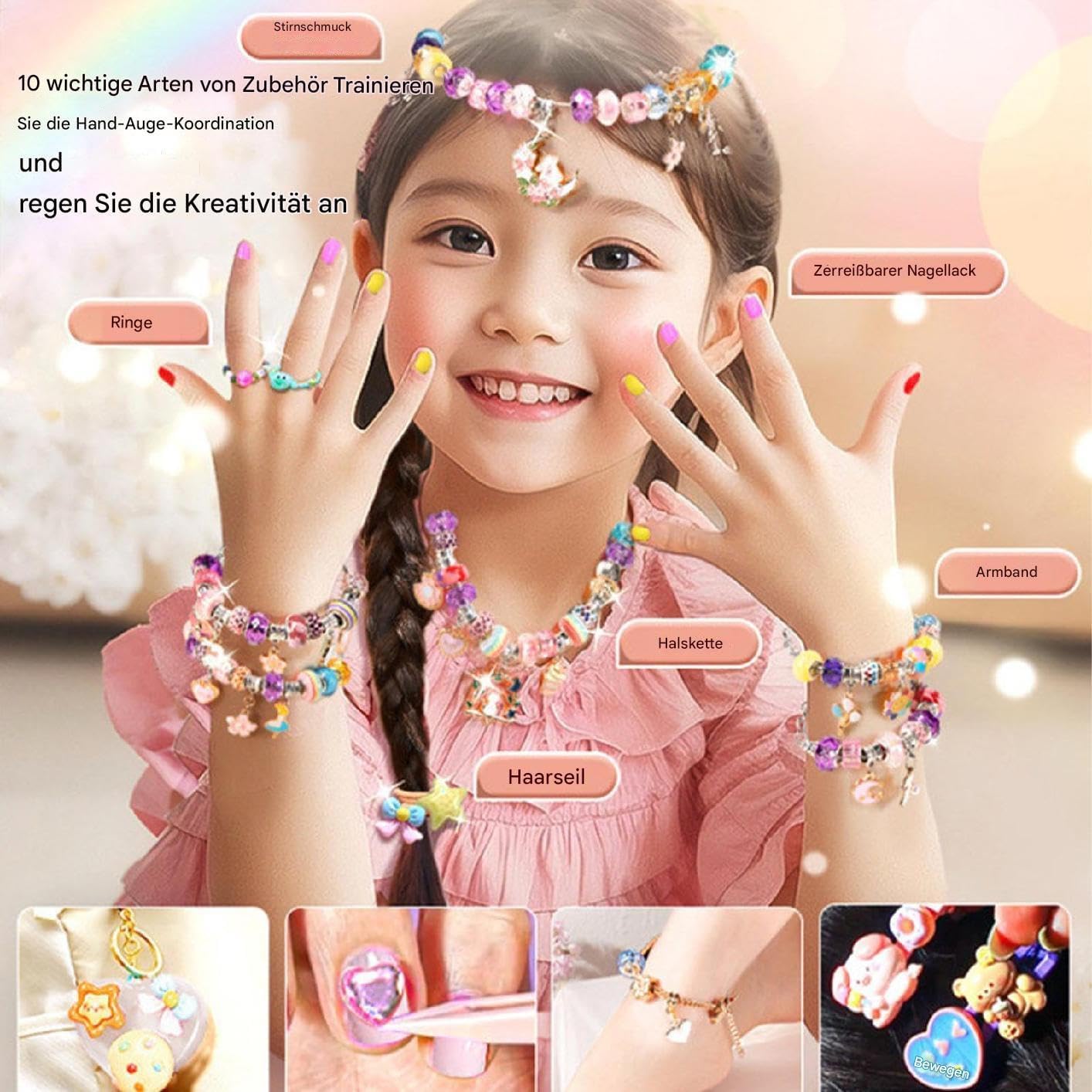 Set di bracciali perfetti: il set di braccialetti con charm viene fornito con una scatola portagioie e una serie di accessori ricchi che ispirano design fantasiosi. Promuovi il talento e crea ricordi indimenticabili mentre tuo figlio esplora altre possibilità creative Lascia correre l'immaginazione: incoraggia il tuo bambino a sviluppare il suo interno con il nostro set di braccialetti con charm. Ti piacerà sperimentare colori, forme e motivi per creare un braccialetto unico perfetto per ogni occasione Regali ideali: il nostro set di braccialetti fai da te è una scelta eccellente per creare adorabili regali per bambine, feste e attività artigianali. Con questo set puoi condividere momenti felici con la tua famiglia ed è un regalo perfetto per ogni occasione Sviluppa le capacità motorie fini: lasciate correre la creatività del vostro bambino con il nostro set di braccialetti con charm. Questo giocattolo divertente ed educativo migliora le capacità motorie, migliora la coordinazione dei colori e la creazione di modelli, permettendo al bambino un viaggio fantasioso pieno di nuove possibilità Giocattoli interessanti: il nostro set di braccialetti con charm non si limita alla produzione di braccialetti. Comprende set e accessori per capelli e un organizer con 6 cassetti per organizzare e riporre facilmente tutti i giocattoli giocosi, come i kit di creazione di collane e braccialetti