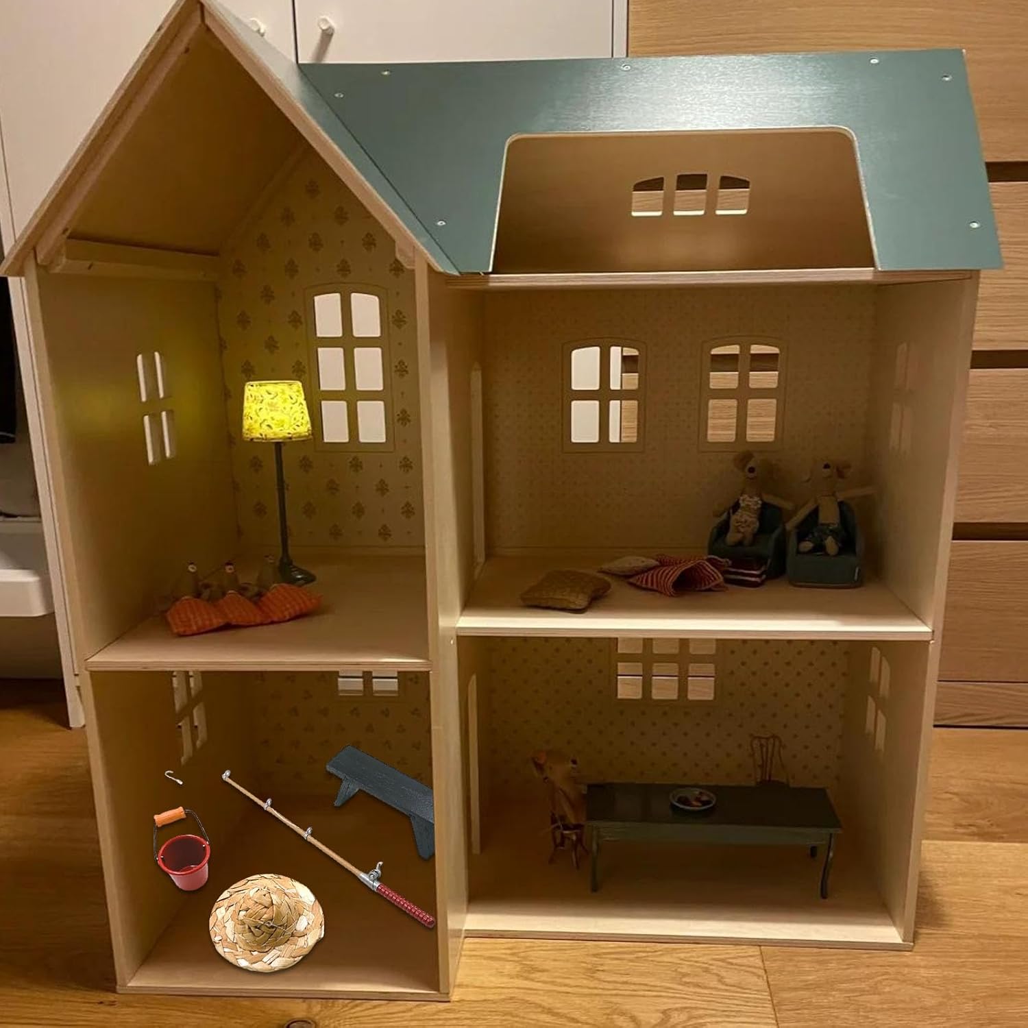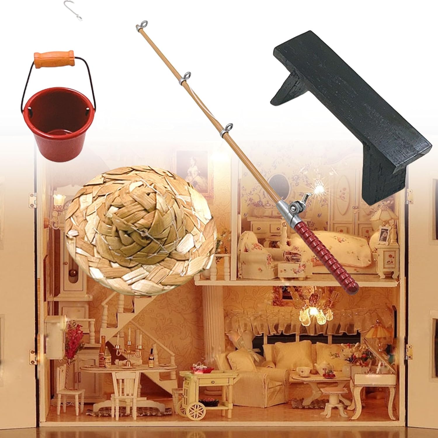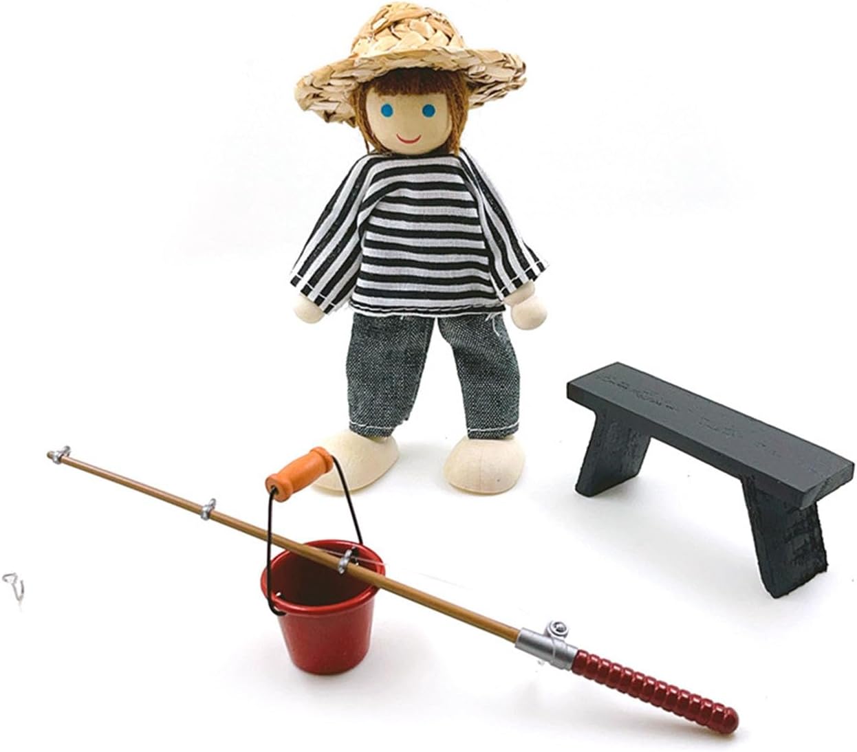 Progettato per collezionisti dai 3 anni in su che amano la narrazione fantasiosa e le attività dettagliate di gioco di ruolo con accessori per case delle bambole per bambini Crea scenari di pesca coinvolgenti nel cortile in diorami di case delle bambole, sale giochi educative o come kit di modelli decorativi in miniatura per esposizioni per hobby Aggiorna le tue scene di case delle bambole in scala 1/12 con questo realistico set da pesca in miniatura, realizzato in ferro e legno per dettagli autentici e giochi sicuri per i bambini Combina una costruzione robusta con delicati accenti metallici e trame in legno naturale, offrendo una precisione in scala 1/12 per la creazione realistica di scene di case delle bambole Dispone di una canna da pesca, un secchio dettagliato, una panca in legno e un cappello intrecciato per aggiungere fascino agli accessori per mobili in miniatura per case delle bambole