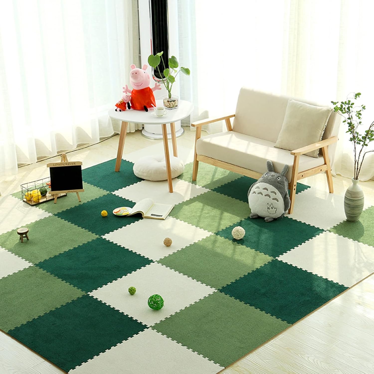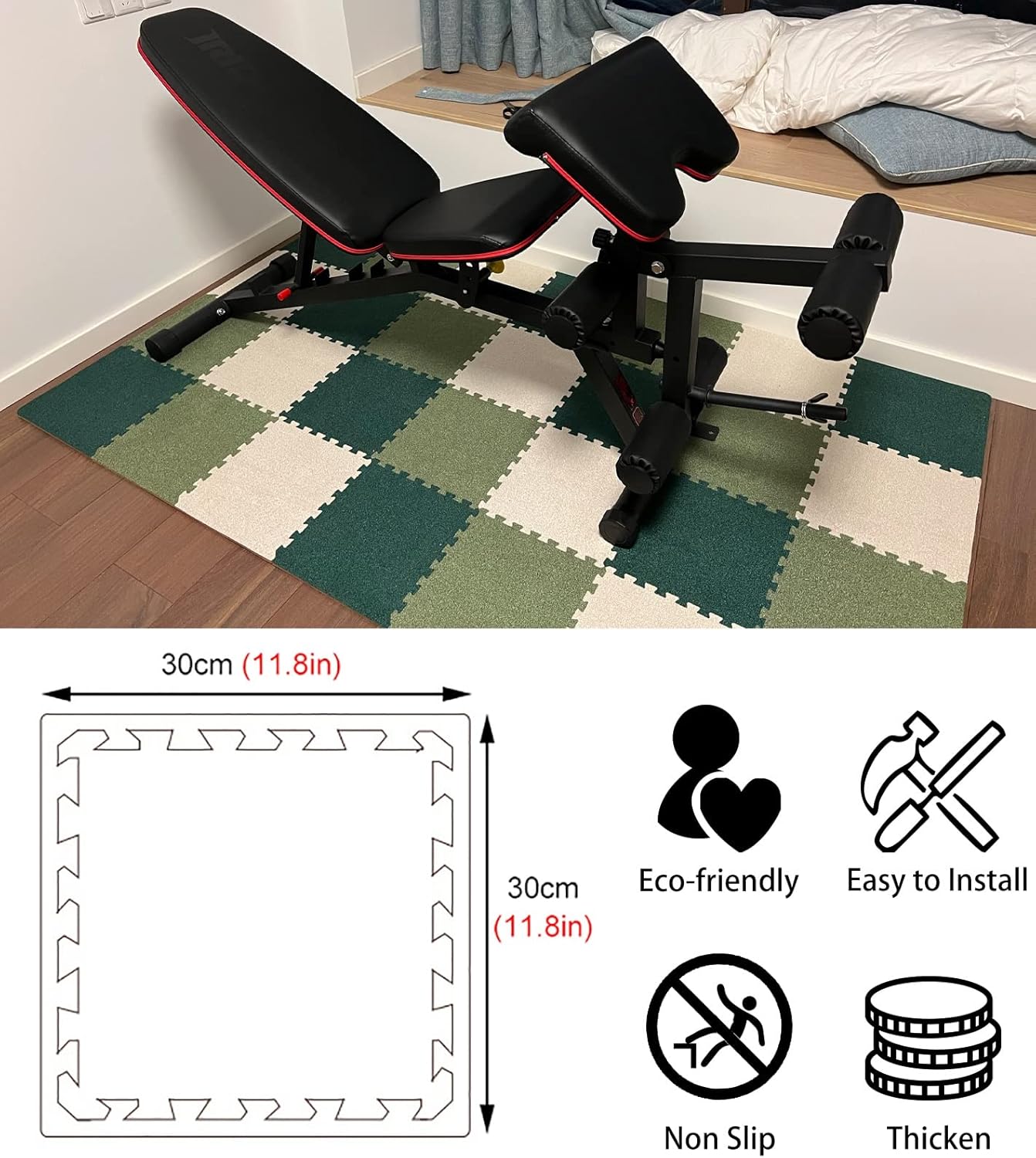 Dimensioni ideali: ogni piastrella ad incastro ispessita è spessa 1 cm e misura 30 cm x 30 cm. 10 piastrelle assemblate sono 0,9 mq. È possibile aumentare o diminuire il numero di tessere Materiali in schiuma di peluche: i nostri tappetini ad incastro sono realizzati in schiuma EVA, rivestiti con morbido e confortevole pile di corallo. Che ti libererà da pavimenti freddi, duri e scivolosi. Saranno m Silenzioso e confortevole: il nostro pavimento in schiuma può ridurre efficacemente il rumore e le vibrazioni, in modo da poter esercitare a proprio agio e non disturbare la famiglia e i vicini. Piastrelle per pavimenti per la casa create senza Facili da usare: basta spianarli sul pavimento e unirli insieme, ti piace un gioco di puzzle, puoi creare il tuo metodo di giunzione dei colori e completare facilmente il processo di assemblaggio. Besid Ampia applicazione: le nostre spesse piastrelle quadrate ad incastro sono adatte per l'uso in inverno per mantenere i piedi caldi e ideali anche per soggiorno, camera da letto, stanza e altri luoghi da fornire
