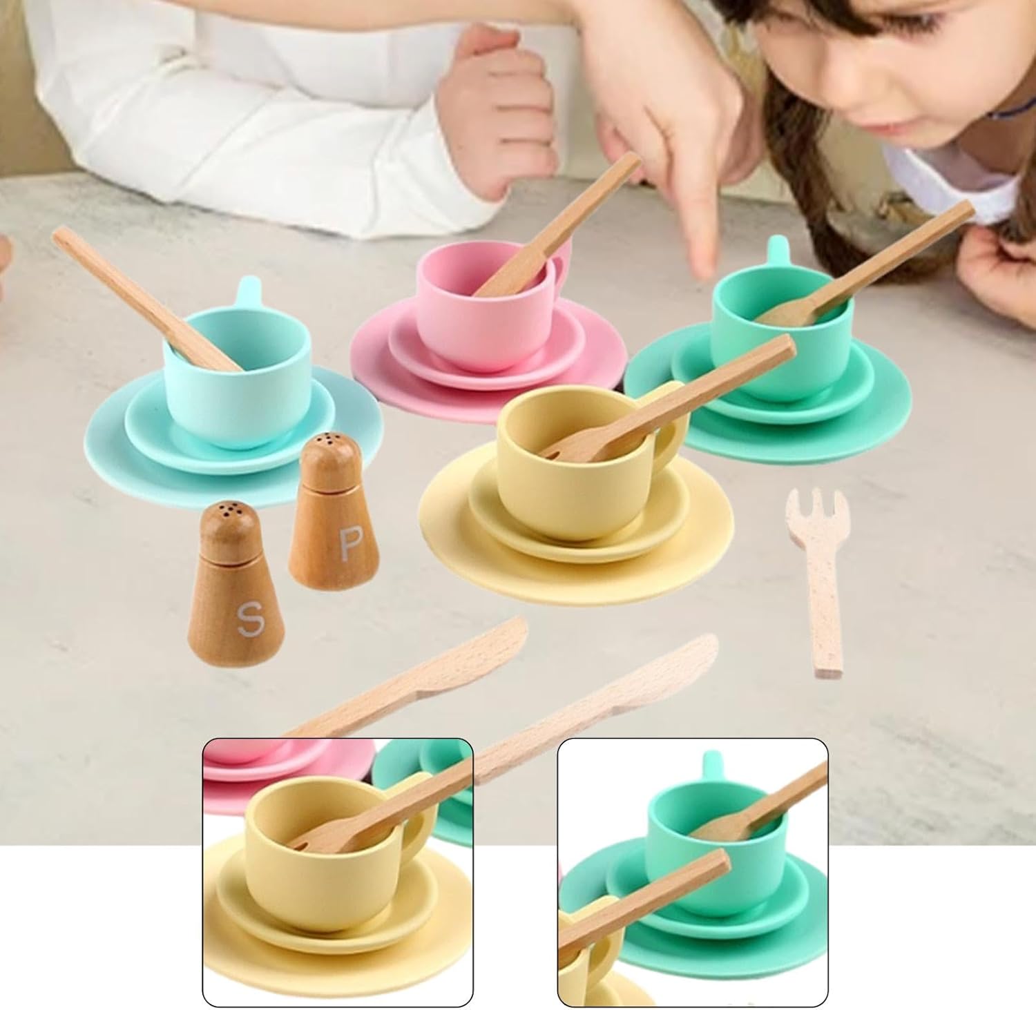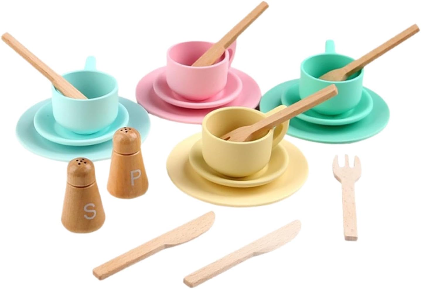 【Un regalo fantastico】: il set da tè da cucina per bambini è un regalo perfetto per bambine, bambine e figlie. Ideale per compleanni, feste e bomboniere. 【Gioco di abbinamento dei colori】: il set da gioco per il tè pomeridiano è caratterizzato da colori diversi, che stimolano l'interesse dei bambini per la cognizione dei colori e consentono loro di vivere felicemente l'ora del tè pomeridiano. 【Giocattolo simulato per il tè pomeridiano】: set di piatti in legno, il set include piatti, piattini, tazze, forchette, coltelli, modello di bottiglie di condimento 【Gioco di ruolo】: Playset di gioco di finzione, i bambini possono migliorare le loro capacità di vita, abilità sociali e immaginazione attraverso il gioco di ruolo come cameriere 【Materiale】: i piatti e i piatti giocattolo in legno per la cucina sono realizzati in materiale di legno, robusti e ottimi per giocare