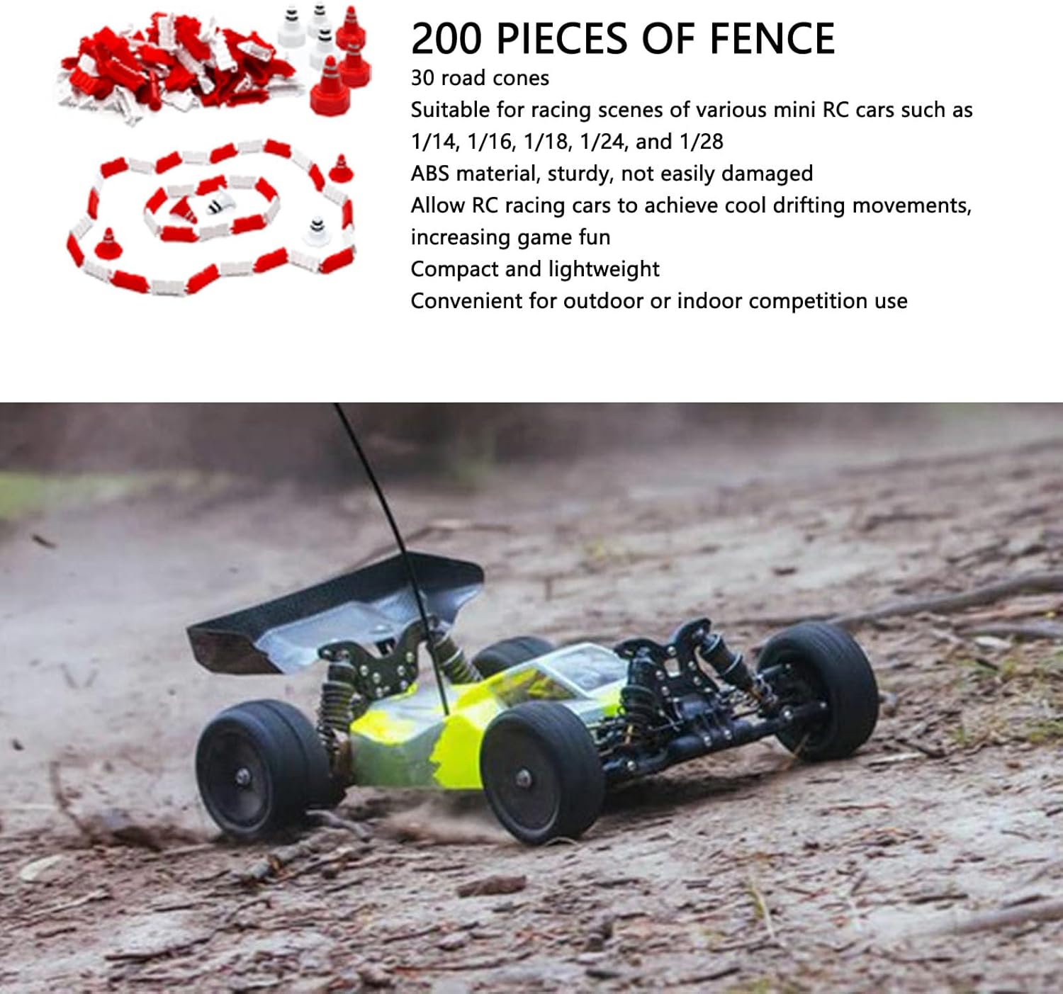[Esperienza di deriva migliorata] Progettato per emozionanti manovre di deriva con una superficie liscia per diapositive senza interruzioni e visibilità ad alta velocità. [Set completo] Include 200 pezzi di recinzione in ABS resistenti e 30 coni colorati per creare esperienze di coinvolgenti. [Portatile e facile riporre] I componenti leggeri garantiscono una configurazione semplice e un comodo stoccaggio per le corse indoor e outdoor. [Costruzione durevole] Le recinzioni sono realizzate in materiale ABS, progettato per resistere a corse intense e collisioni ripetute. [Uso versatile] per battaglie di drift competitive o divertimento di corse casuali con amici e familiari.