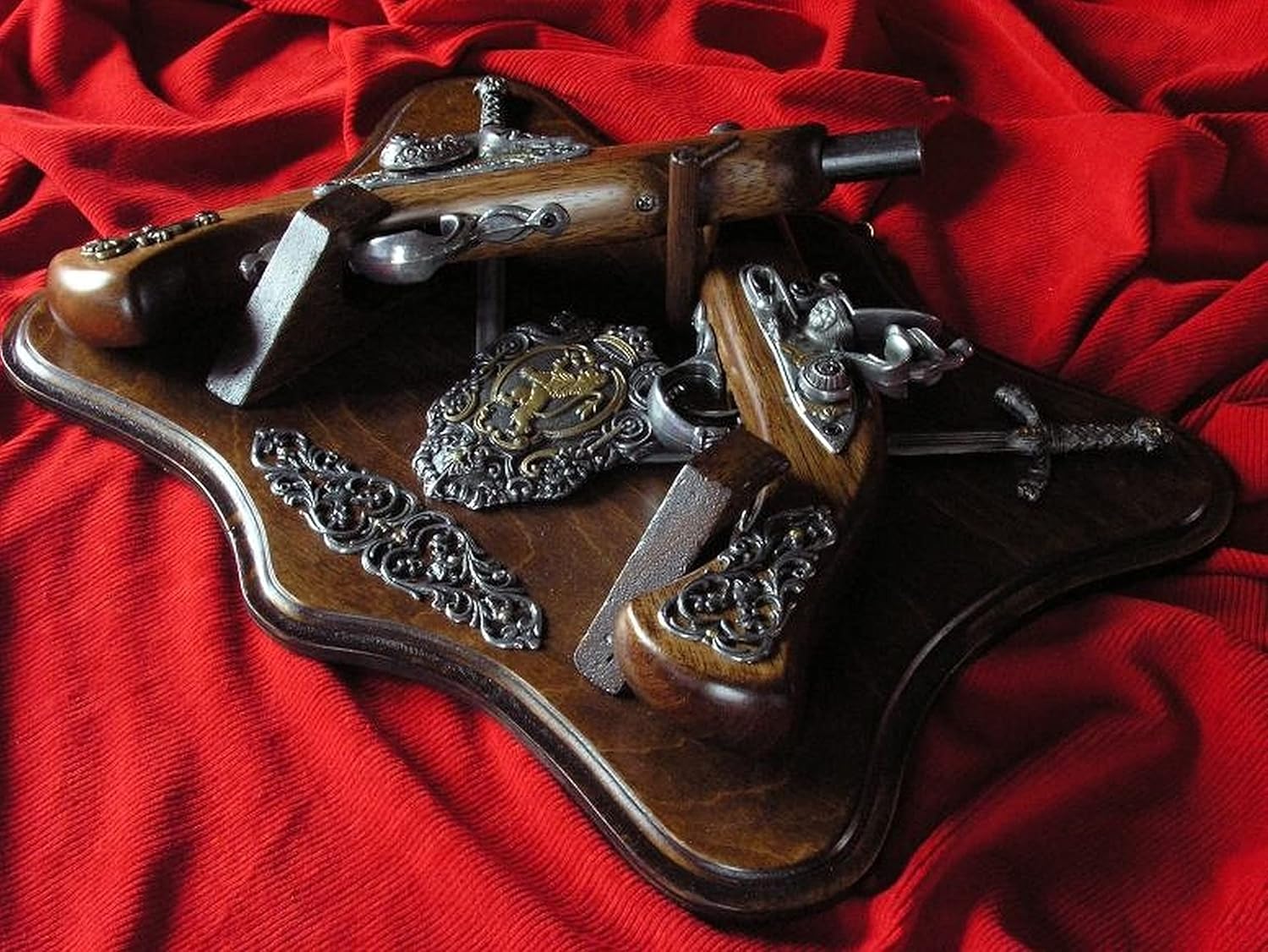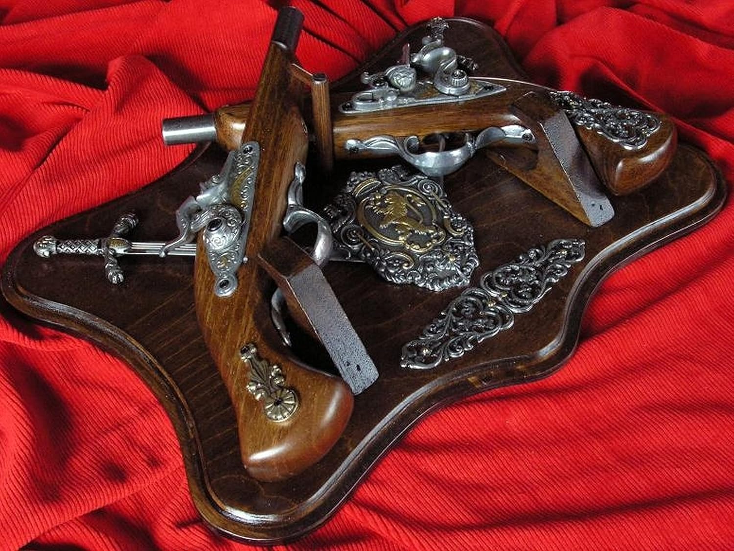 ➤ 【Una replica di pistola a pietra focaia e pistola a percussione】 - Questa è un'arma decorativa, ma completamente riprodotta dagli originali. Peso e dimensioni come nell'originale. Dimensioni con tavola, lunghezza 39 cm, altezza: 29 cm, peso: 1,8 kg. ➤ 【Qualità eccellente】 I materiali sono legno naturale e una lega di zinco e alluminio. Tutti i dettagli sono completamente riprodotti. Il set è composto da una tavola di legno e 2 pistole (rimovibili dalla tavola decorativa). ➤ 【Un grande regalo per i tuoi cari o per te】 -Questo modello con 2 pistole a pietra focaia e pistola a percussione è un grande regalo per papà, nonno o zio. Può diventare una decorazione interessante che conferisce a qualsiasi interno un carattere storico. ➤ 【Pistole storiche】 - Ogni modello di arma è una copia storica. Tali modelli vengono spesso acquistati anche da gruppi di rievocazione storica, opere liriche, teatri, industria cinematografica e collezionisti. ➤ 【Il modello dell'arma è completamente sicuro】 -Non puoi sparargli. Perfetto sia per i bambini interessati alla storia che per i collezionisti adulti che apprezzano l'alta qualità di lavorazione e riproduzione.