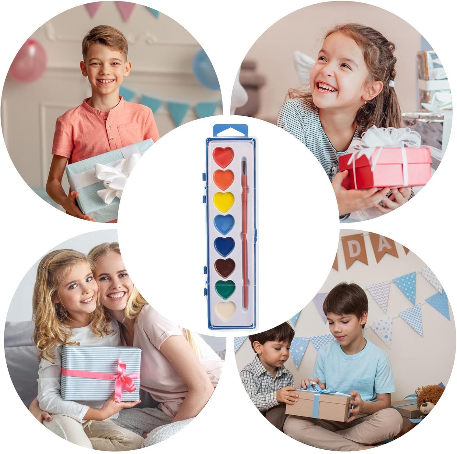 Regalo creativo per San Valentino: questo set di acquerelli a forma di cuore è perfetto per i lavoretti di San Valentino, rendendolo un regalo per bambini in età prescolare, dell'asilo o un regalo divertente per le feste dei bambini. 8 tavolozza di colori vivaci: include 8 colori brillanti e lavabili, facili da miscelare e sfumare, offrendo infinite possibilità per progetti di pittura creativa, da disegni semplici a opere d'arte e artigianato più complesse. Perfetto per bambini e principianti: progettato appositamente per i giovani artisti, questo set è ideale per i gruppi di età prescolare e della scuola materna. La formula delicata garantisce che sia sicuro da usare per i bambini senza supervisione. Design pratico e compatto: la tavolozza a forma di cuore non è solo visivamente accattivante, ma anche compatta e facile da trasportare, rendendola un'ottima opzione per la creatività durante feste, giochi o viaggi. SET COMPLETO CON PENNELLO: viene fornito con un pennello di alta qualità, che fornisce tutto ciò di cui i bambini hanno bisogno per iniziare subito a dipingere. Lo spazzolino è progettato per le mani piccole, rendendolo facile da impugnare e utilizzare da parte dei bambini piccoli.