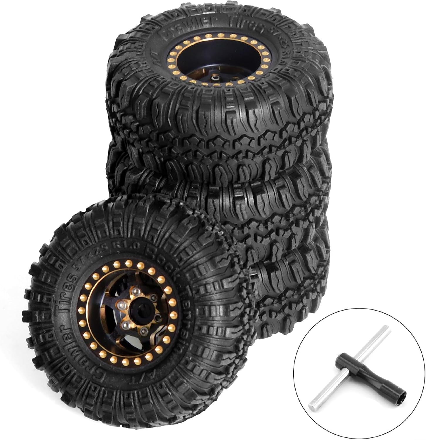 [Progettato per modelli popolari] Questi pneumatici sono compatibili con TRX4M, Axial, SCX24, e 1/18 RC Crawler Cars per prestazioni e montaggio ottimali. Materiali robusti: realizzato in ottone lavorato e ABS per resistere a condizioni fuoristrada difficili con facilità. Finitura in oro nero accattivante: la finitura attraente aggiunge stile fornendo ulteriore resistenza all'usura nel tempo. [Dimensioni per stabilità e controllo] Con una dimensione di 0,01 pollici, questi pneumatici migliorano la stabilità durante le salite sui tuoi sentieri preferiti con i tuoi crawler in scala 1/18. [Eccezionali capacità di trazione] Progettato per una maneggevolezza affidabile su terreni sciolti e scivolosi, dandoti la sicurezza di esplorare qualsiasi percorso.