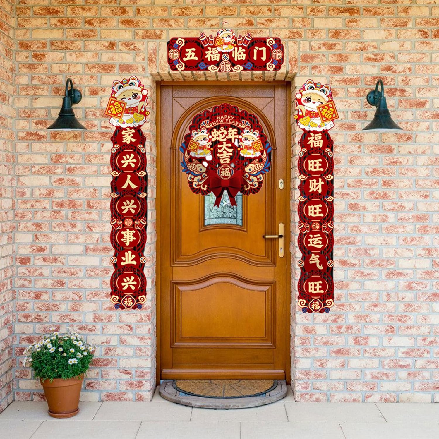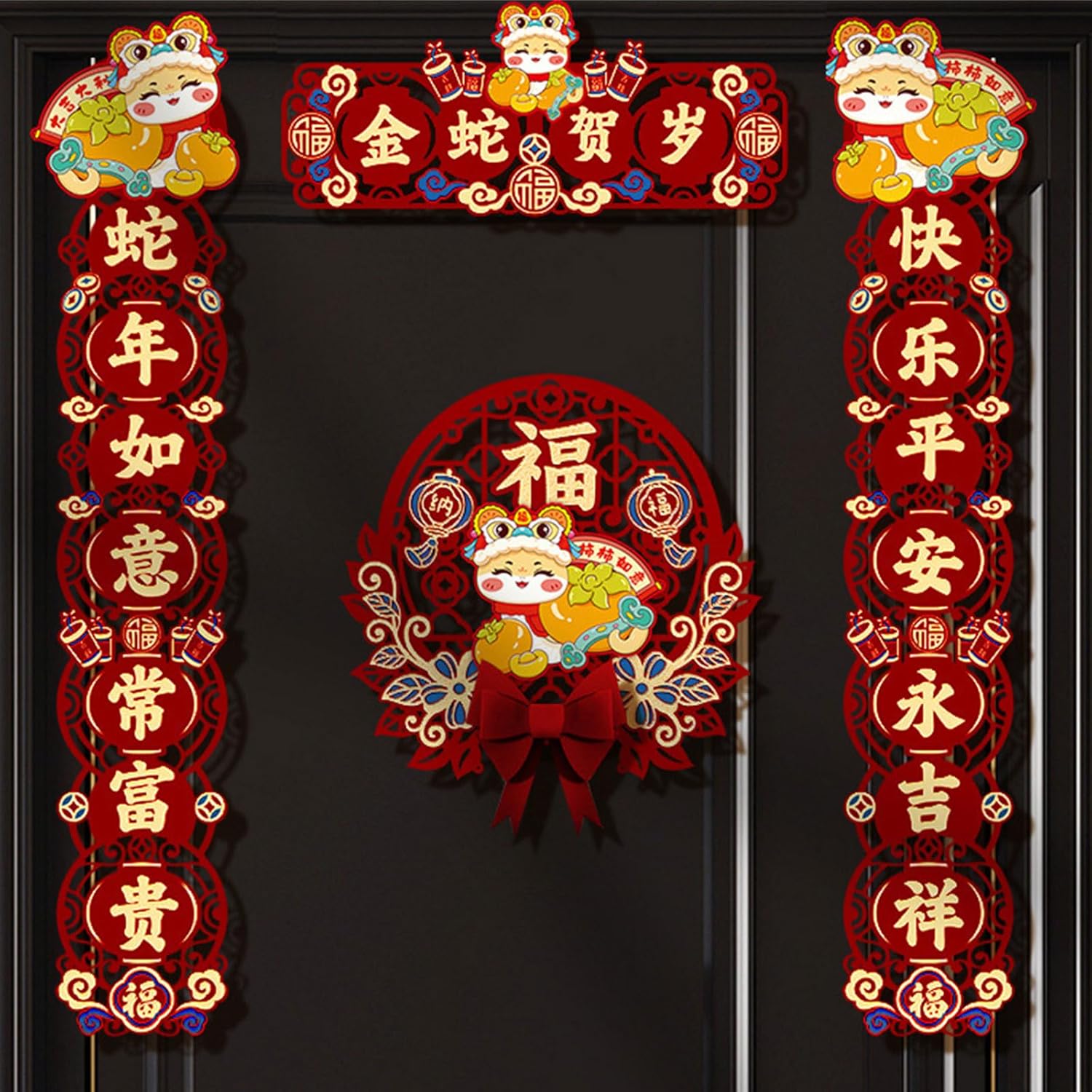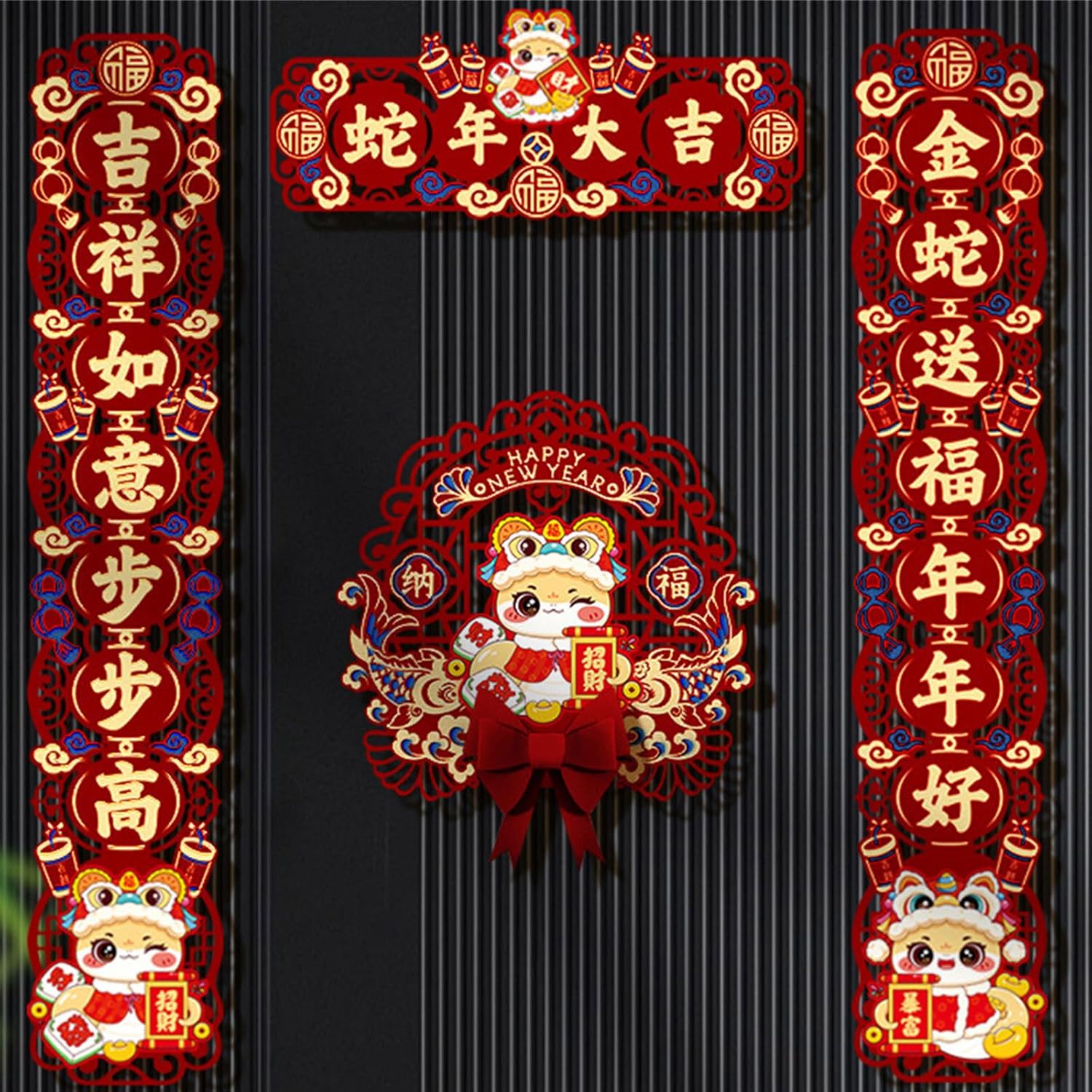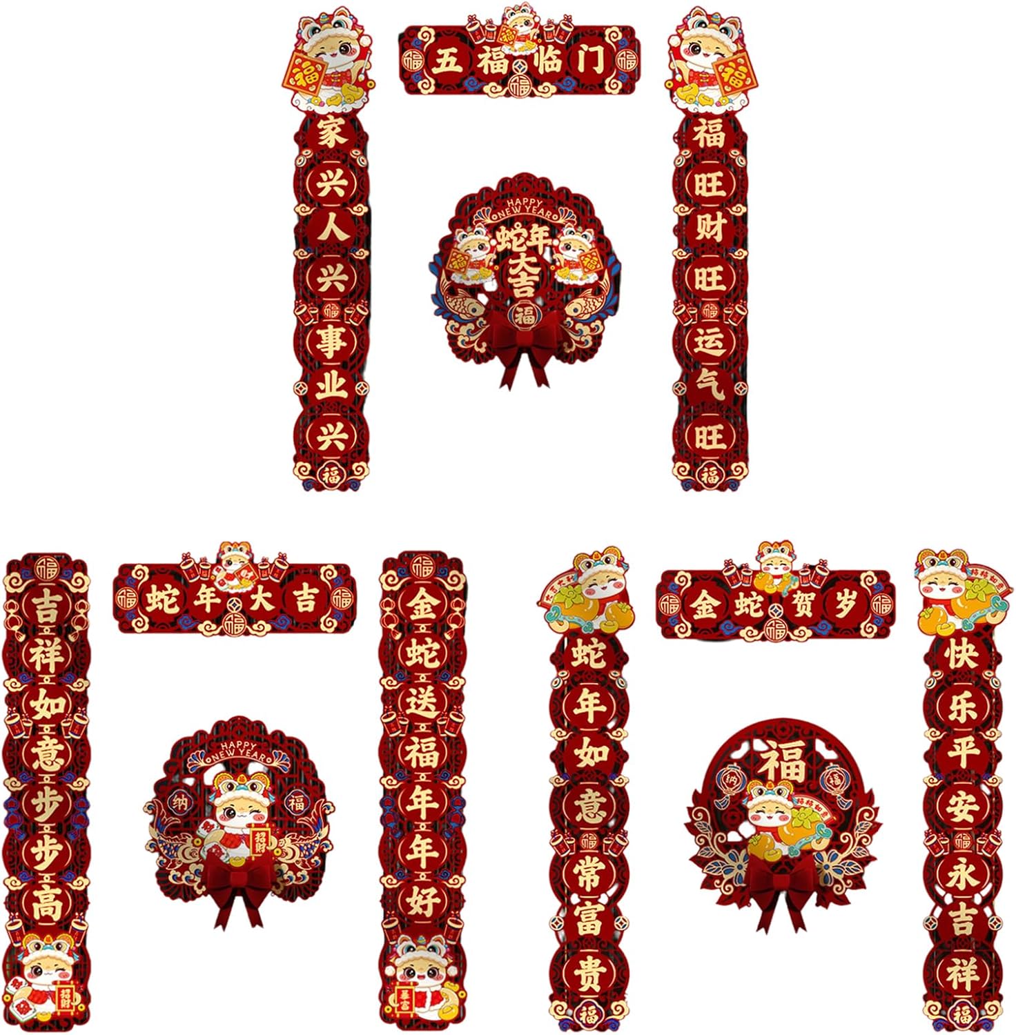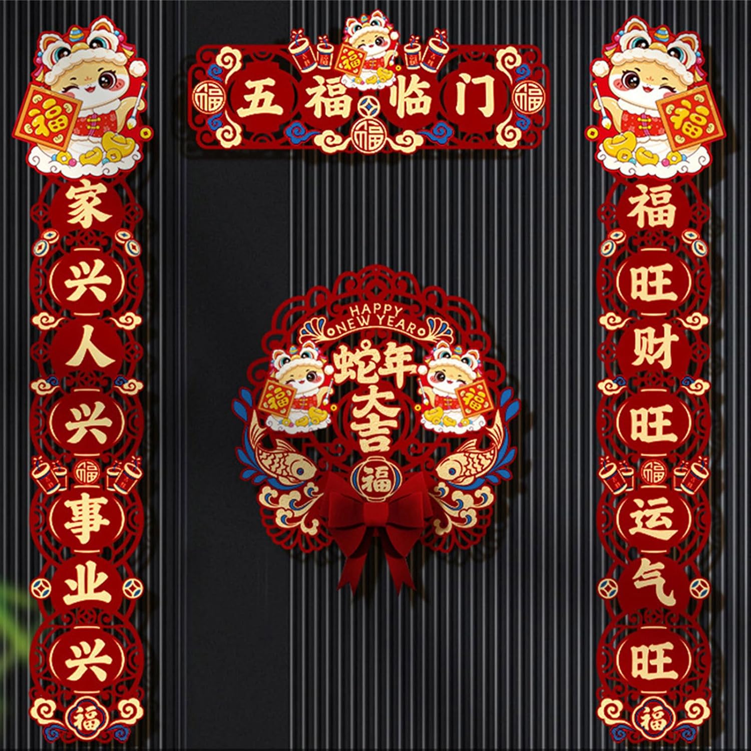 Questo set presenta distici dal design intricato su tessuto a scaglie e combina l'artigianato tradizionale con l'eleganza moderna per un tocco festoso. Migliora la decorazione del tuo festival con questo set unico ed è un ottimo regalo per amici e familiari e per le celebrazioni di Capodanno. Festeggia il Capodanno cinese 2025 con i nostri adesivi per porte e distici antitetici realizzati a mano con motivi di serpenti, progettati per portare allegria e felicità in casa. Adatto a chi apprezza la tradizione culturale e ama decorare il suo spazio con gioielli da festival. Perfetti da esporre in case, uffici o negozi e questi distici aggiungono un tocco di eleganza a qualsiasi ambiente