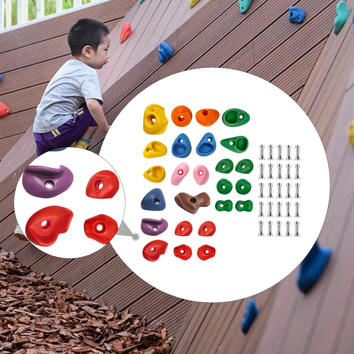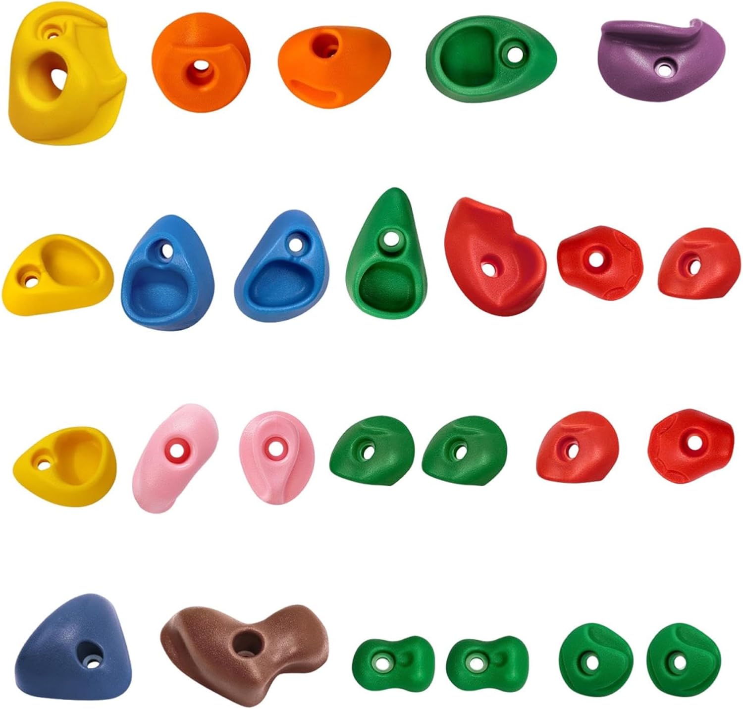 【Materiale】: Prese per arrampicata su roccia realizzate in polipropilene e acciaio al carbonio, questi blocchi da arrampicata non si crepano né sbiadiscono. Le impugnature testurizzate per piedi e mani facilitano la presa e l'arrampicata dei bambini. 【Installazione semplice】: per parete di roccia da arrampicata sono facili da installare, questi blocchi da arrampicata possono essere utilizzati nella stanza di un bambino o su una parete di roccia in un parco giochi all'aperto 【Forma】: Pietra per arrampicarsi. Disponibili in una varietà di forme carine, questi blocchi coinvolgeranno i bambini e li aiuteranno a sviluppare la . 【Funzione】: Set di impugnature per arrampicata disponibili in una varietà di colori vivaci, dimensioni e forme, questi blocchi incoraggiano i bambini ad arrampicarsi. Aiutano a migliorare la loro , equilibrio, agilità, flessibilità e ad aumentare la loro sicurezza. 【Robustezza】: per parete da arrampicata sono abbastanza robuste da sostenere sia i bambini piccoli che adulti. Goditi questa divertente attività con il tuo bambino.