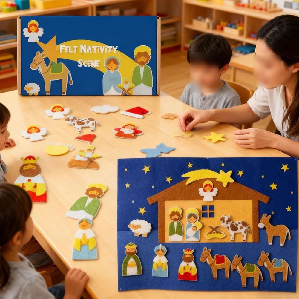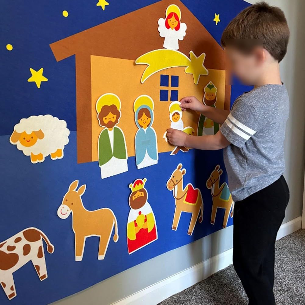 [ESPERIENZA INTERATTIVA DI VACANZA] Coinvolgi i tuoi bambini nella narrazione con il nostro presepe in feltro, consentendo loro di organizzare figure e creare memorabili incontri di festa. [Disordine] Immergiti nel gioco creativo senza sporcare! Le figure in feltro si attaccano facilmente allo sfondo stabile, fornendo ore di divertimento fantasioso senza preoccupazioni di pulizia. [Legame educativo della famiglia] Questo set di presepi è un eccellente strumento educativo per insegnare la storia di Natale, promuovere interazioni familiari significative e creare ricordi duraturi insieme. [Tradizione familiare senza tempo] Ogni anno, questo presepe diventerà una parte amata delle feste della tua famiglia, stabilendo una bella tradizione che porta gioia e nostalgia per gli anni a venire. [Sviluppo creativo] Mentre i bambini manipolano e organizzano le figure in feltro, migliorano la loro raffinatezza e creatività, rendendo questo set una preziosa aggiunta alle loro attività di sviluppo.