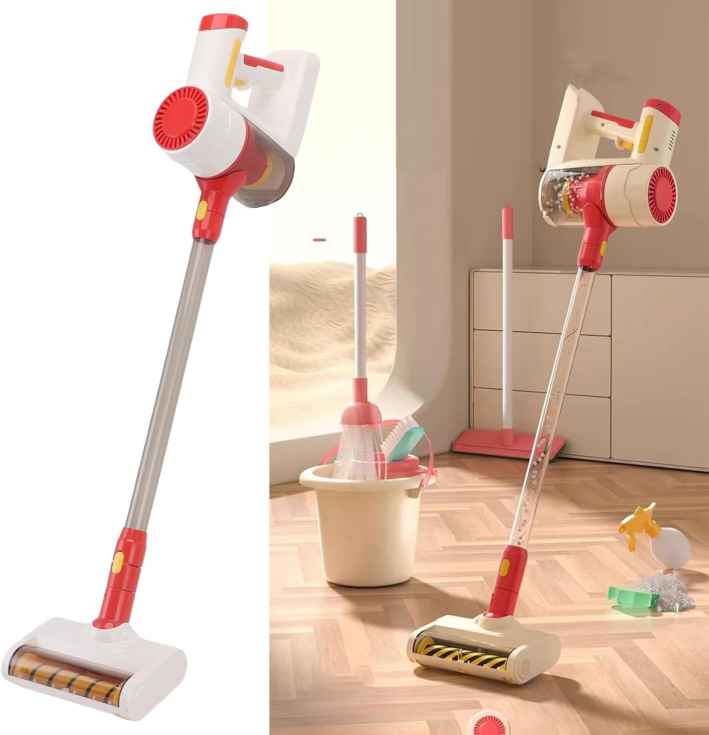 [Imita le faccende reali] sperimentano compiti familiari realistici con suoni di vuoto motorizzati, ispirando un gioco immaginativo per i bambini di età 3+. [Set di pulizia completa] include scopa regolabile, spugna spray e aspirapolvere elettrico per giochi di pulizia interattivi. [Design personalizzabile] L'altezza della maniglia regolabile (5,9 pollici) ospita piccole mani; Aperatura della batteria per facile utilizzo (batterie non incluse). [Sviluppo delle abilità sociali] incoraggia il lavoro di squadra in scenari di pulizia pretendente, promuovendo la responsabilità nei bambini. [Materiali per bambini: realizzati in plastica robusta e componenti elettronici testati per il gioco senza preoccupazioni, progettati per i bambini piccoli.