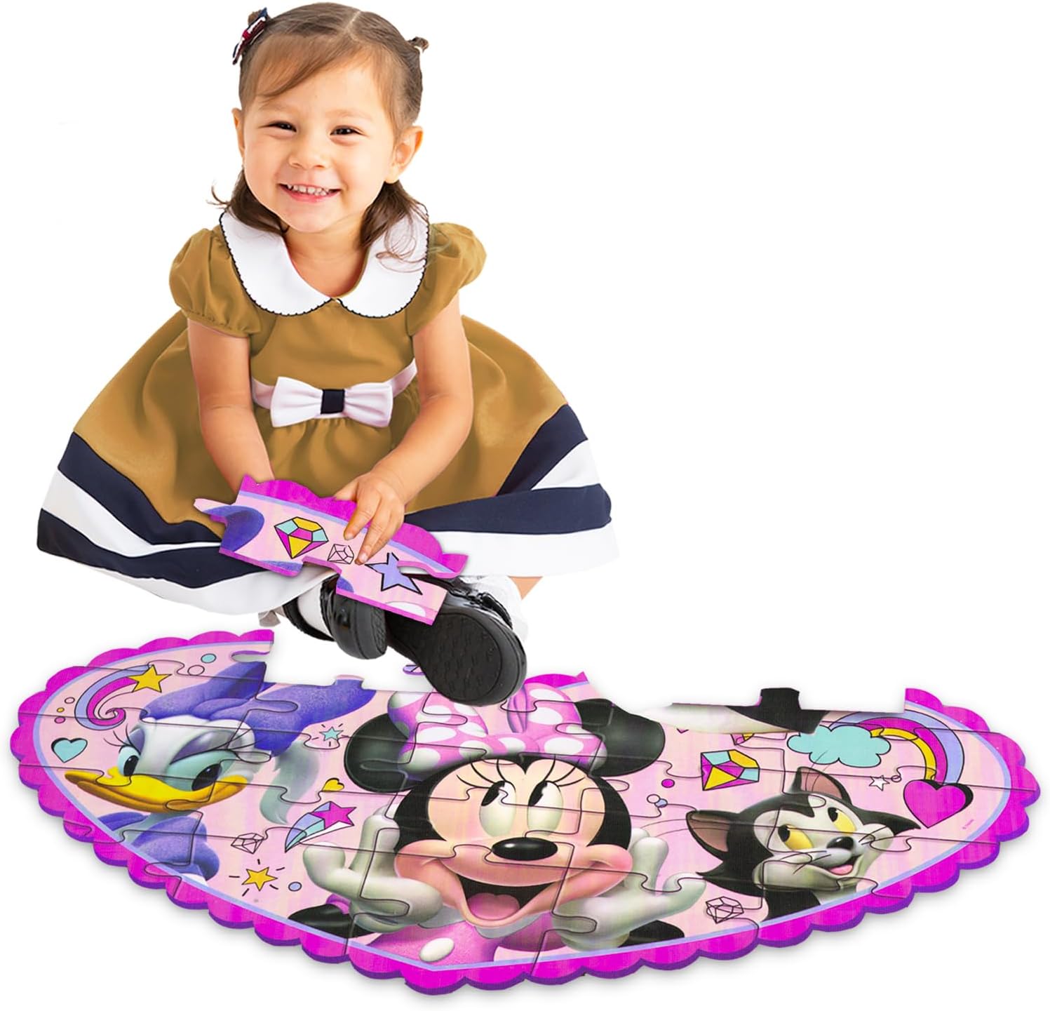 Set di puzzle da pavimento Minnie Mouse - Bundle con 25 pezzi Minnie Foam Floor Puzzle per bambini con adesivi Minnie, tatuaggi, altro | Puzzle Minnie Mouse per ragazze. Questo puzzle Minnie Mouse contiene 25 grandi pezzi di puzzle in schiuma. Il puzzle Minnie è progettato per essere costruito sul pavimento e servire come tappetino Minnie Mouse! Costruisci questo puzzle in schiuma Minnie Mouse direttamente sul pavimento con amici e familiari, o portalo a una festa a tema Minnie Mouse per condividere il divertimento. Il puzzle completato misura 33 x 61 cm. I puzzle Minnie Mouse sono ideali per ragazzi e ragazze e possono adattarsi accanto a qualsiasi altra decorazione della stanza di Minnie. Il pacchetto puzzle Minnie Mouse con licenza ufficiale viene fornito con tatuaggi Minnie Mouse, adesivi Minnie Mouse e un gancio per porta castello Beach Kids.