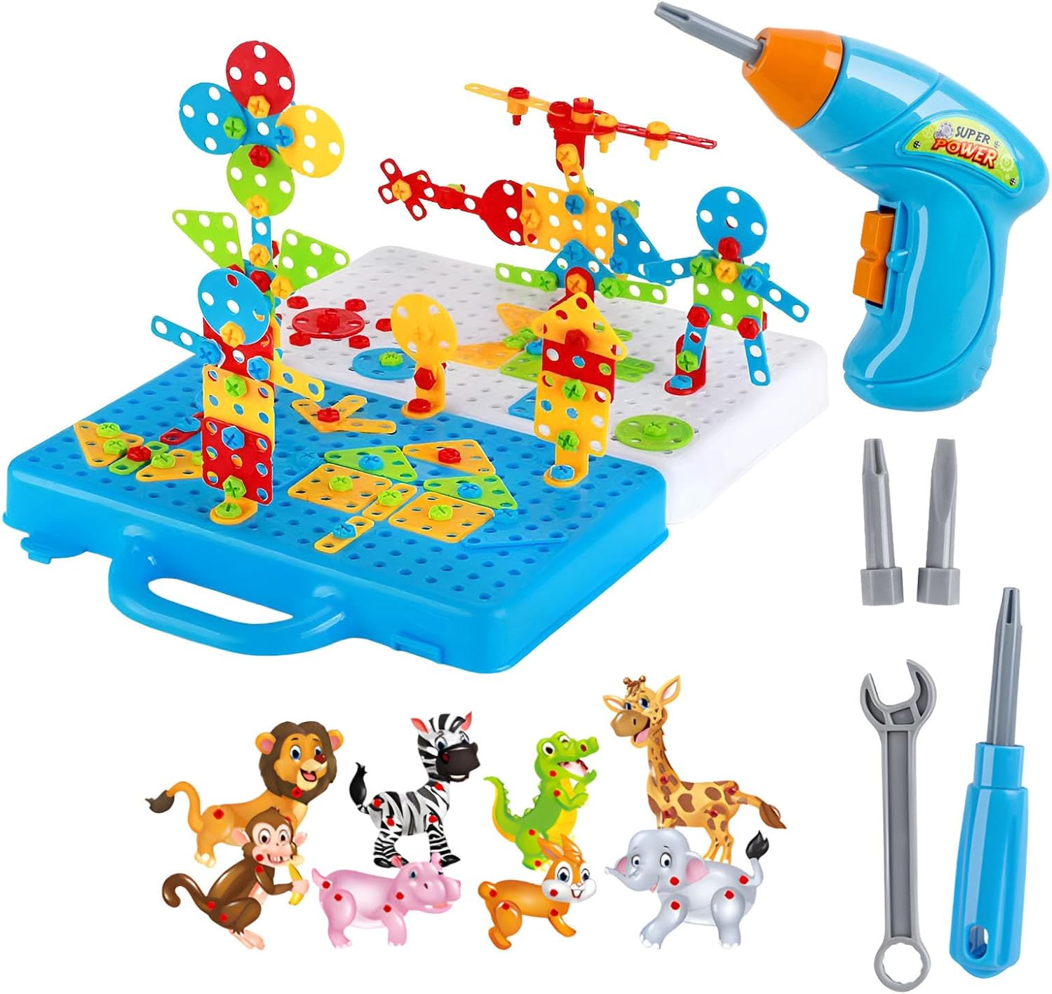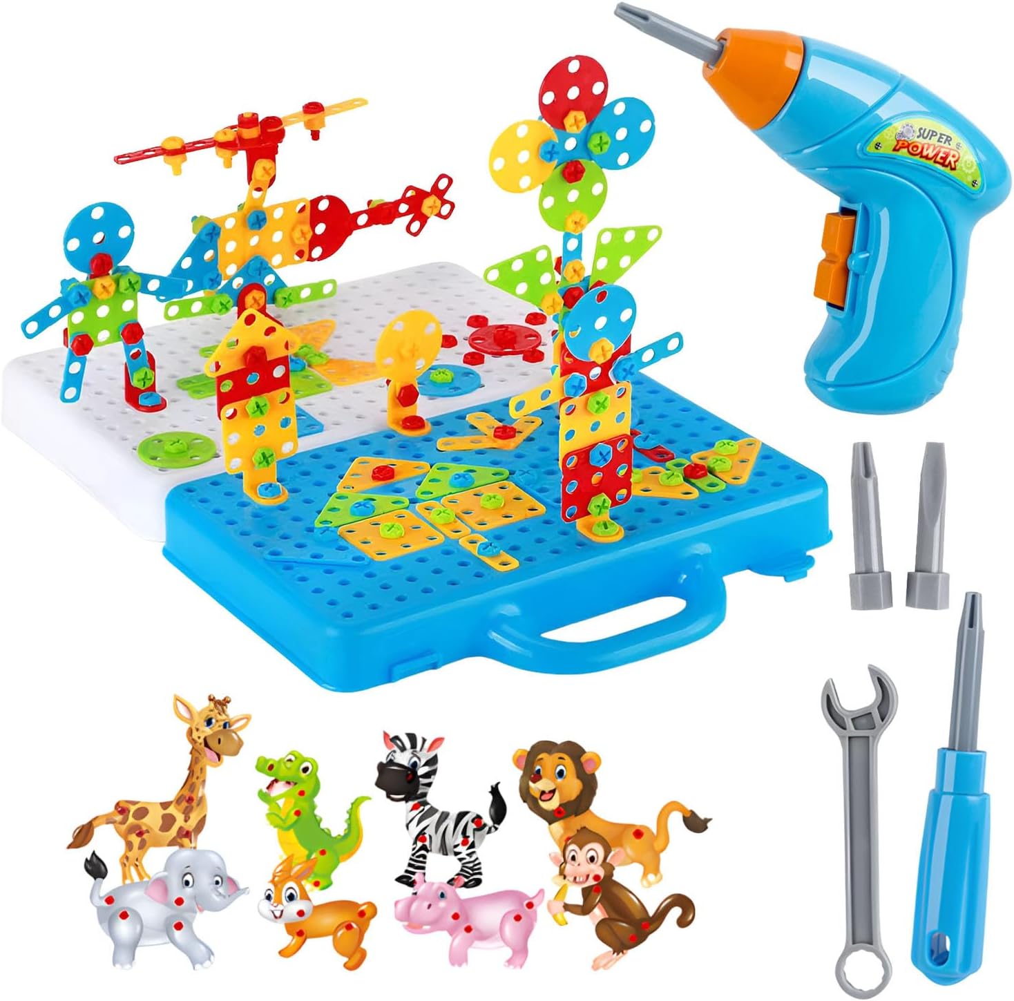 Sviluppo delle capacità motorie del bambino: con il nostro set di puzzle per trapano elettrico progettato per perfezionare le capacità motorie, i giovani possono creare strutture semplici e complesse, migliorando al contempo la coordinazione occhio-mano e i movimenti della mano fin dall'inizio. Migliore concentrazione: incoraggia lo sviluppo cognitivo e migliora la resistenza con il puzzle game trapano elettrico, creando una solida base per l'educazione precoce. Aiuta a migliorare le capacità di osservazione di. Goditi ore di gioco: crea modelli divertenti e creativi utilizzando viti in ABS e piastre a mosaico che possono essere facilmente fissate nei fori della scatola utilizzando un trapano e un cacciavite. Goditi ore di gioco con questo set di puzzle unico. Costruzione robusta: grazie al suo eccellente materiale ABS sicuro, questo set di puzzle con trapano elettrico può sopportare un uso intensivo e non è facile da rompere, promettendo un divertimento a lungo termine. Regalo perfetto: libera la tua creatività con il nostro set di puzzle per trapano elettrico; perfetto per Natale, Halloween, Ringraziamento, compleanni e altro ancora, è il regalo perfetto per ispirare amici e amici.