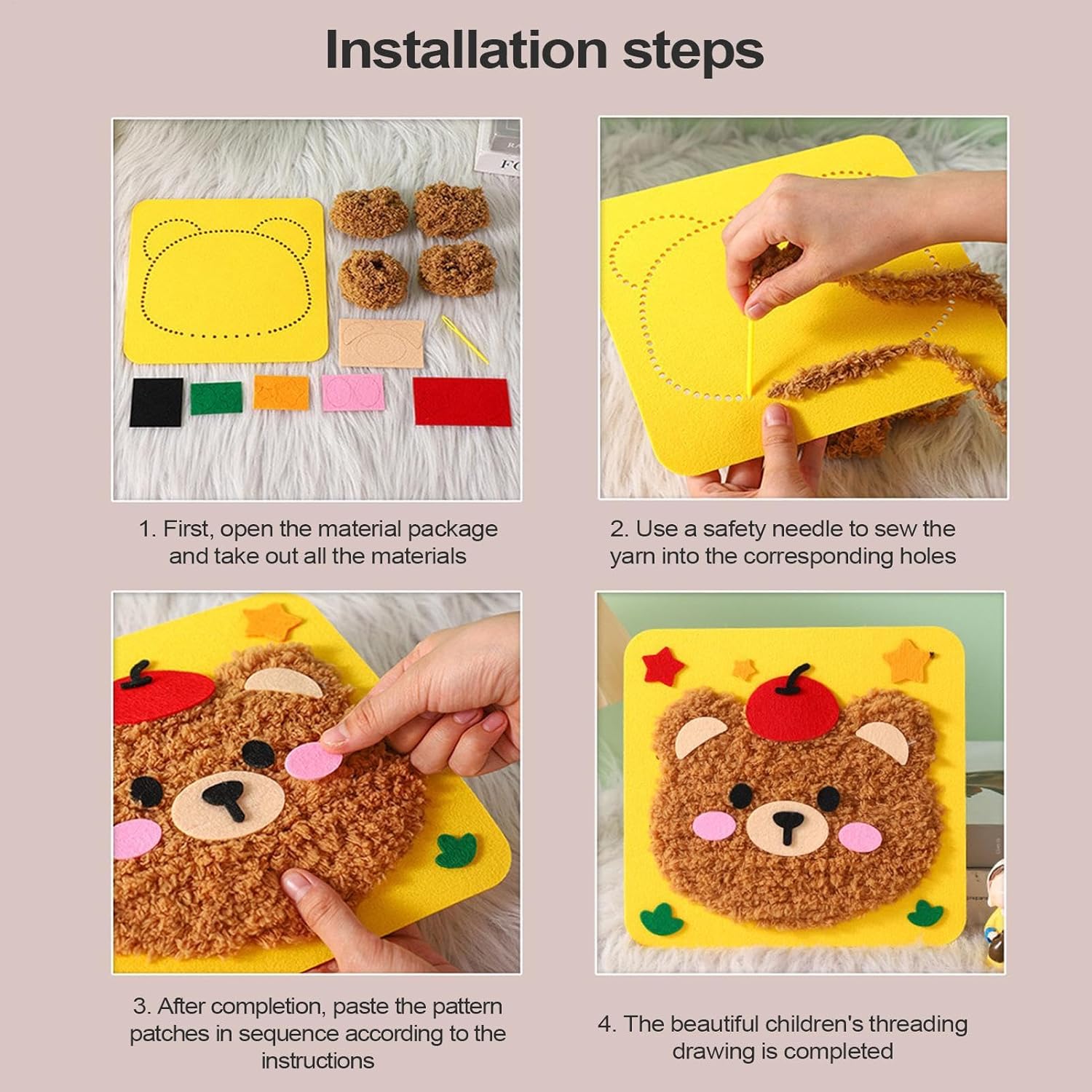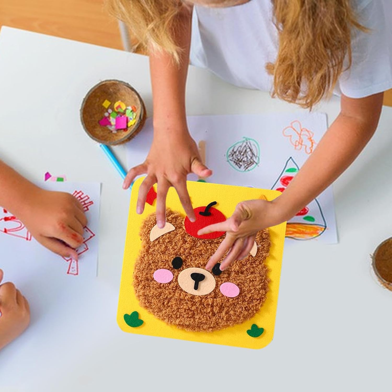 Migliora la creatività: con tutti i componenti con tecnologia autoadesiva, i bambini possono creare senza sforzo semplicemente strappando e incollando. Non c'è bisogno di forbici o strumenti: essere facilmente coinvolto in attività di creazione con la comodità di materiali di fustea rapidi e ordinati Migliora la creatività: ispira artisti in con istruzioni facili da seguire e fili vibranti, incoraggiando l'esplorazione e l'espressione di sé in ogni progetto di ricamo Migliora le capacità creative: infusi il tuo spazio con atmosfere giocose attraverso sei affascinanti disegni di animali, offrendo un tocco fantasioso e vivace per illuminare qualsiasi stanza Foster Connection: incoraggia la creazione collaborativa, promuovendo legami più forti impegnandosi nella creatività pratica insieme, migliorando la comunicazione e le connessioni emotive tra genitori e bambini mentre sviluppano concentrazione e pazienza Promuove il benessere: con tessuto non tessuto, lana e PP, questo set di ricami incoraggia un ambiente sano e sicuro, promuovendo la crescita educativa e la creatività tra i bambini
