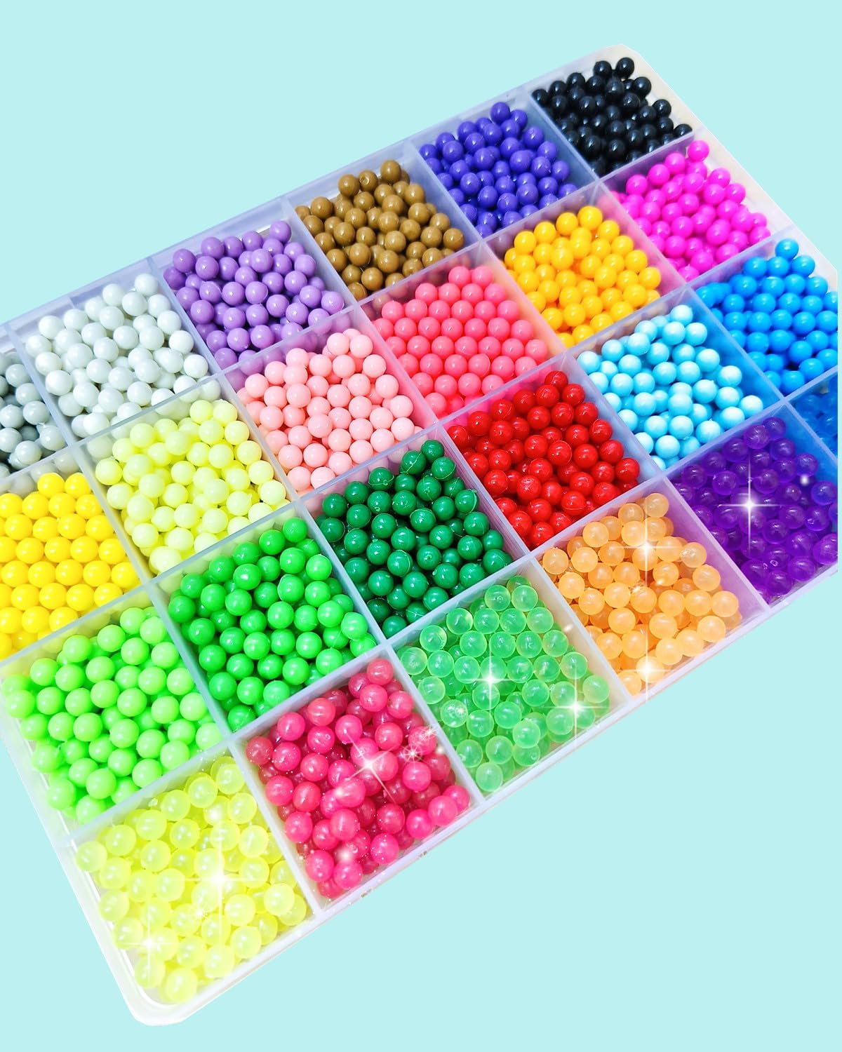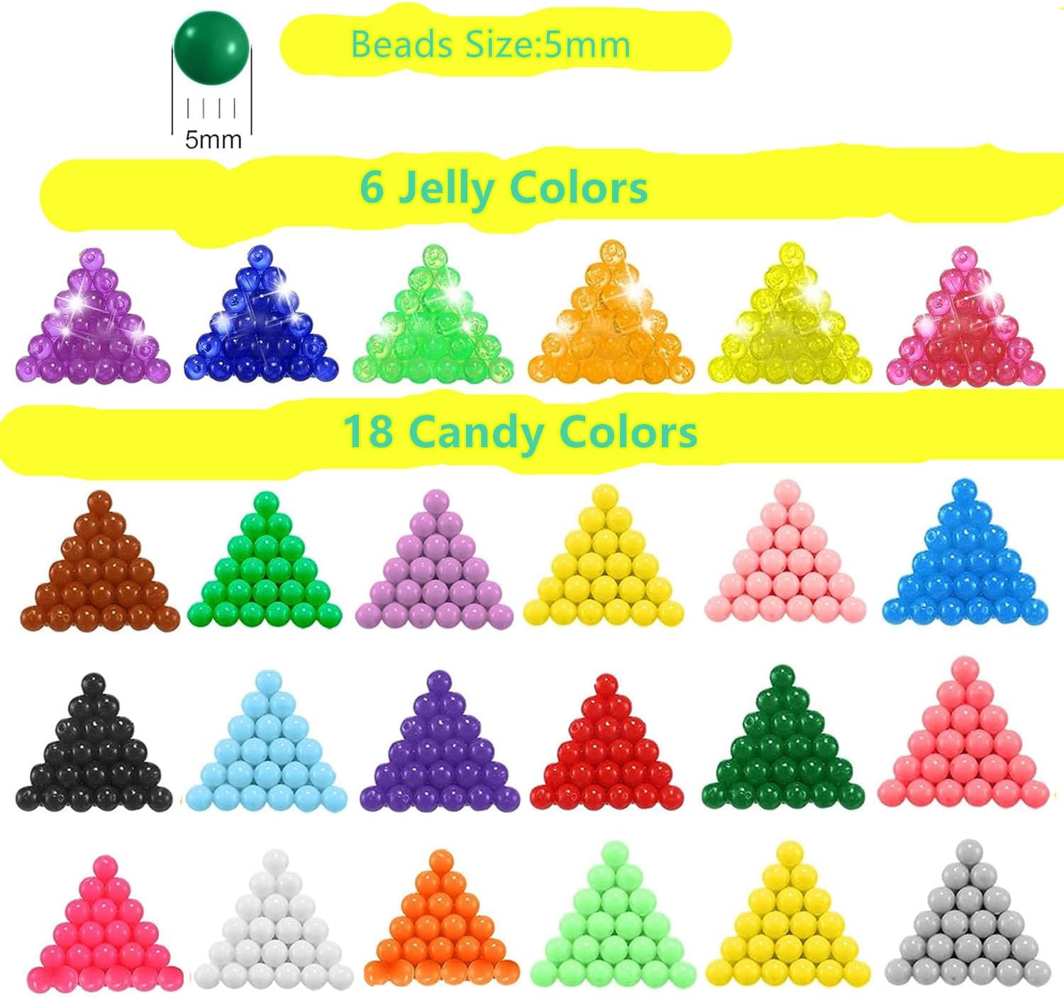 【Squisito e di alta qualità】 Questo set contiene 3600 perline in 24 colori vivaci, divisi in 24 scomparti di una griglia trasparente. Può incoraggiare la capacità dei bambini di riconoscere i colori. Abbiamo selezionato con cura perle del diametro di 5 mm, uniformi e arrotondate, perfette per le mani dei più piccoli. Nota: solo ricarica. Altri accessori non inclusi! Kit artigianale per bambini: queste fantastiche perline sostitutive sono una confezione complementare di 3600 perline in 24 colori. Il set di perline per bambini è di 5 mm, rotondo e liscio, adatto alla presa, compatibile con l'originale. 【Sicuro e rispettoso dell'ambiente】 Basta posizionarli nella forma, spruzzarli con acqua e lasciarli asciugare, senza bisogno di colla. Il nostro set di perle d'acqua di alta qualità è realizzato in materiale PVA atossico, appositamente trattato con agente amaricante per prevenire l'ingestione accidentale da parte dei bambini. Divertiti a creare e gioca in tutta tranquillità! 【Regalo perfetto per i bambini】 Adatto a partire dai 4 anni, regalo di Natale e compleanno ideale per ragazzi e ragazze. I bambini potranno divertirsi per ore con questo set artigianale fai-da-te. A casa, all'asilo, a scuola, al campo estivo o in altre occasioni festive, questo set promuove le connessioni e l'amicizia. Perle d'acqua per bambini: un must per tutti gli appassionati di perline e artigianato, per bambini dai quattro anni, il giocattolo perfetto per bambini creativi che amano il fai da te, l'espressione personale, i set artigianali, i giocattoli da costruzione, ecc., la creatività e l'immaginazione.