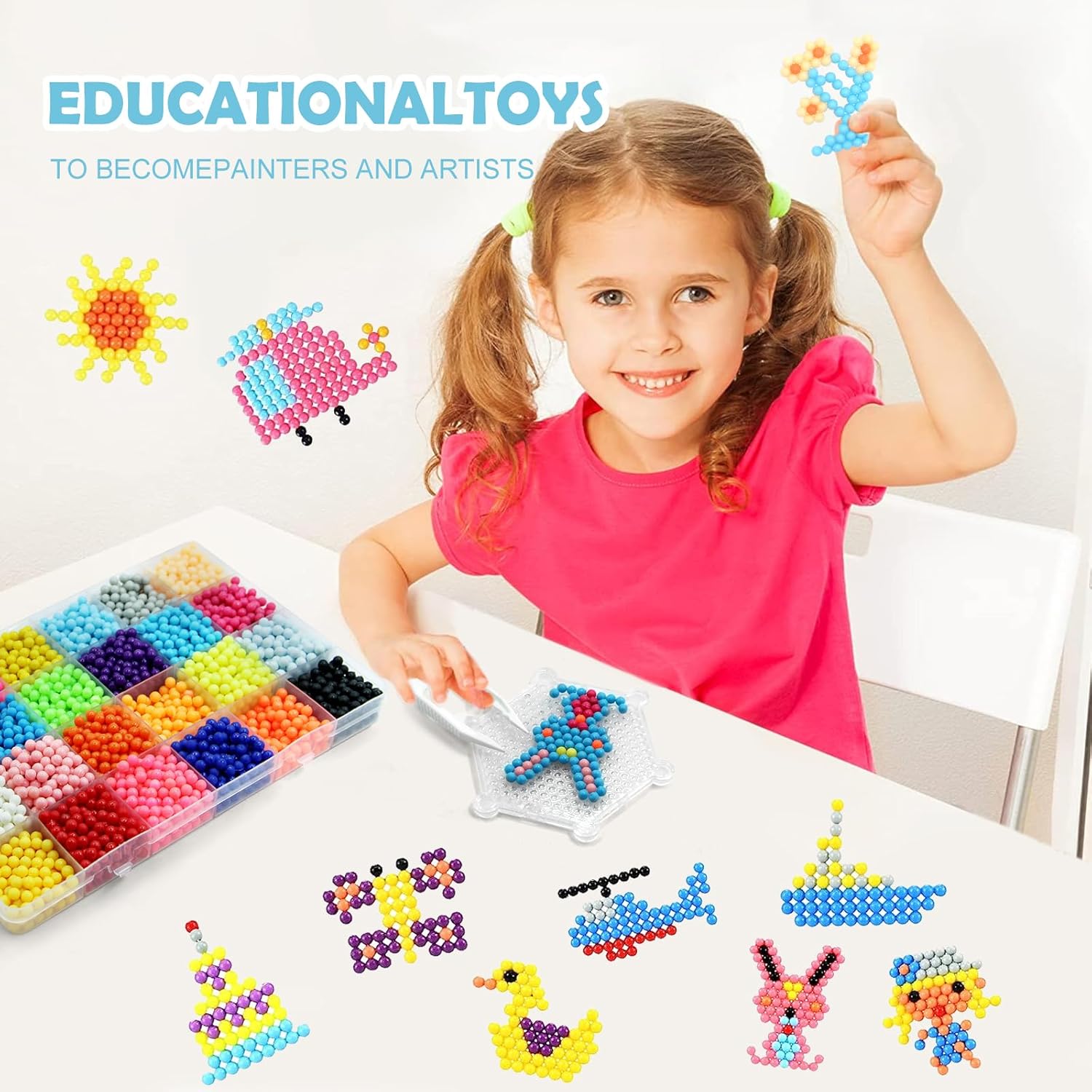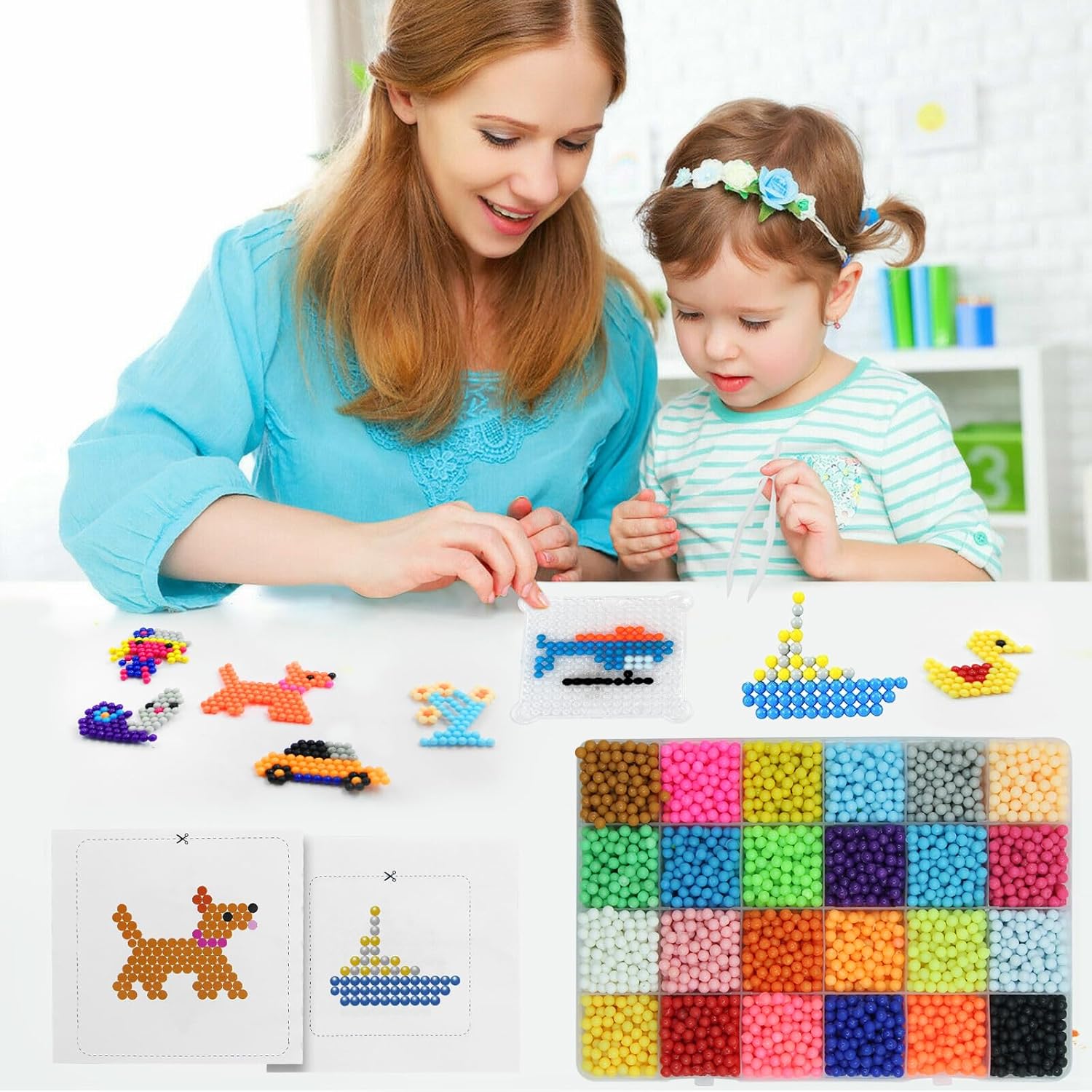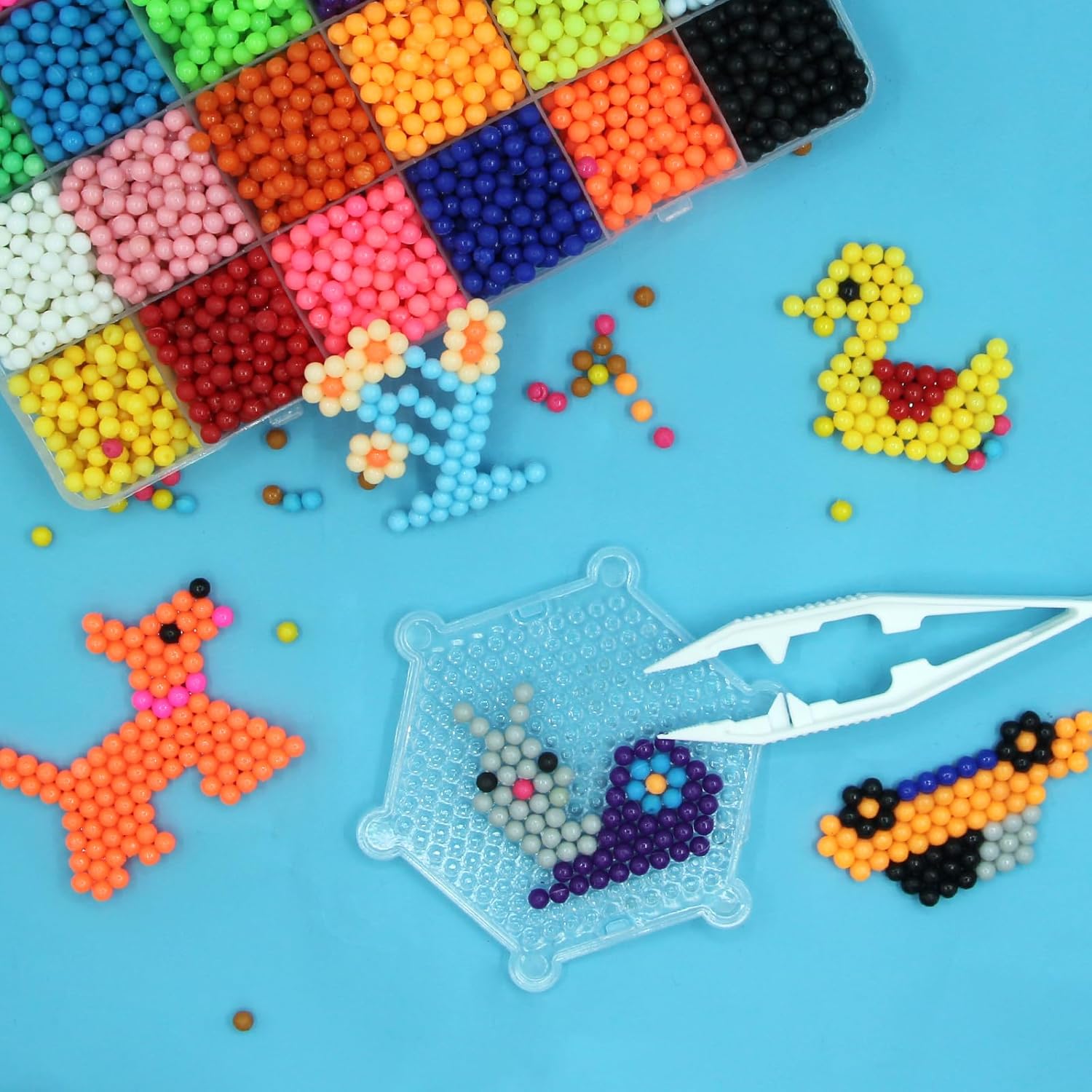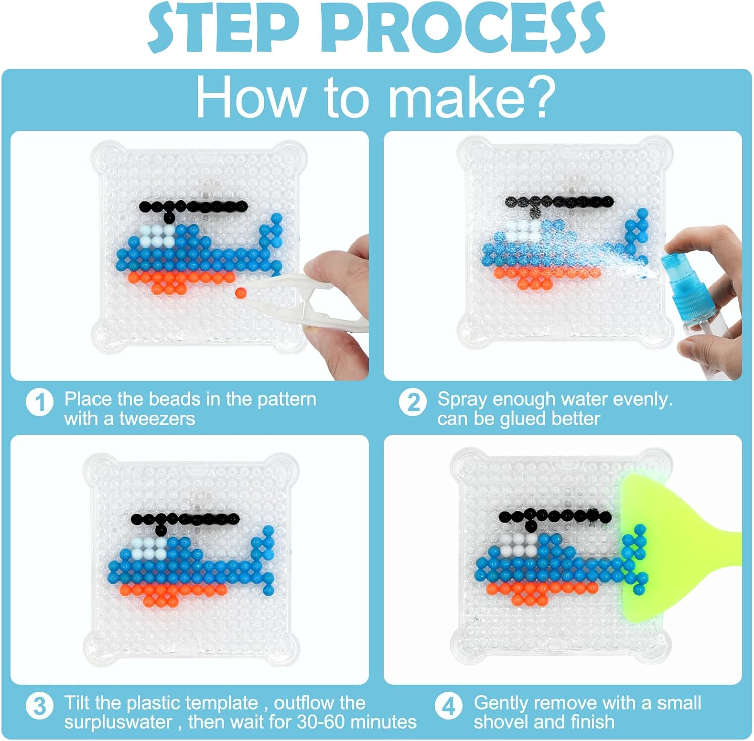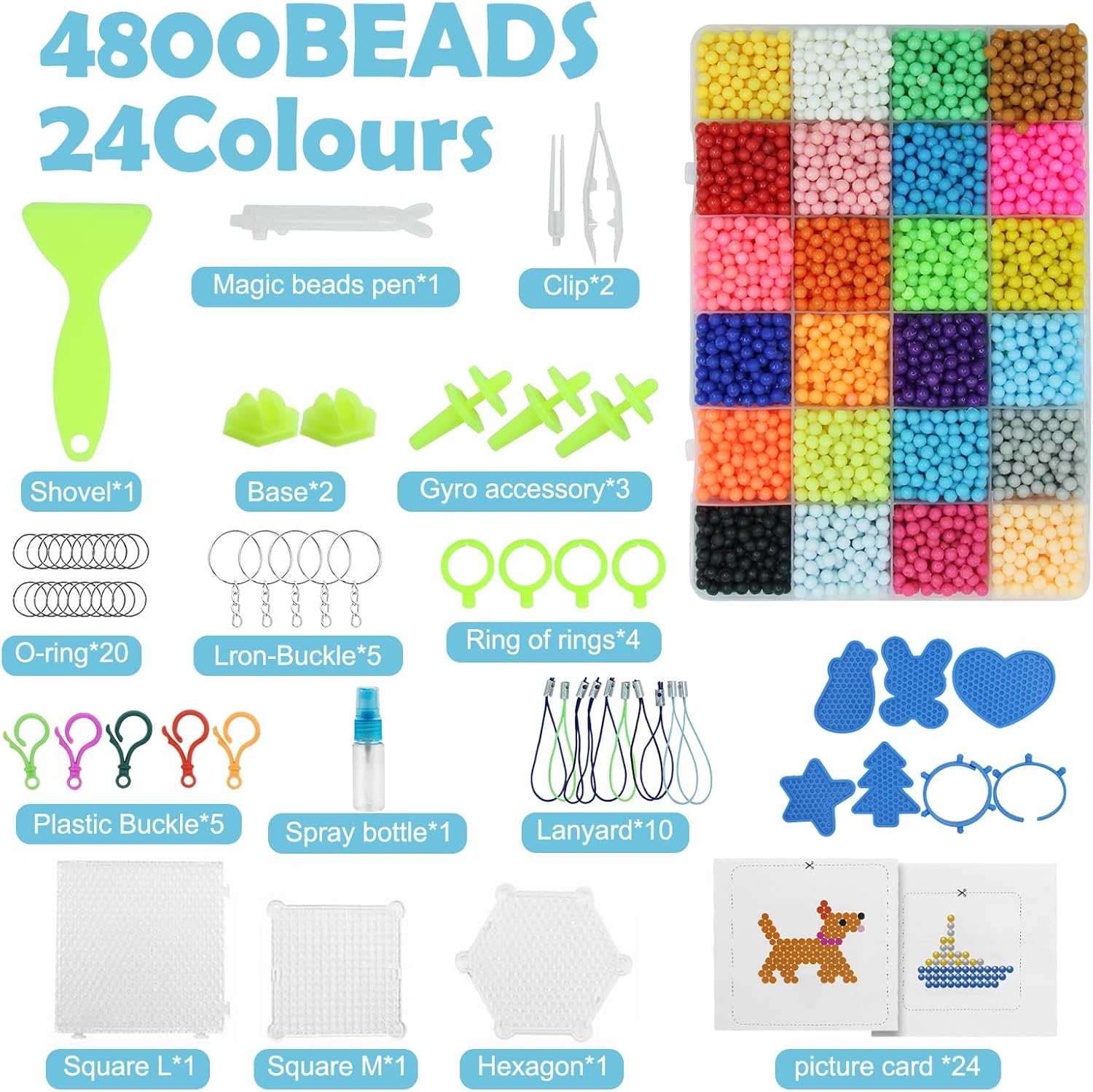 【🎨 Squisito e di alta qualità】 Questo set contiene 4800 perline in 24 colori vivaci, divisi in 24 scomparti di una griglia trasparente. Può incoraggiare la capacità dei bambini di riconoscere i colori. Abbiamo selezionato con cura perle dal diametro di 4,5 mm, uniformi e arrotondate, perfette per le mani dei più piccoli. 【🌱Sicuro ed ecologico】Basta posizionarli nella forma, spruzzarli con acqua e lasciarli asciugare, senza bisogno di colla. Il nostro set di perle d'acqua di alta qualità è realizzato in materiale PVA atossico, appositamente trattato con agente amaricante per prevenire l'ingestione accidentale da parte dei bambini. Divertiti a creare e gioca in tutta tranquillità! 【🌟Stimola la creatività】 Il nostro set viene fornito con carte, i bambini devono solo posizionare il motivo sotto il tabellone e riempire le perline una per una nella griglia di colori corrispondente. Usa la penna magica inclusa nel set per organizzare facilmente i disegni desiderati sul vassoio artigianale. Oltre alle forme piatte, puoi creare anche forme tridimensionali, che incoraggiano la creatività tattile dei bambini. 【🎁 Regalo perfetto per i bambini】 Adatto a partire dai 4 anni, regalo di Natale e compleanno ideale per ragazzi e ragazze. I bambini potranno divertirsi per ore con questo set artigianale fai-da-te. A casa, all'asilo, a scuola, al campo estivo o in altre occasioni festive, questo set promuove le connessioni e l'amicizia. 【🌈 Set Perfetto】 Questo prodotto offre un set perfetto di 4800 perle d'acqua magiche in 24 colori, oltre a modelli di diverse dimensioni, schede di istruzioni per modelli, penne per perle d'acqua, flaconi spray, fermagli per perle d'acqua, spatola, portachiavi, anelli, portachiavi e molti altri accessori in modo da poter liberare la tua creatività.