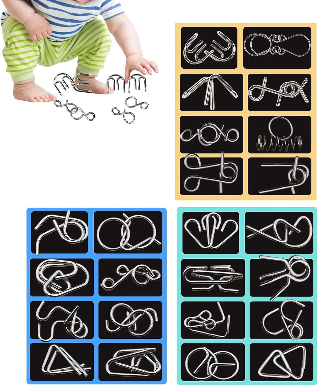Allenatore Ragionamento Logico: Progettati per affinare l'agilità mentale, contengono componenti da smontare e ricostruire che acuiscono le abilità logiche, fornendo un passacoinvolgente per appassionati di rompicapo di tutte le età Divertimento Puzzle per Famiglie: Il set offre 24 design creativi che permettono di progredire da sfide semplici a complesse, stimolando di esplorazione e fornendo intrattenimento familiare mentre favorisce le capacità di problem-solving durante riunioni o libero Rilassamento Attraverso il Gioco: I rompicapo metallici sono progettati per adattarsi a diverse dimensioni delle mani migliorando usabilità e divertimento come attività rilassante che aiuta ad alleviare lo stress ideali per momenti di genitore figlio a casa o in viaggio Regalo Significativo: Questi rompicapi in metallo educano e divertono, rendendoli regali preziosi per bambini. Perfetti per compleanni, feste o Natale, dimostrano cura e supportano lo sviluppo mentale attraverso il gioco. Costruzione Affidabile: Progettato in acciaio al carbonio ad alta densità, questo puzzle in filo metallico supporta utilizzi ripetuti e piegature mantenendo la forma originale. I bordi levigati aggiungono sicurezza e comfort, adatto per aule, feste o sfide personali in qualsiasi momento.