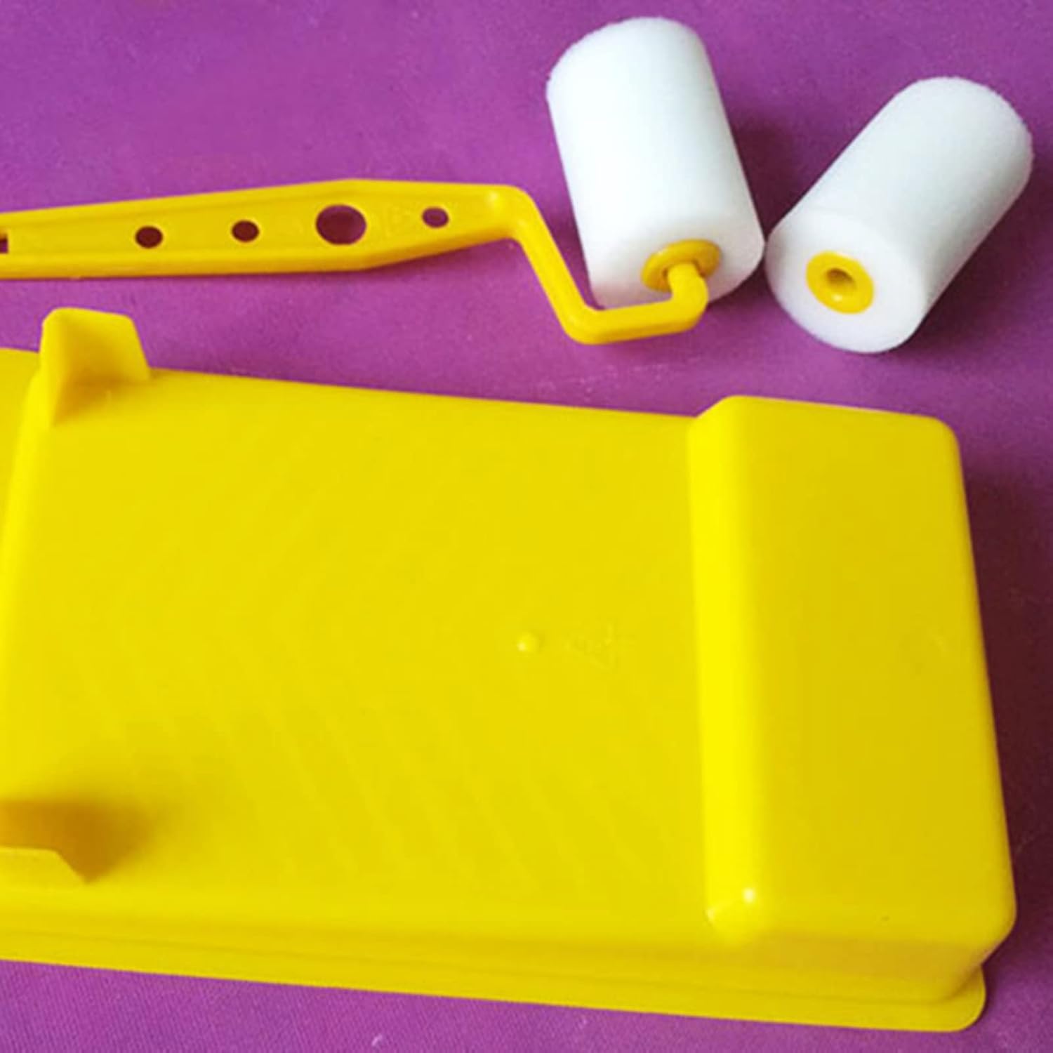 Per quei segni, graffi e scheggiature su superfici e piccoli progetti. Il telaio del rullo è realizzato con una struttura in metallo con una maniglia, il vassoio di vernice è realizzato in materiale duro che non sarà facilmente. Il rullo è privo di lanugine e fornisce una finitura liscia e senza cuciture. Copertura del rullo in lana a risparmio di vernice e copertura del rullo in tessuto ad alta densità utilizzando il processo di fusione a caldo, resistente alla vernice più sottile e a base di solvente. Questo set di rulli per vernice è adatto a qualsiasi piccolo lavoro di pittura. Ideale per dipingere superfici lisce come porte, finiture e armadi.