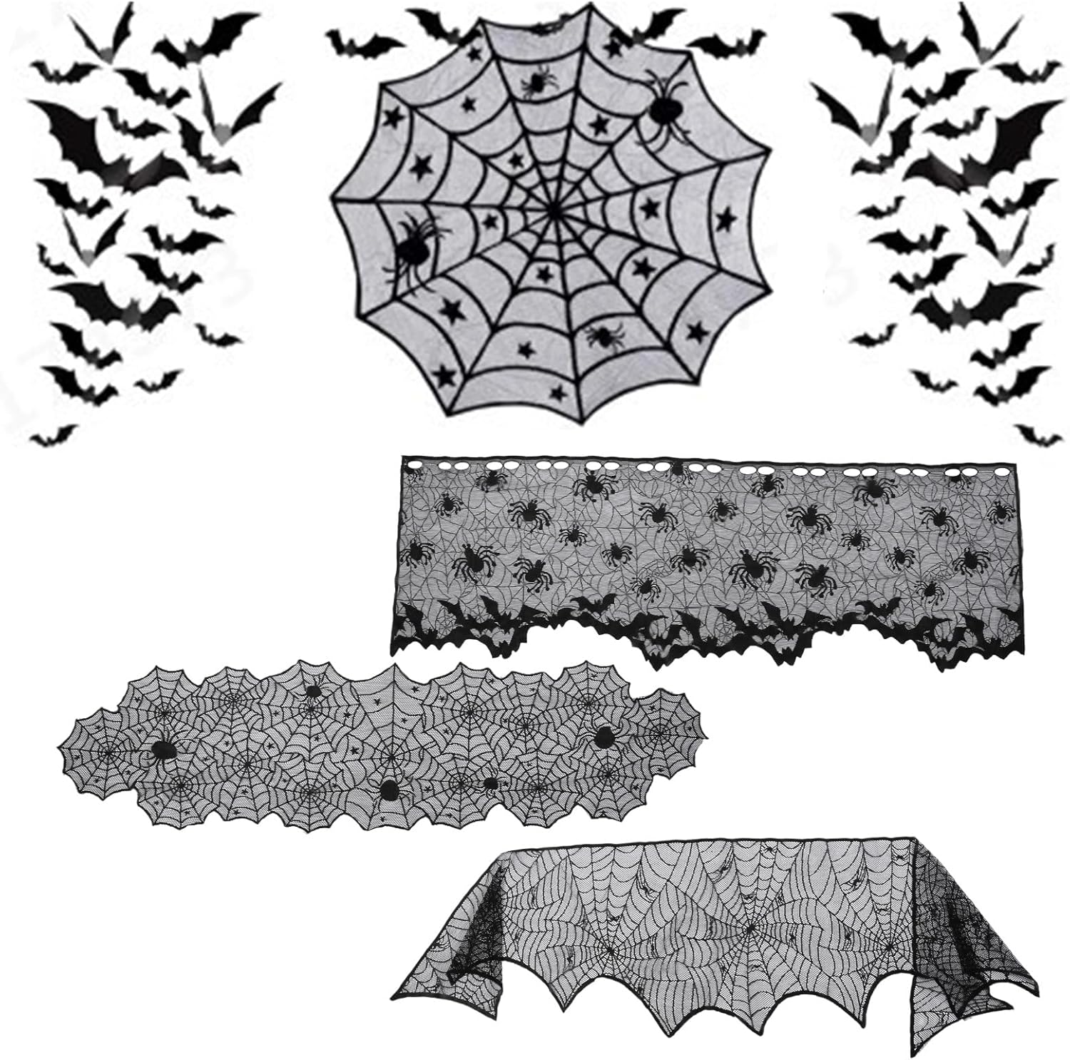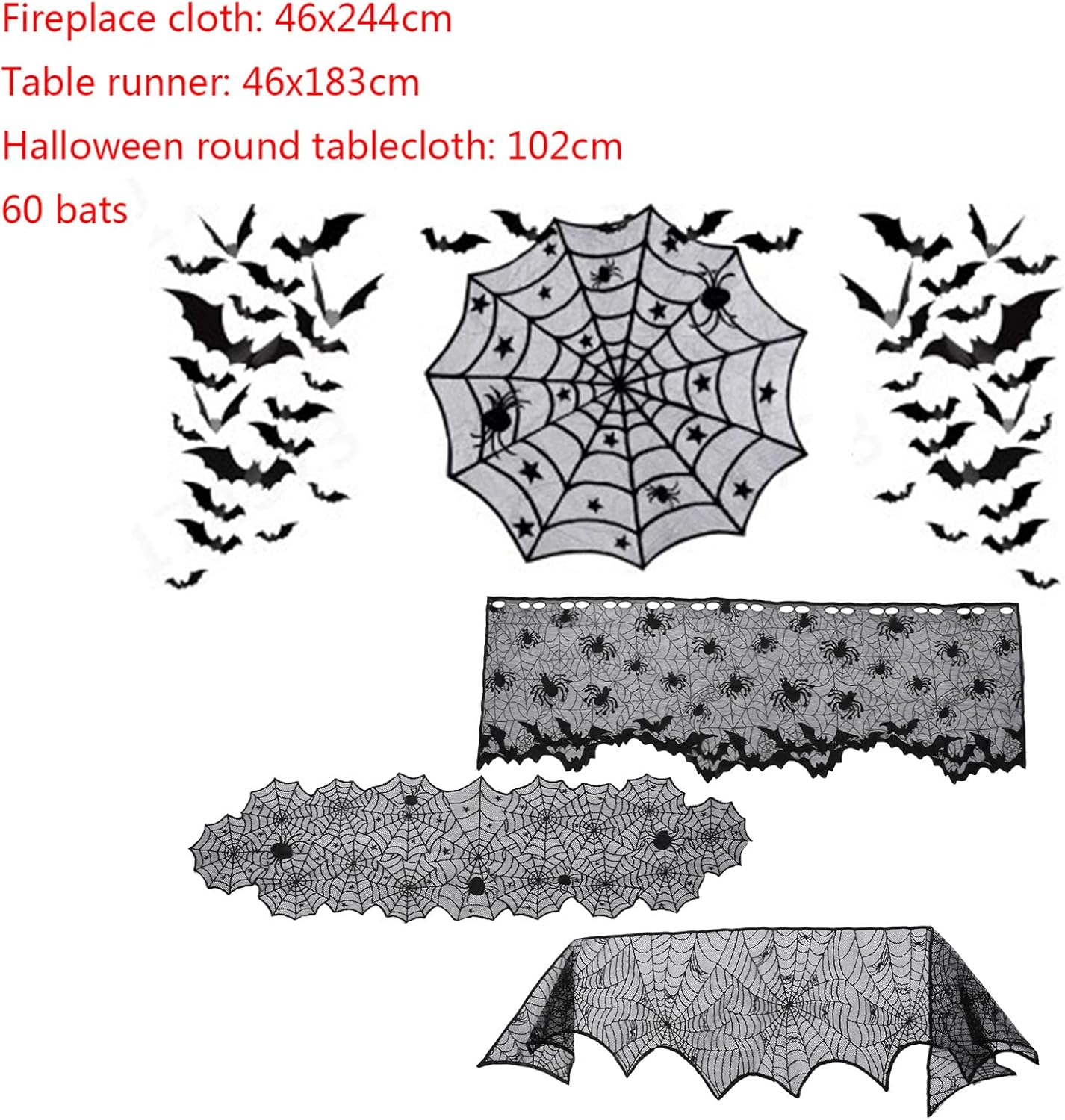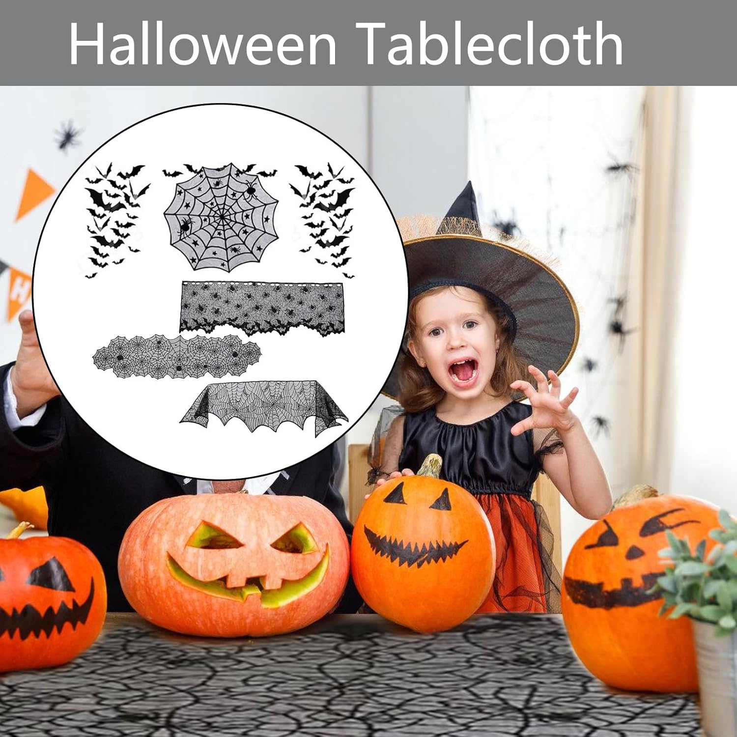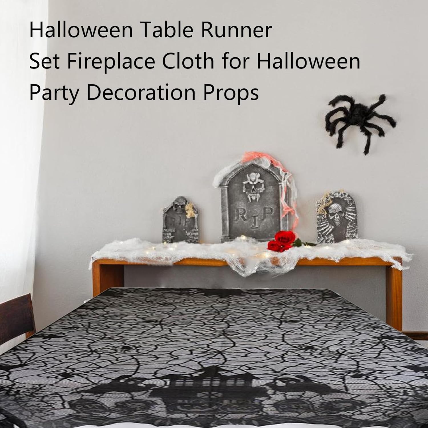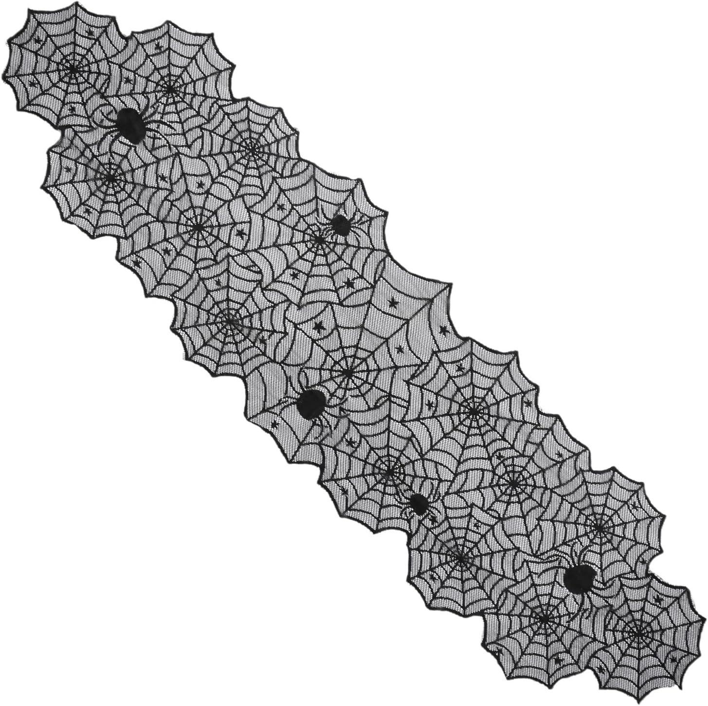 Tessuto in poliestere. Lavabile in lavatrice, ciclo delicato. Basso ferro, Vermn Necessario Decorazione per Halloween: aumenta l'umore spaventoso delle vacanze a casa, lasciando caramelle di Halloween in runner da tavola ignorante, risveglio e deliziando dolci ✿ Crea atmosfera: con questo set di tovaglie spinner crea un'atmosfera perfetta per Halloween o feste in costume ✿ Accessorio elegante: spaventoso pizzo nero elegante accessorio decorativo Adatto per: feste di Halloween, tavoli da pranzo, decorazione di cuori, decorazioni per hotel e così via