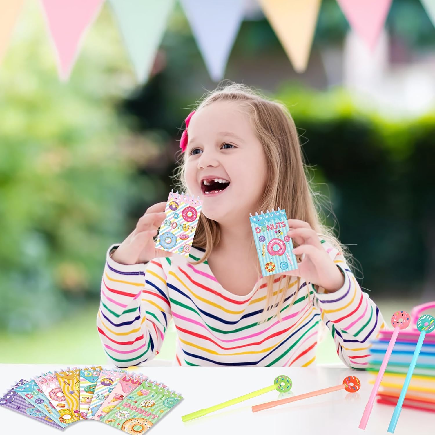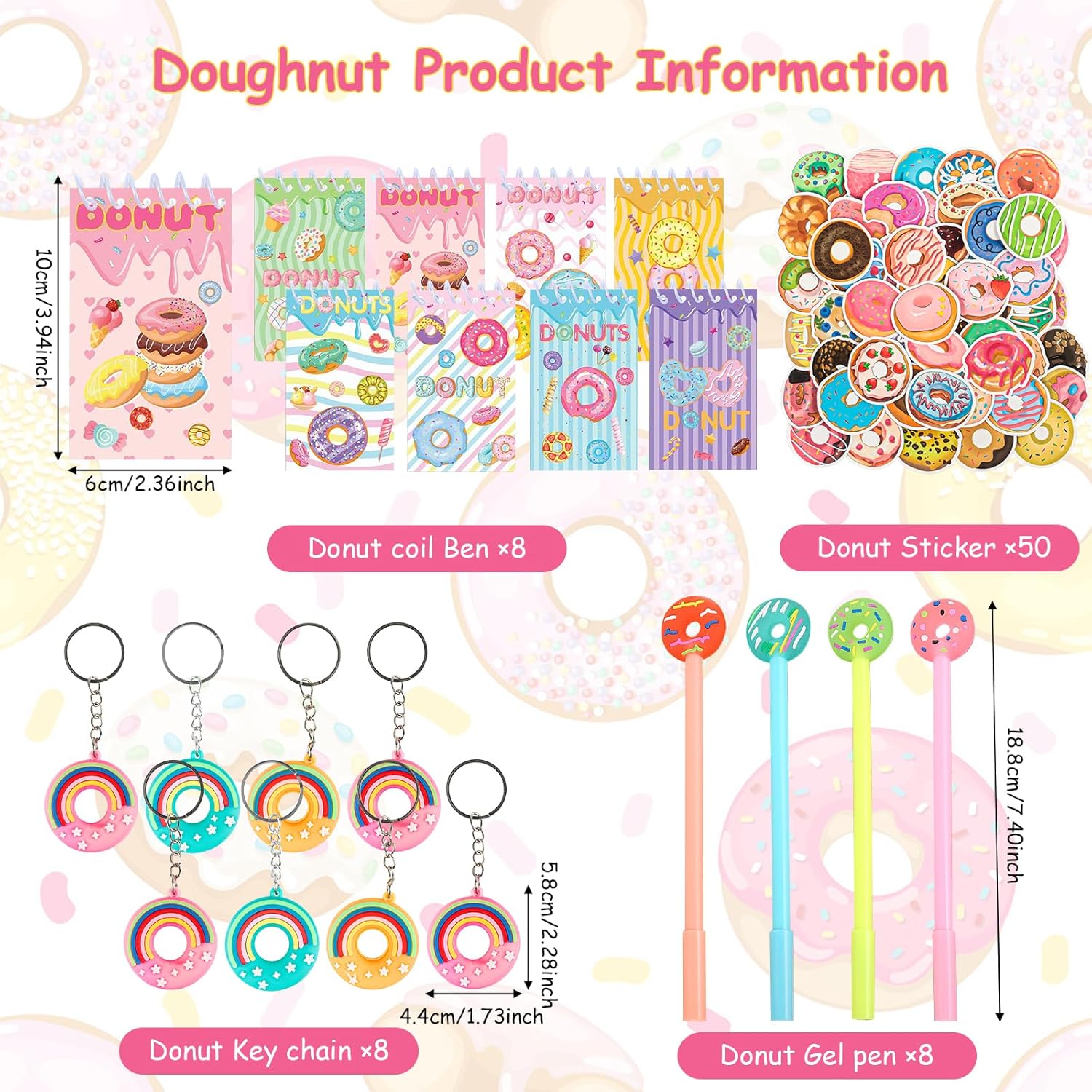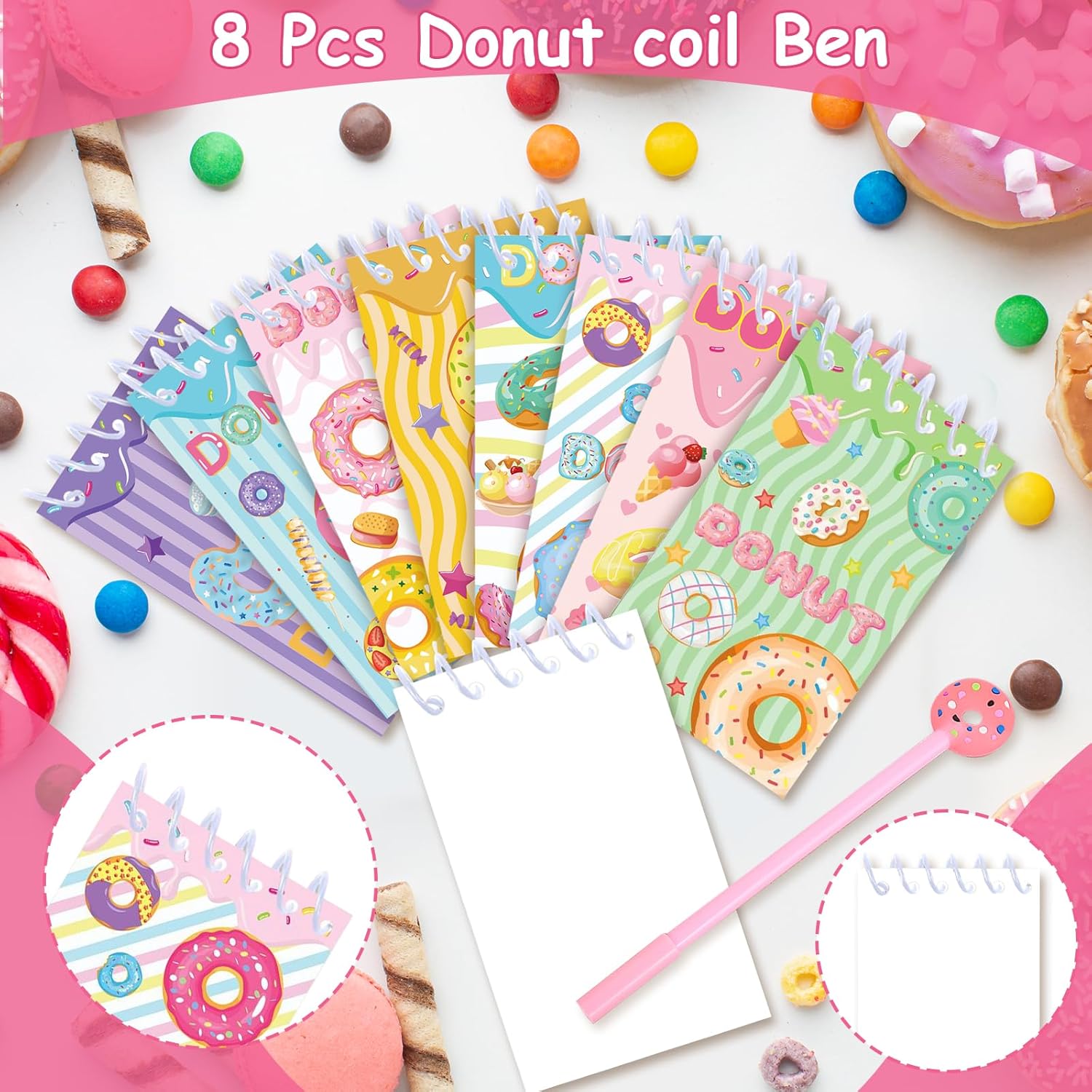 🍩 ✔️Il set è composto da 74 pezzi, tra cui 8 mini block notes a spirale, 8 portachiavi, 50 adesivi e 8 penne neutre. Sono accessori indispensabili per decorare le feste dei bambini. 🍩 ✔️I mini quaderni a spirale e gli adesivi sono realizzati in materiale cartaceo di alta qualità, atossico e inodore, con scrittura fluida e adesione antitraccia. Le penne unisex sono prodotte secondo rigorosi standard di qualità per garantire prestazioni affidabili e una lunga durata. 🍩 ✔️I set per feste possono essere utilizzati per decorazioni per la nascita dei bambini, regali per feste a tema, regali di compleanno, premi di giochi, premi per studenti e borse regalo. Un giocattolo classico che è divertente per tutte le età. 🍩 ✔️I quaderni a spirale sono adatti a tutte le età, dalle bambine che vogliono annotare i propri segreti e sogni ai ragazzi che vogliono annotare le proprie esperienze e scoperte. 🍩 ✔️I nostri sacchetti per feste di compleanno con ciambelle non sono adatti solo per feste di compleanno, ma anche per altre occasioni come eventi scolastici o feste di famiglia. Offrili ai tuoi ospiti come piccoli incentivi, premi o regali per ispirarli e intrattenerli.